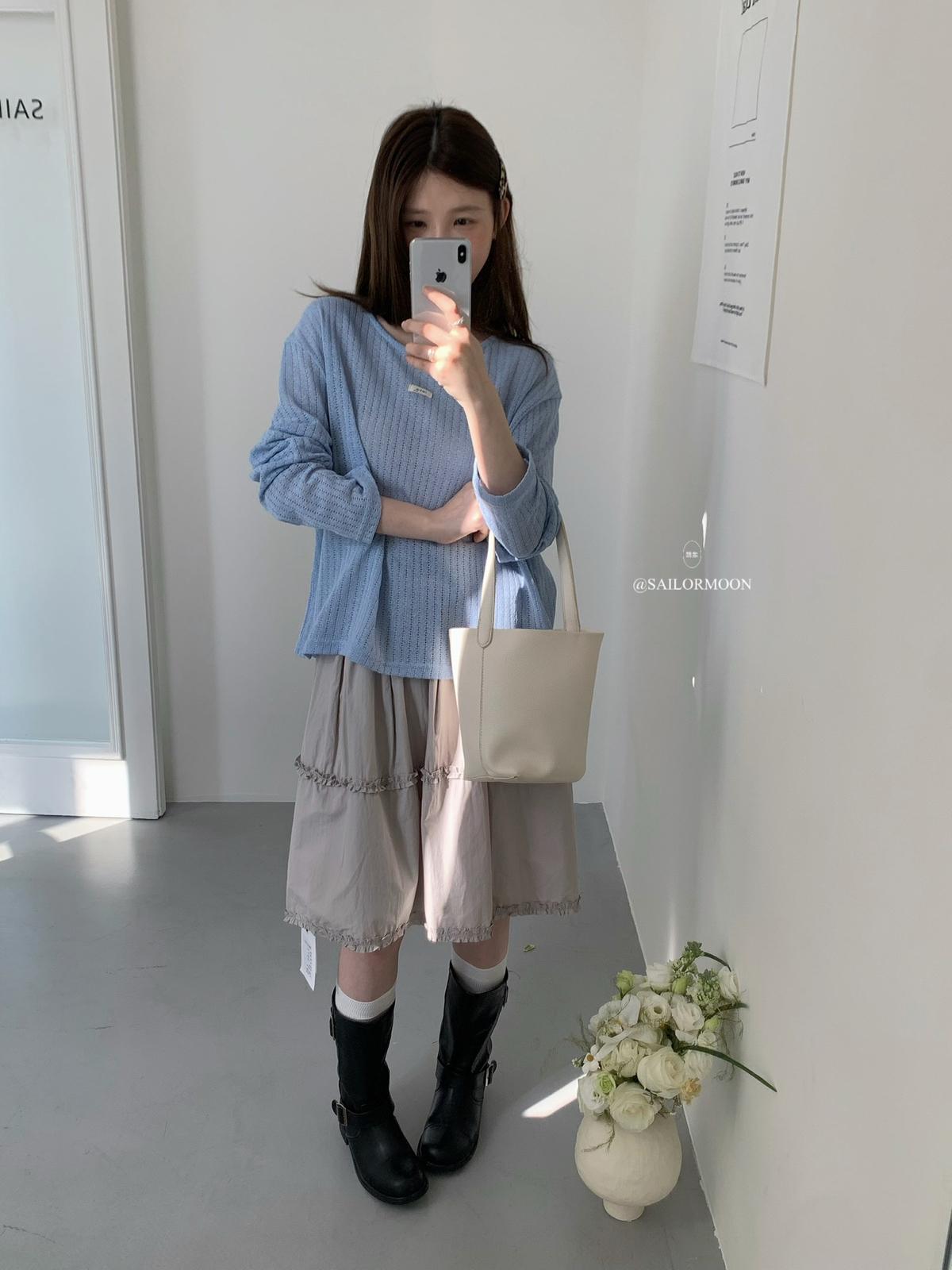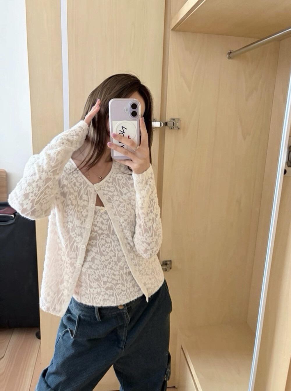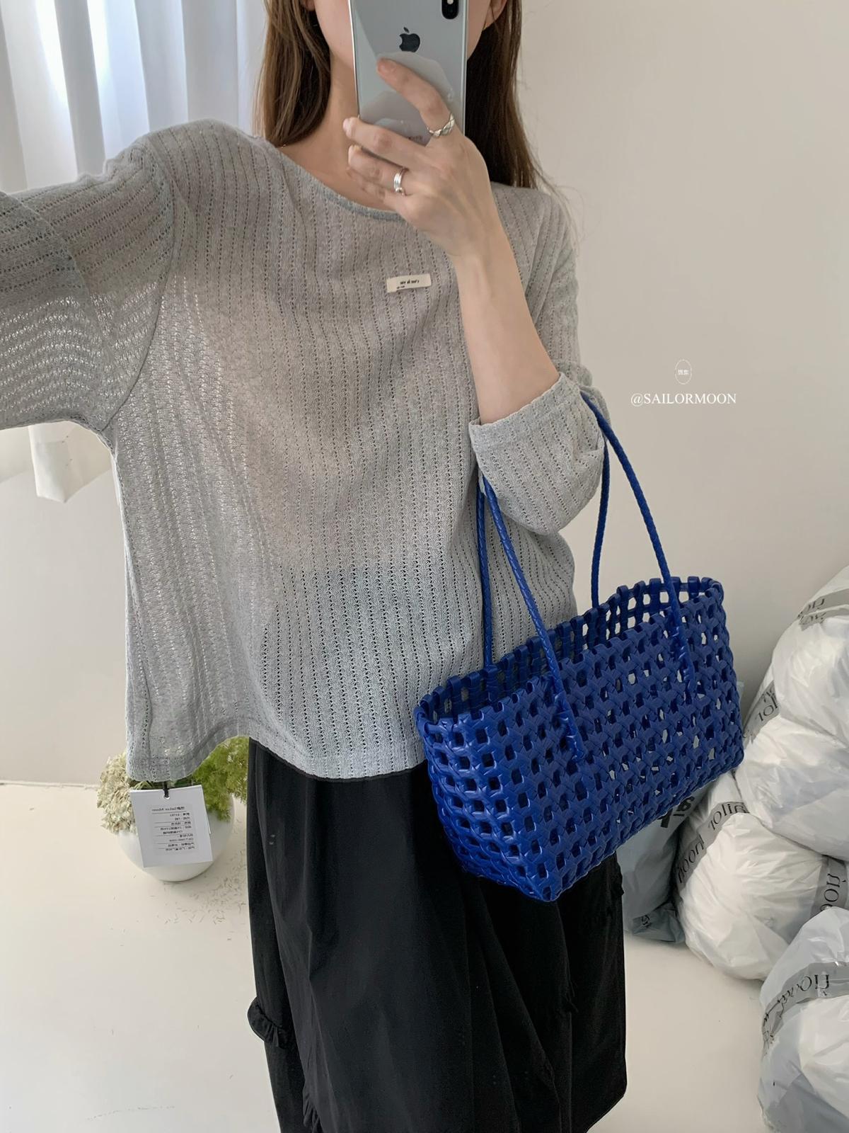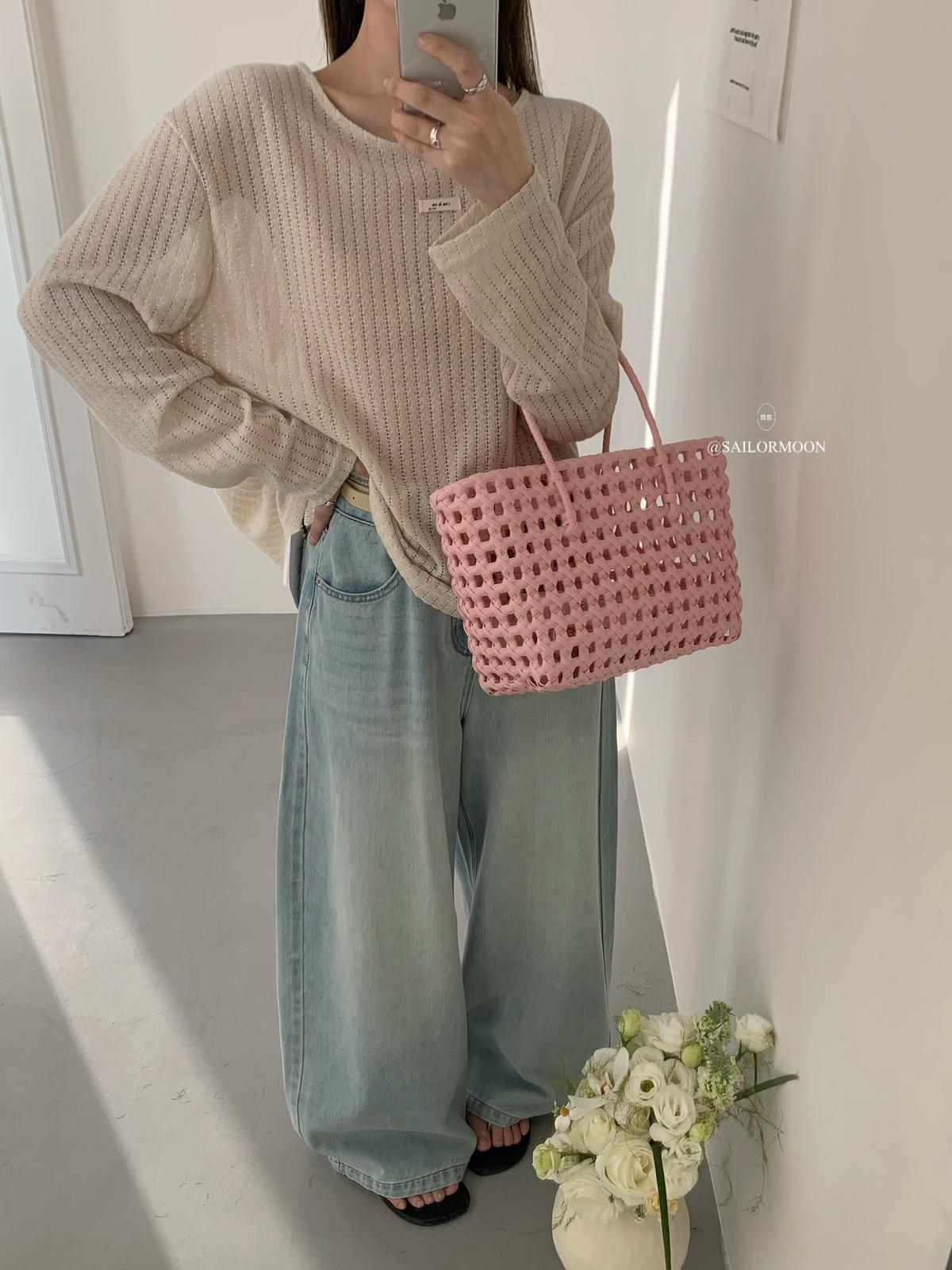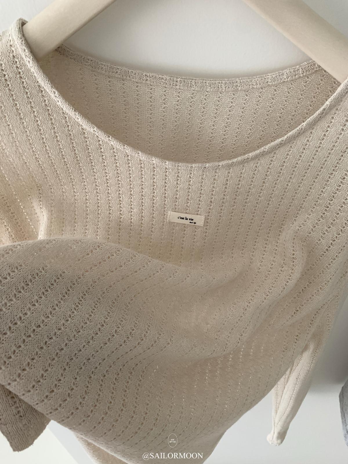 【C8629】韓系鬆弛感鏤空罩衫針織衫