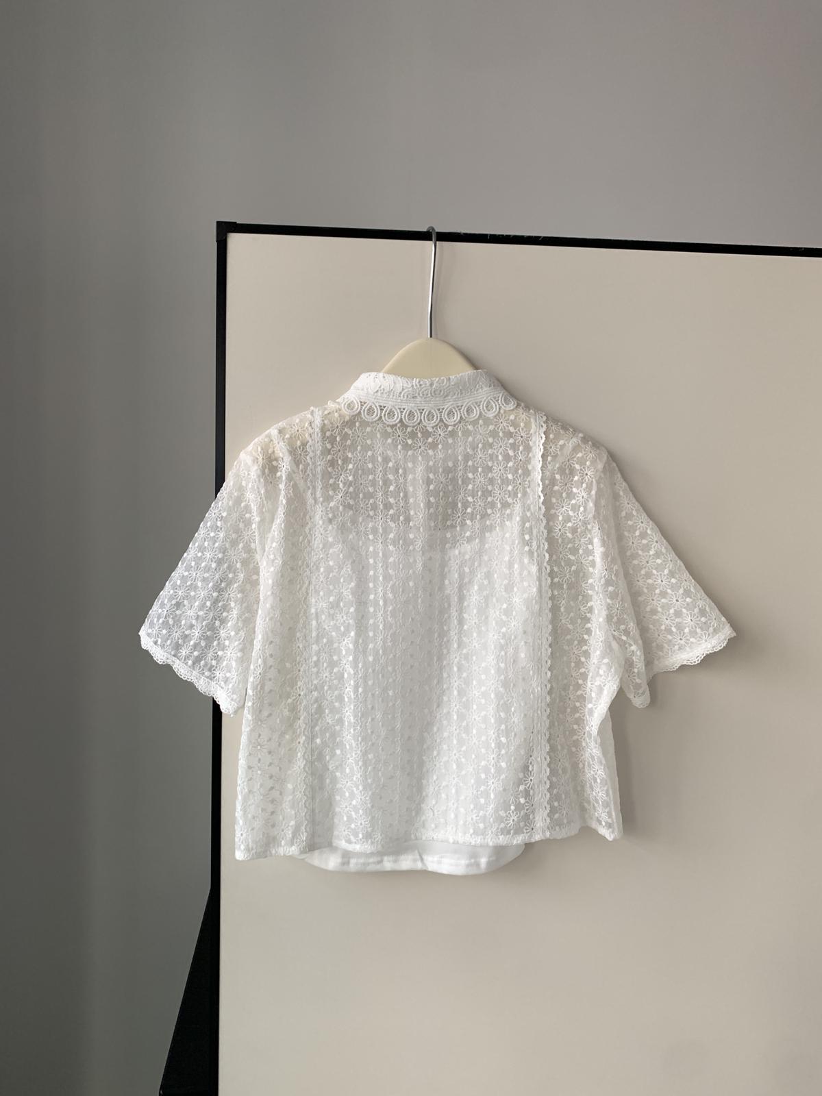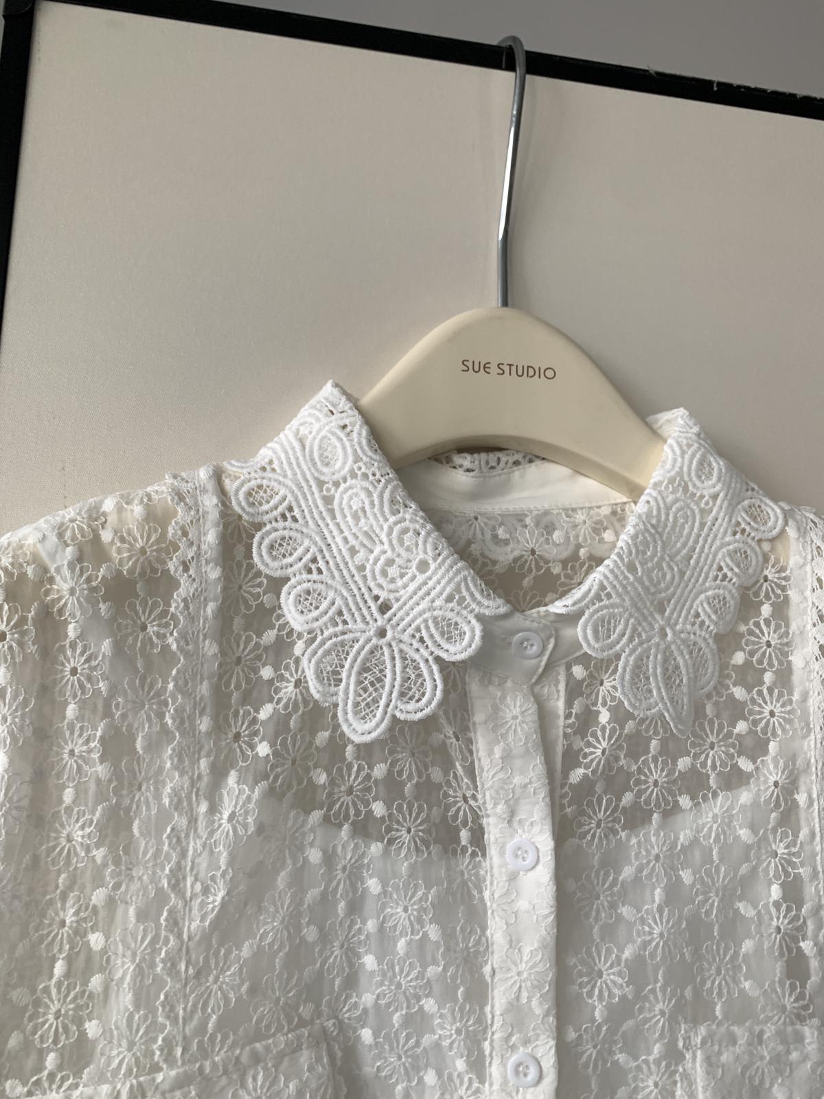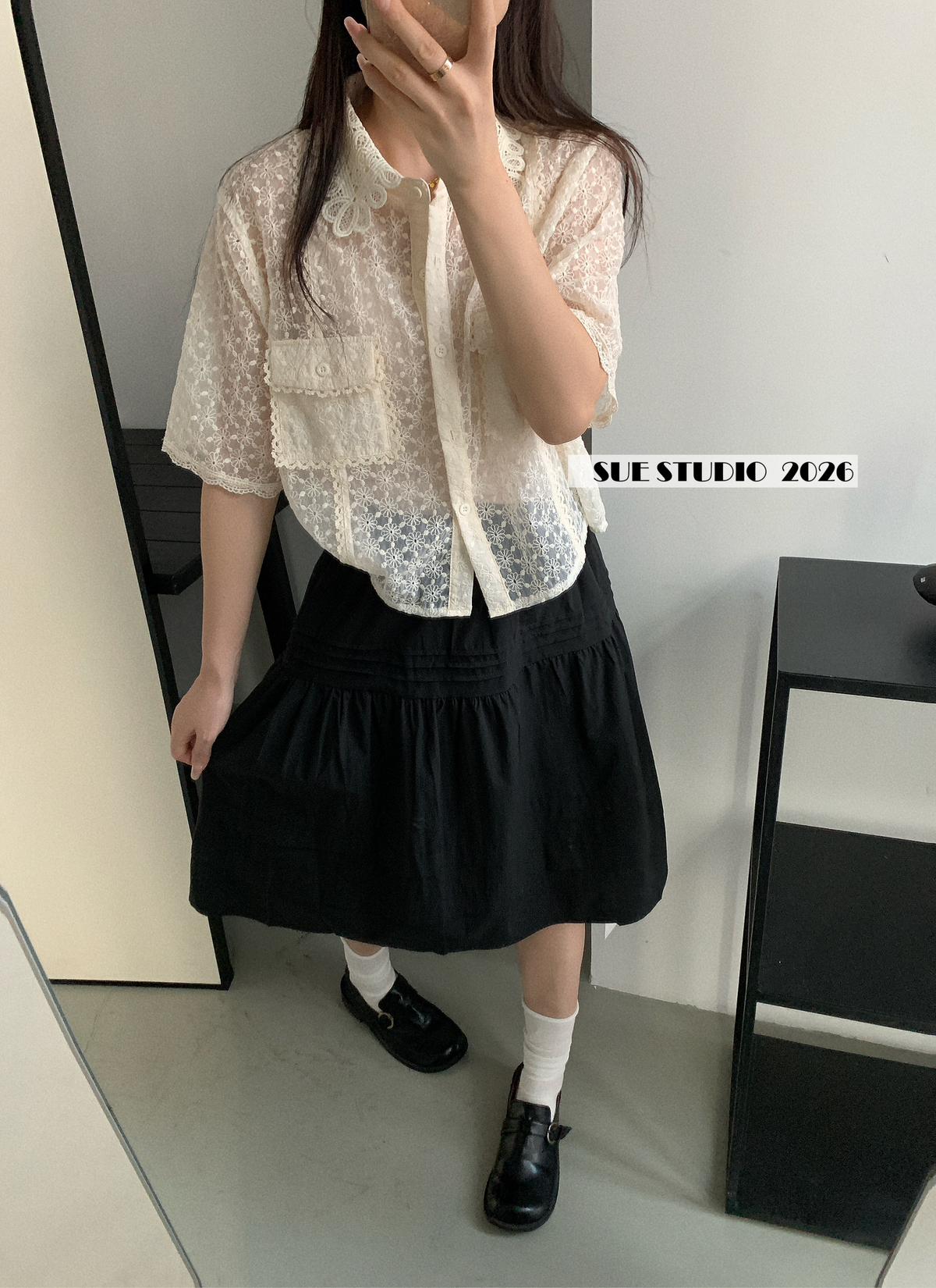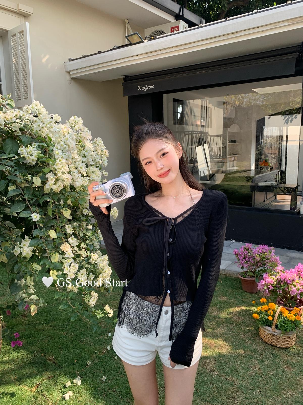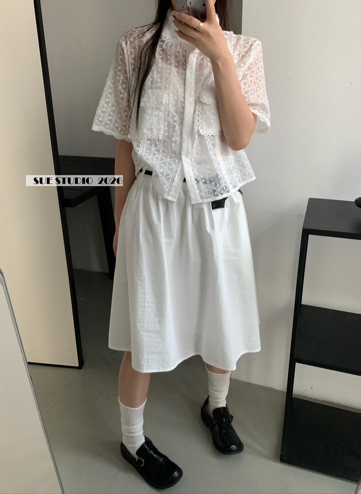 【C8636】韓系休閒簡約蕾絲開扣短袖襯衫式小衫+背心套裝