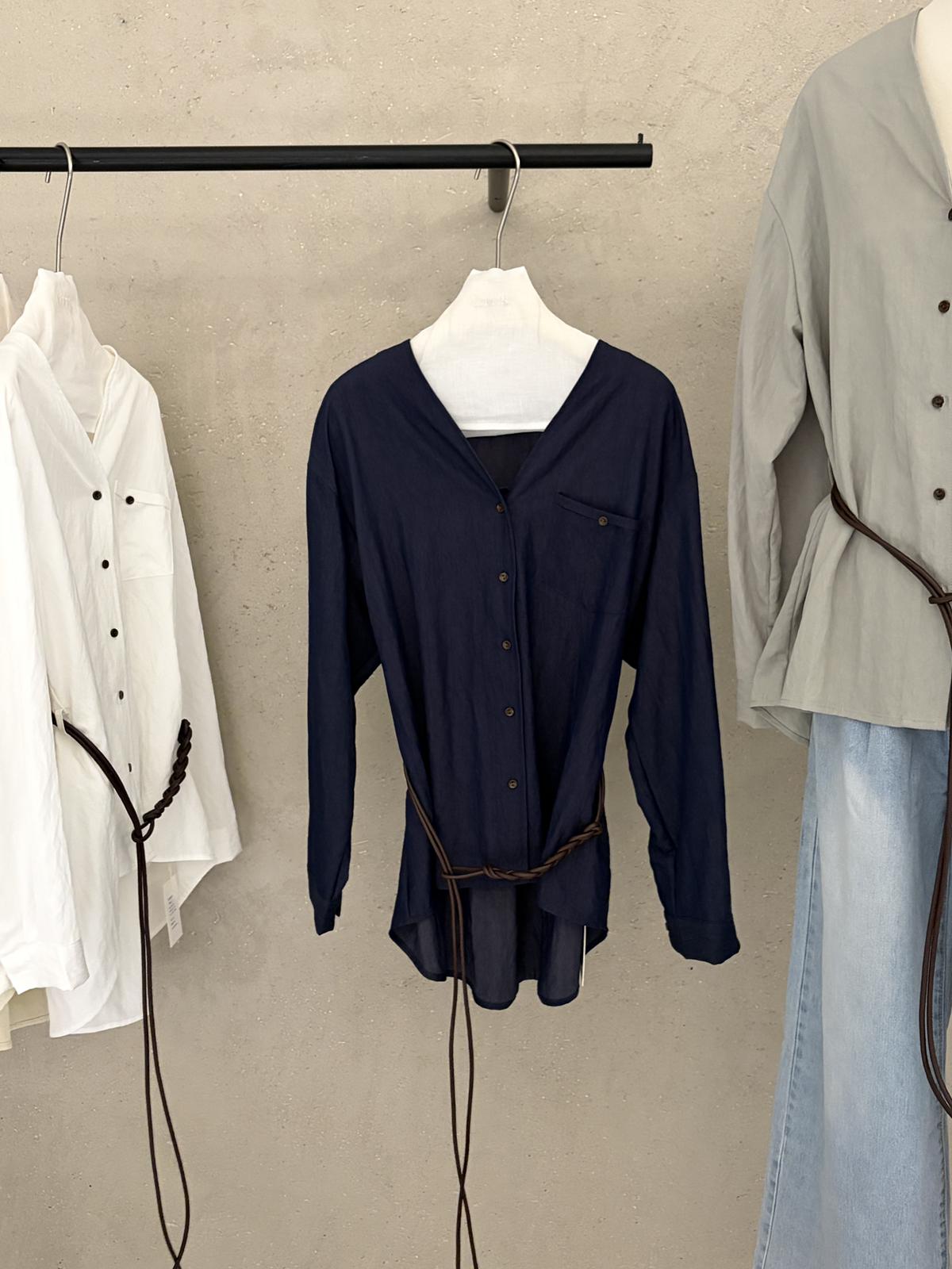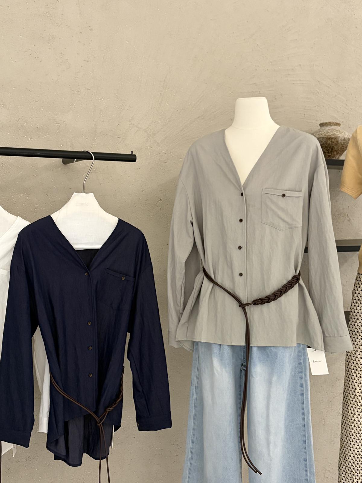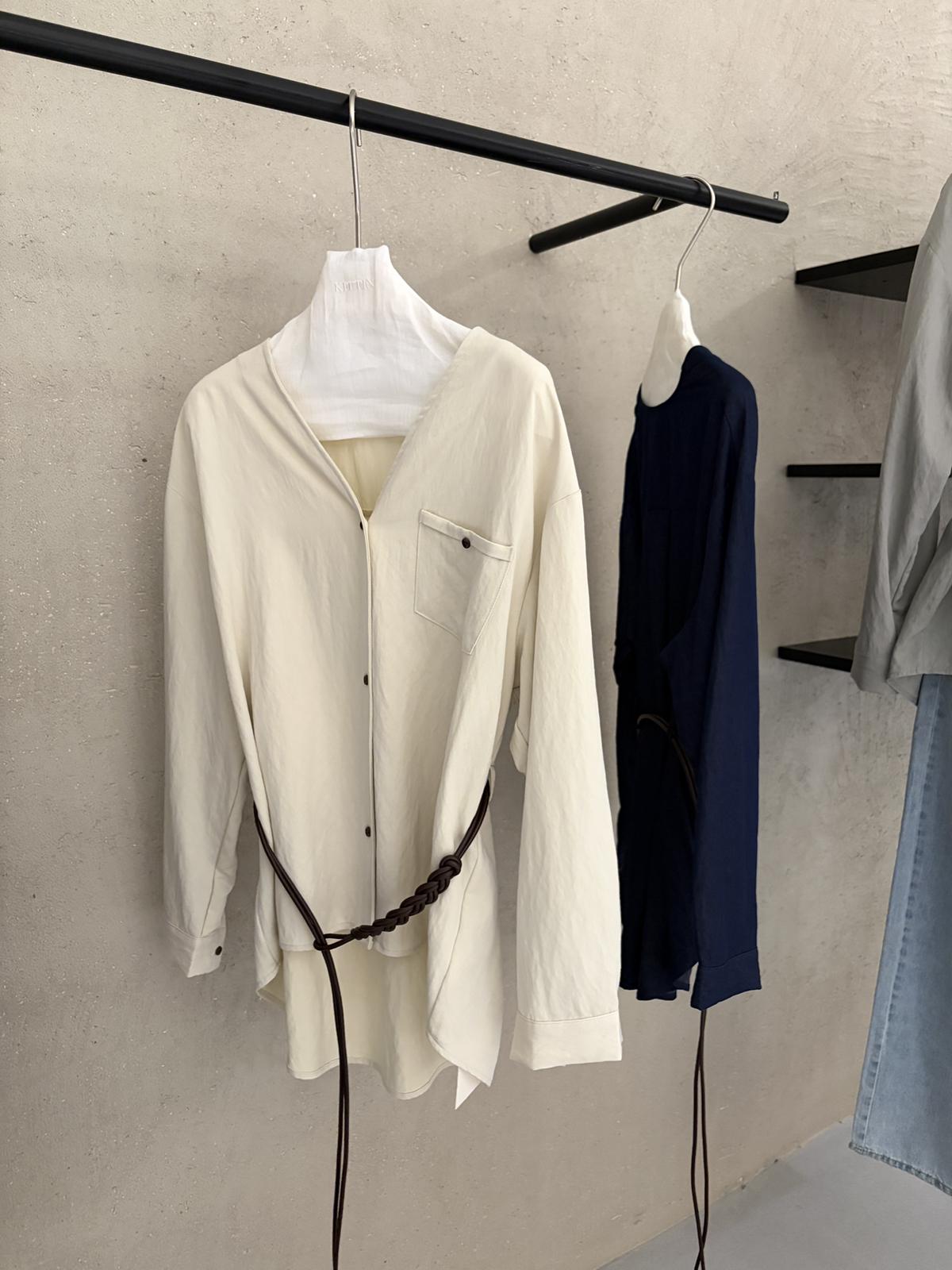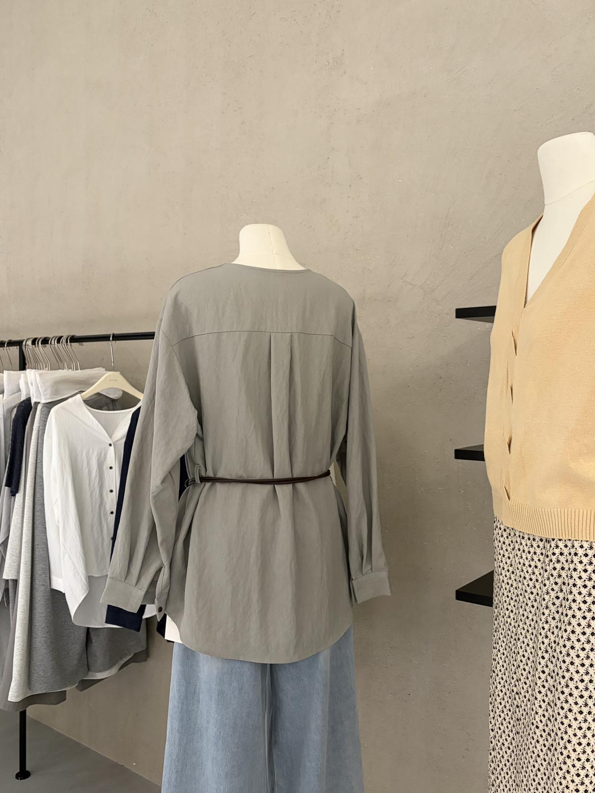 【C8638】高智極簡歐尼通勤慵懶襯衫(配腰帶)