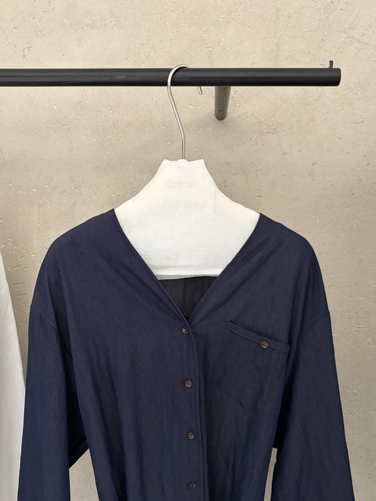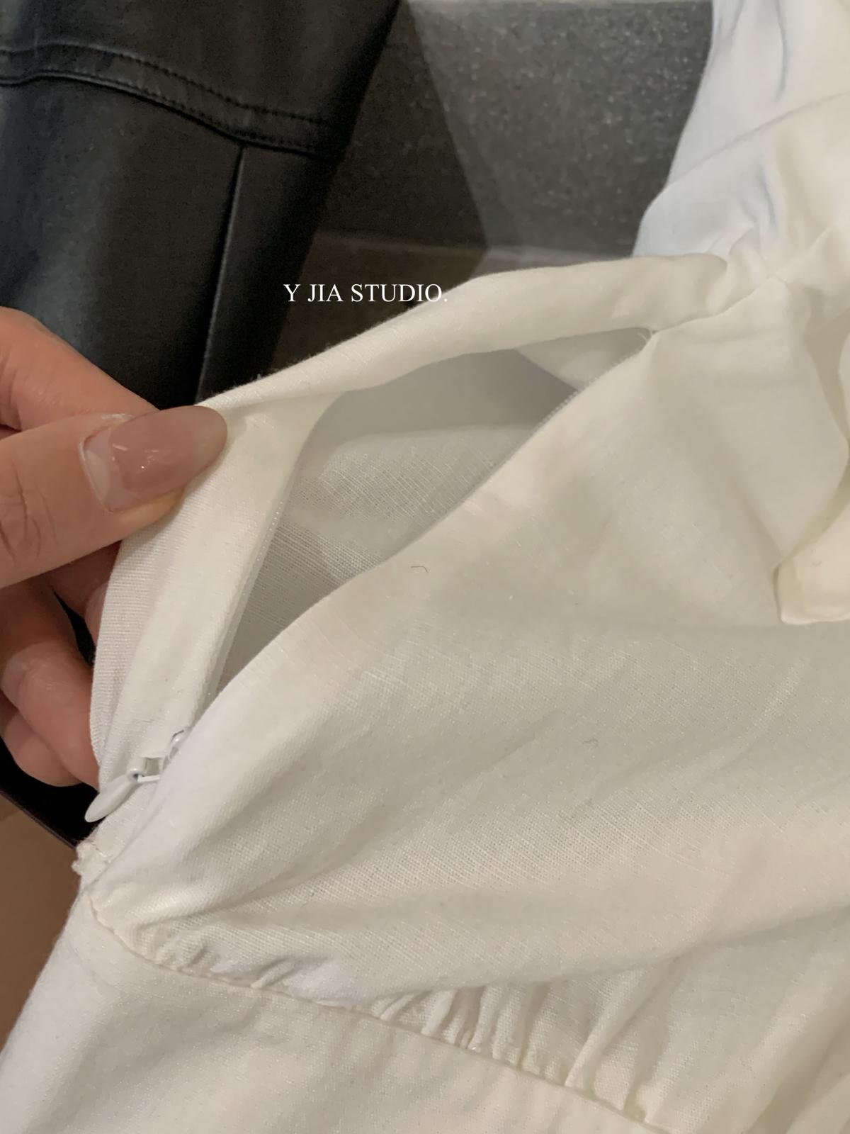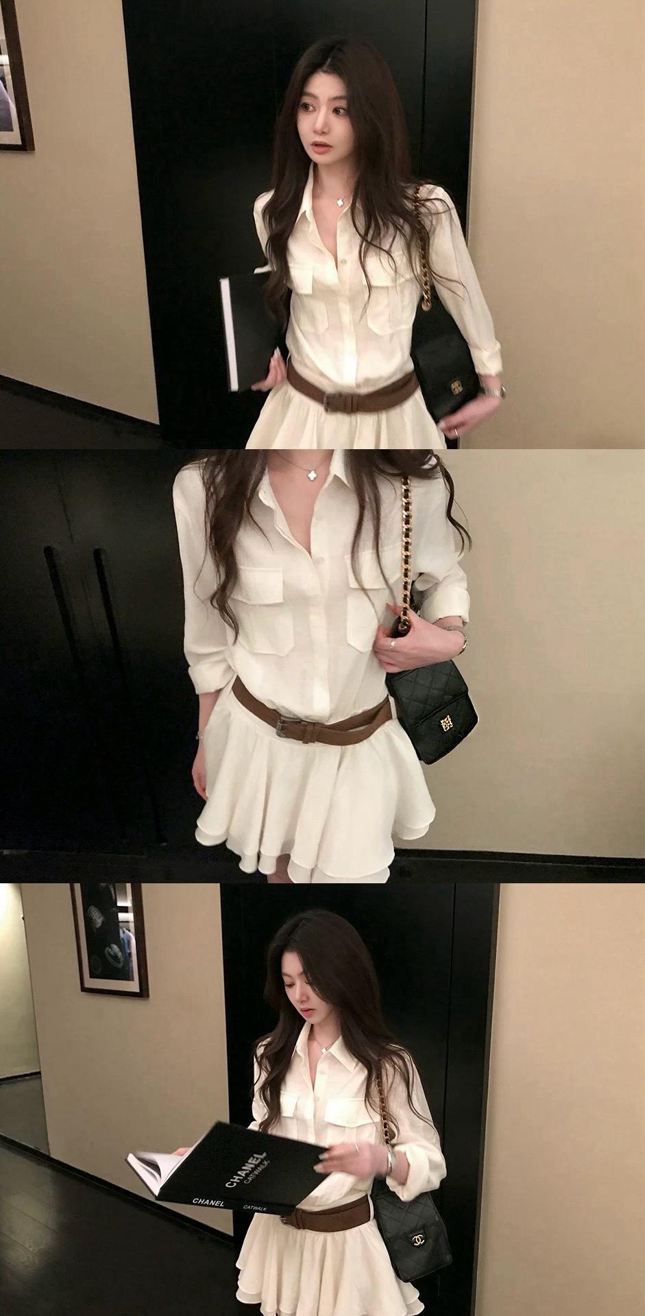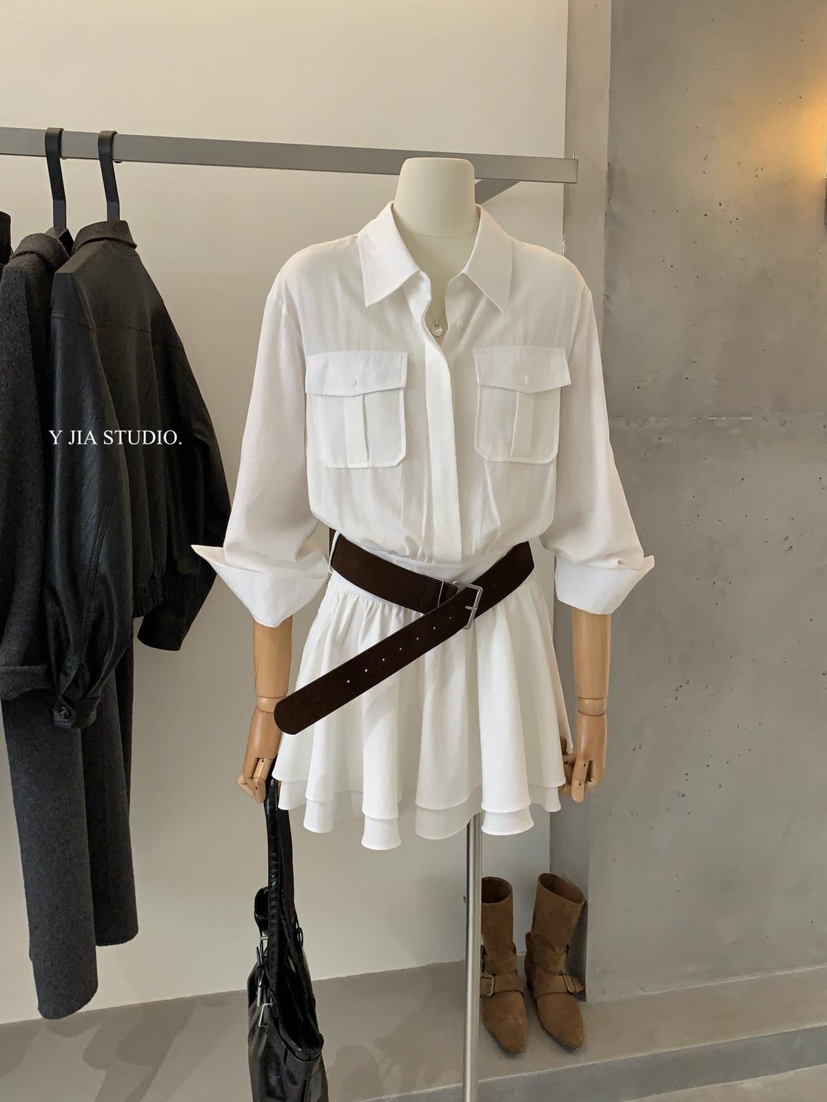 【C8643】山茶白茉莉~留白立裁捏褶收腰襯衫裙連衣裙(配腰帶)