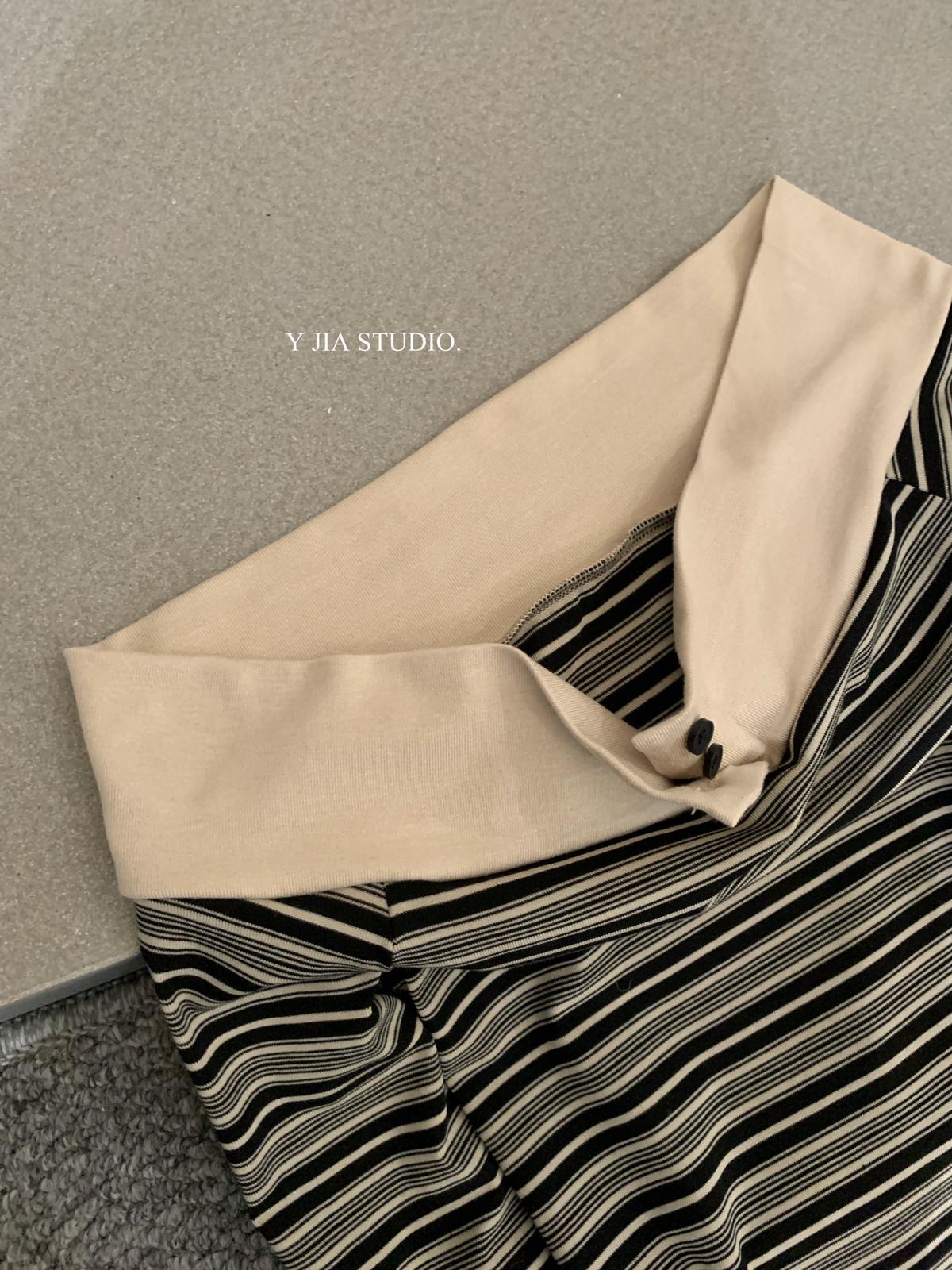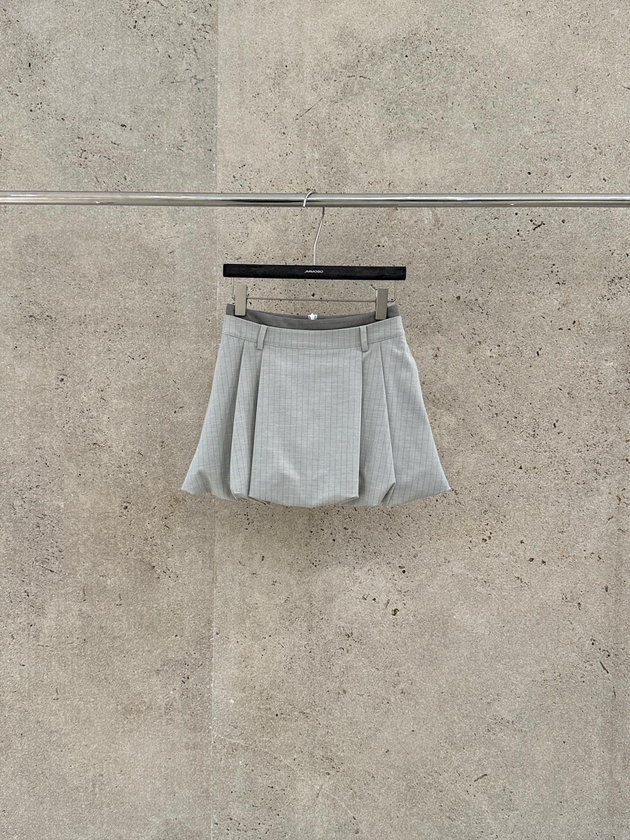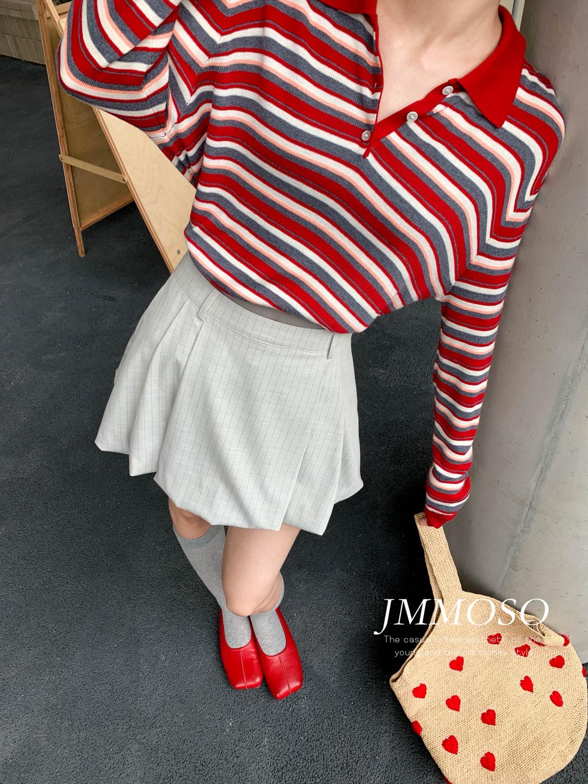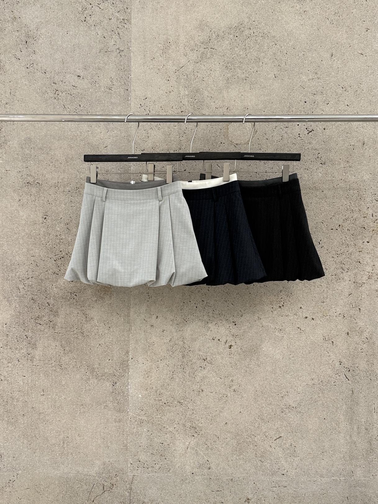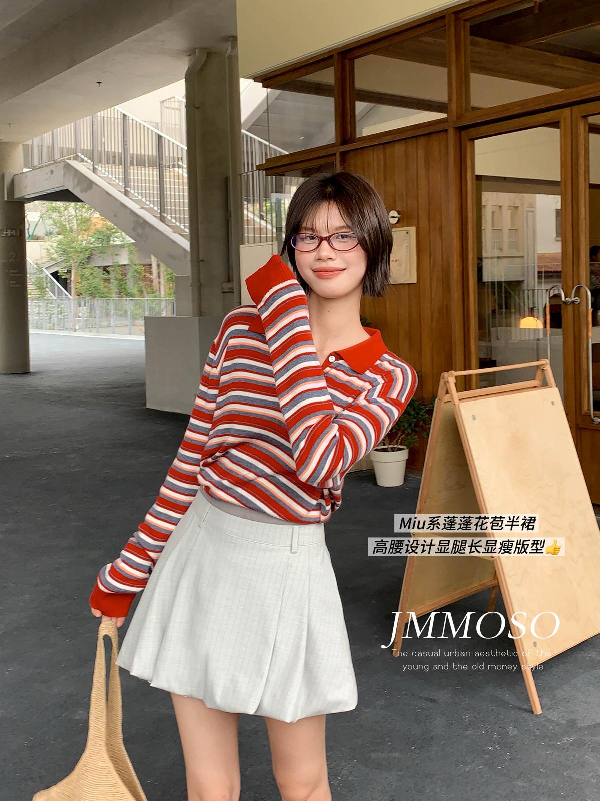 【C8654】韓版miu系蓬蓬花苞短裙!氣質減齡條紋撞色拼接高腰顯瘦半身裙(帶安全褲)