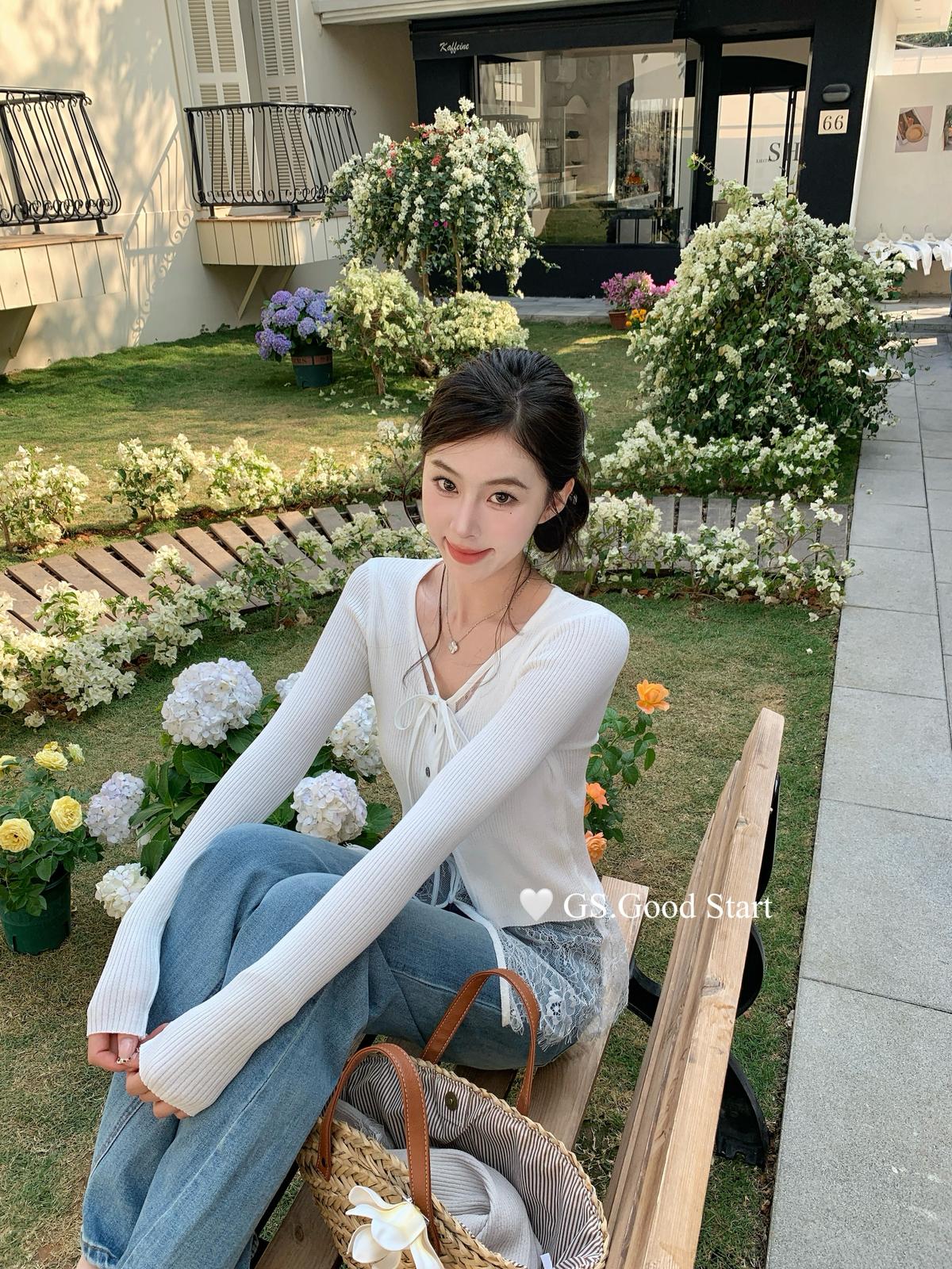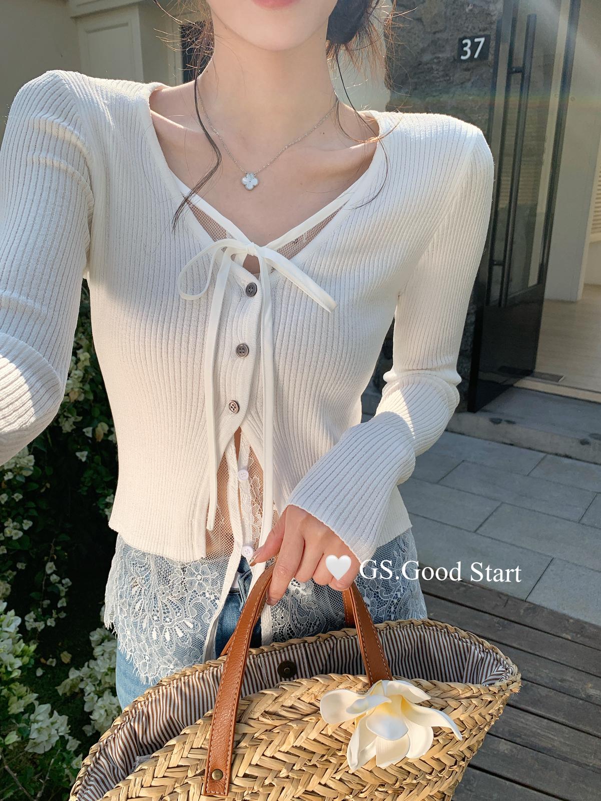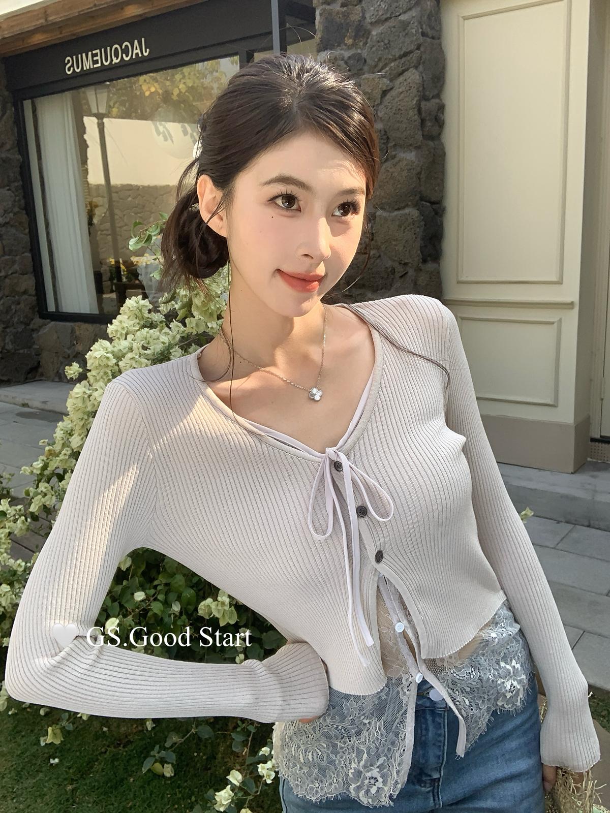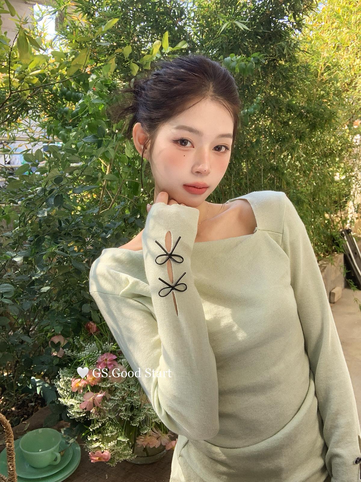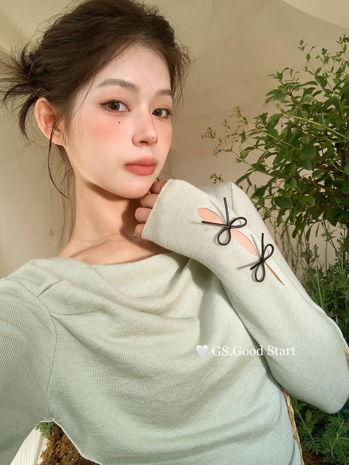 【C8646】大熱門*反應超極好!強烈推!春季甜美清新袖口蝴蝶結設計感針織小衫