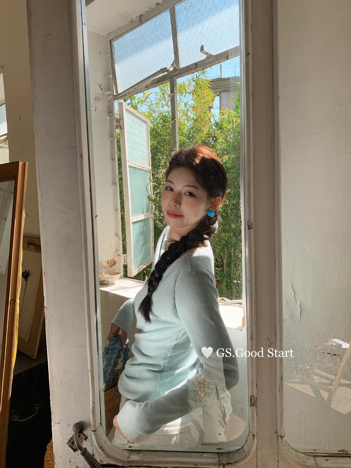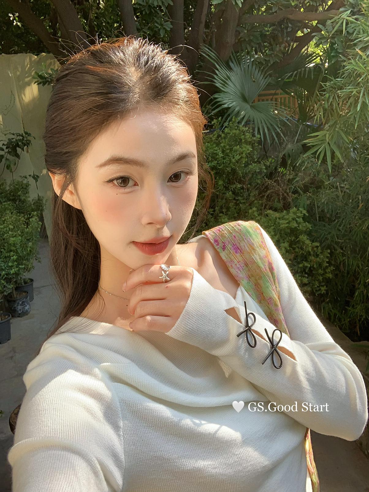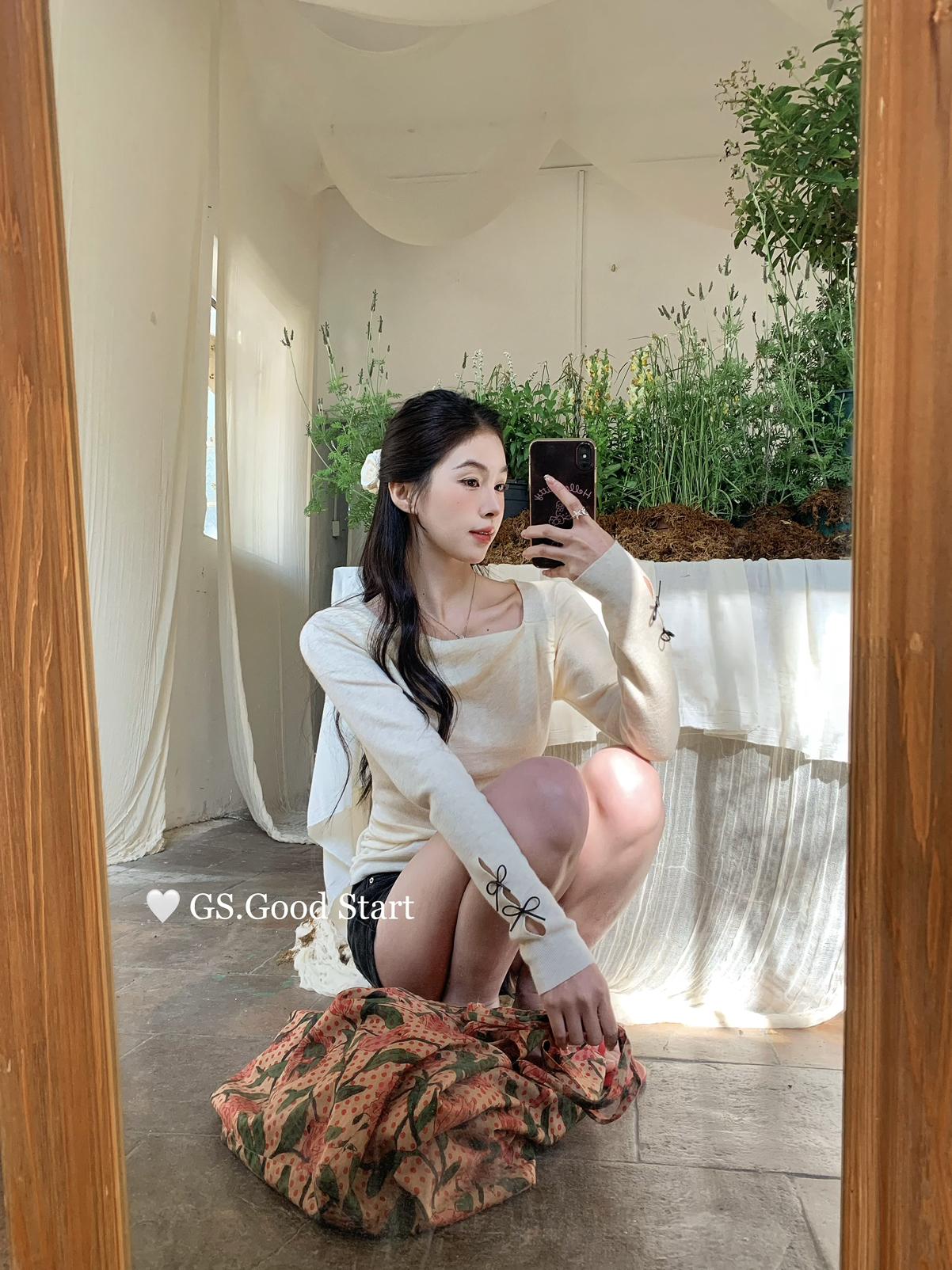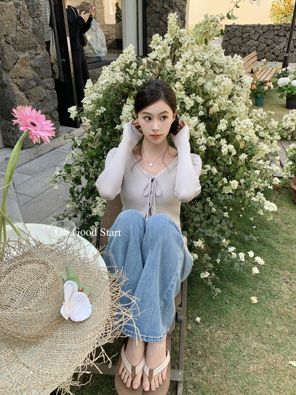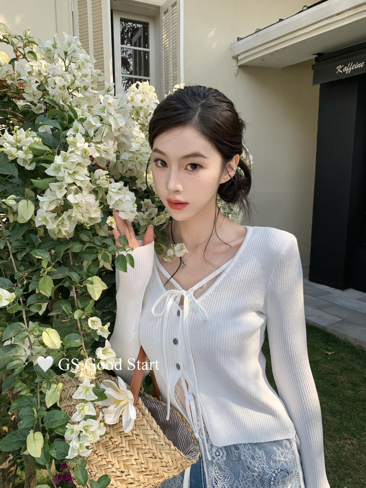 【C8646】大熱門*反應超極好!強烈推!春季甜美清新袖口蝴蝶結設計感針織小衫