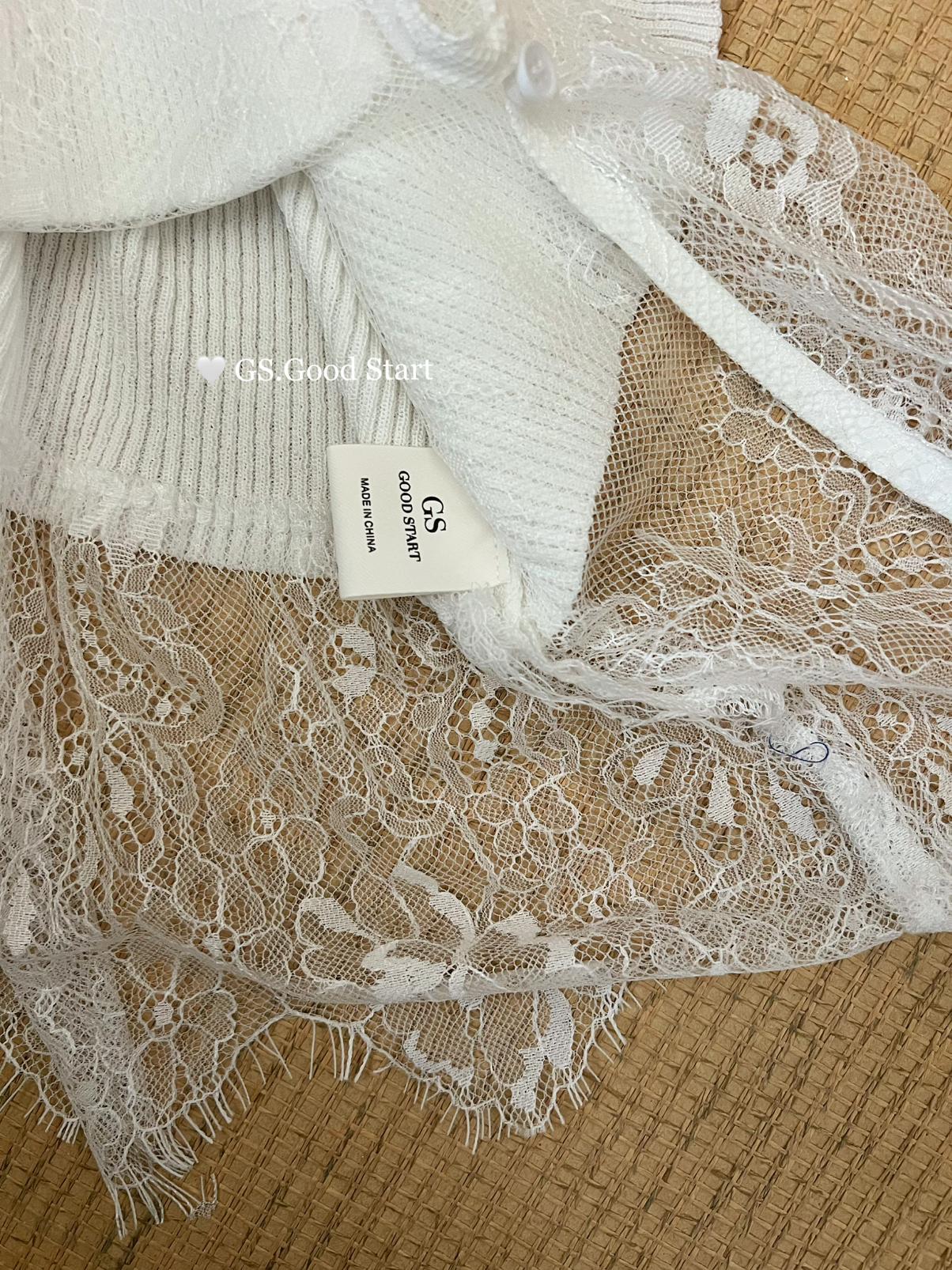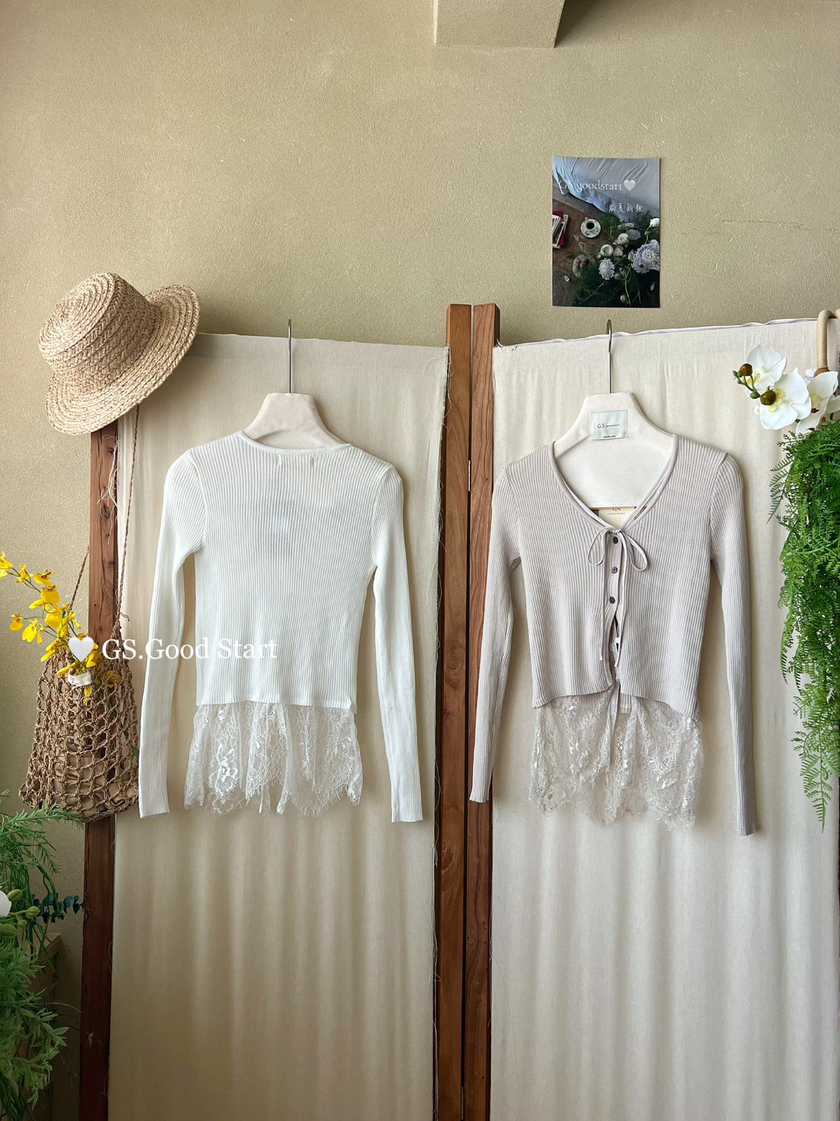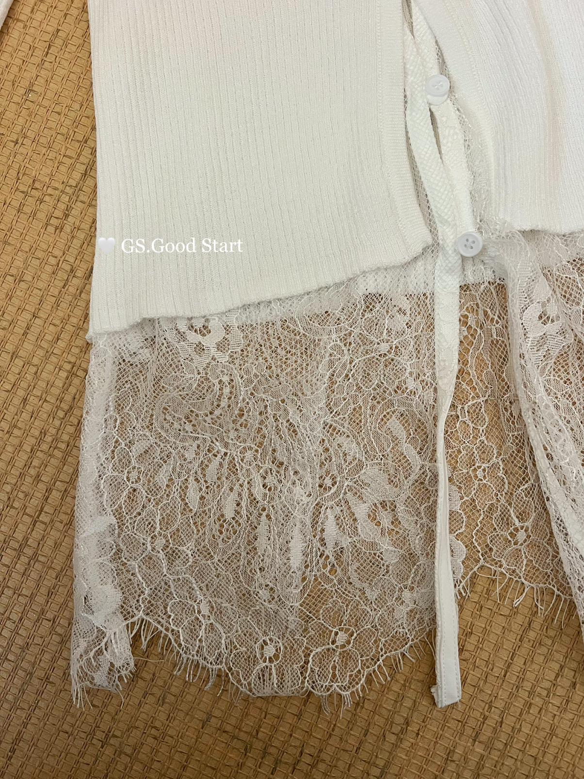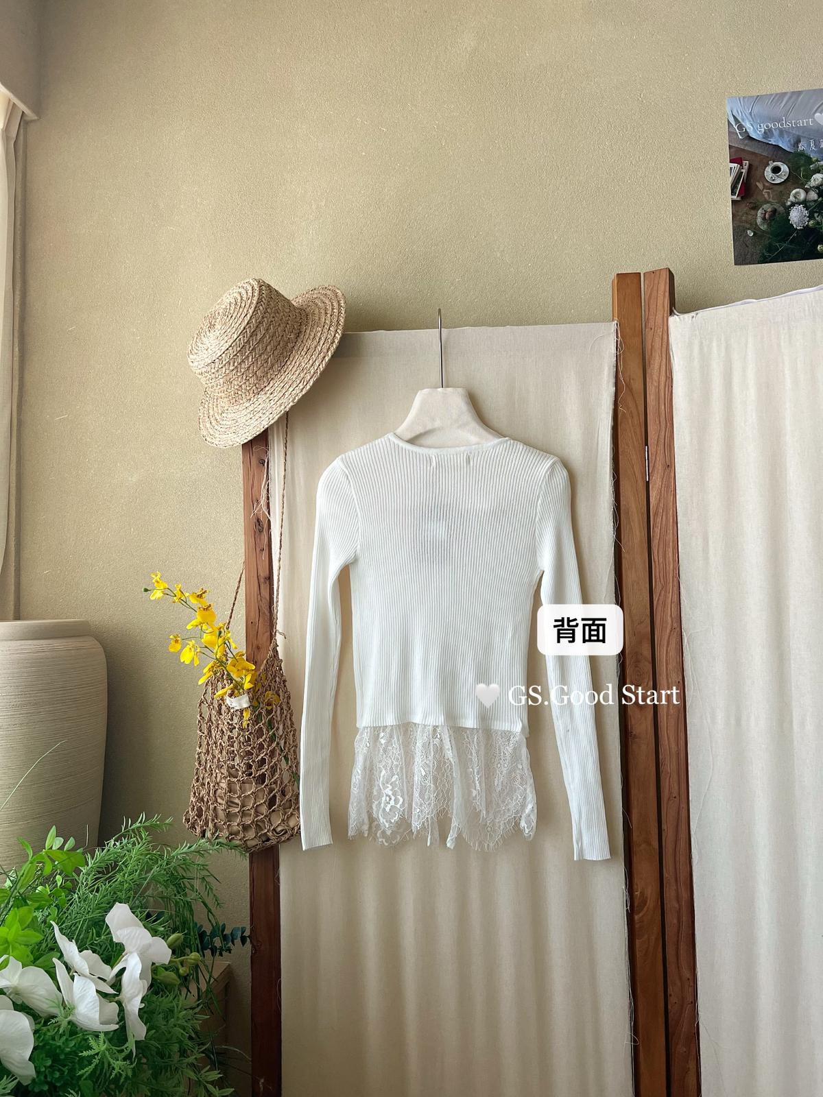 【C8649】Lace純欲天菜~熱度超高!春季法式浪漫蕾絲拼接假兩件針織小衫