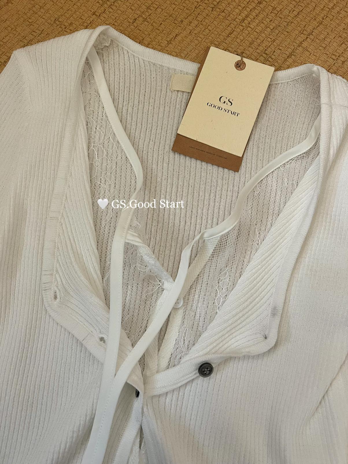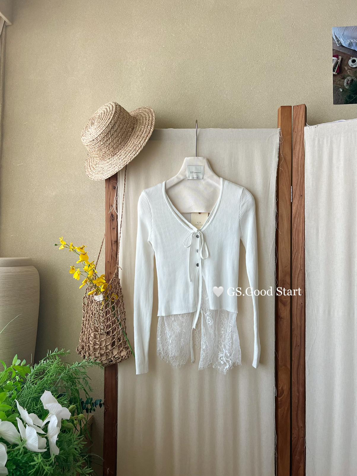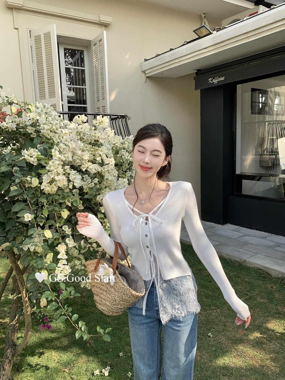 【C8649】Lace純欲天菜~熱度超高!春季法式浪漫蕾絲拼接假兩件針織小衫