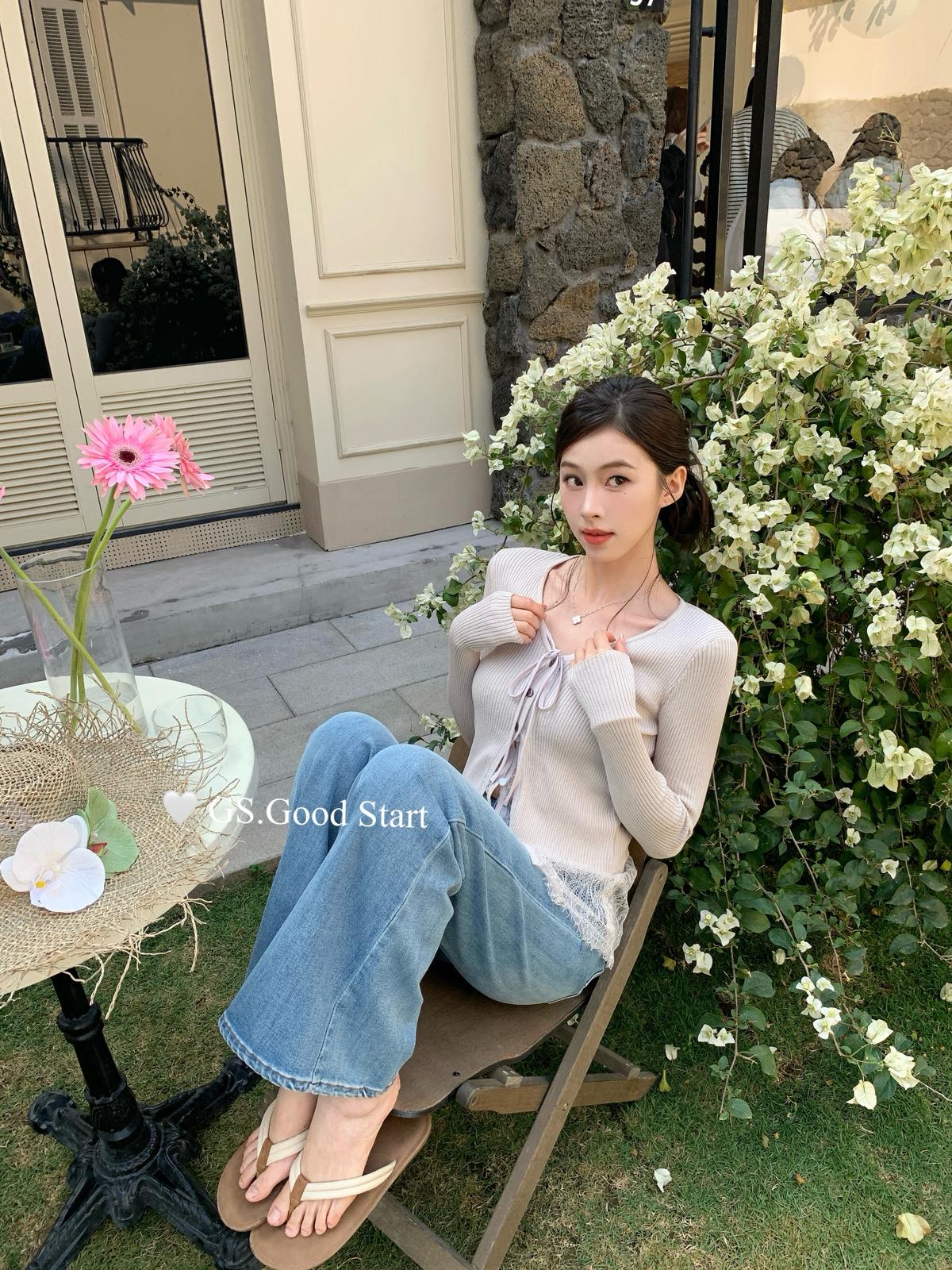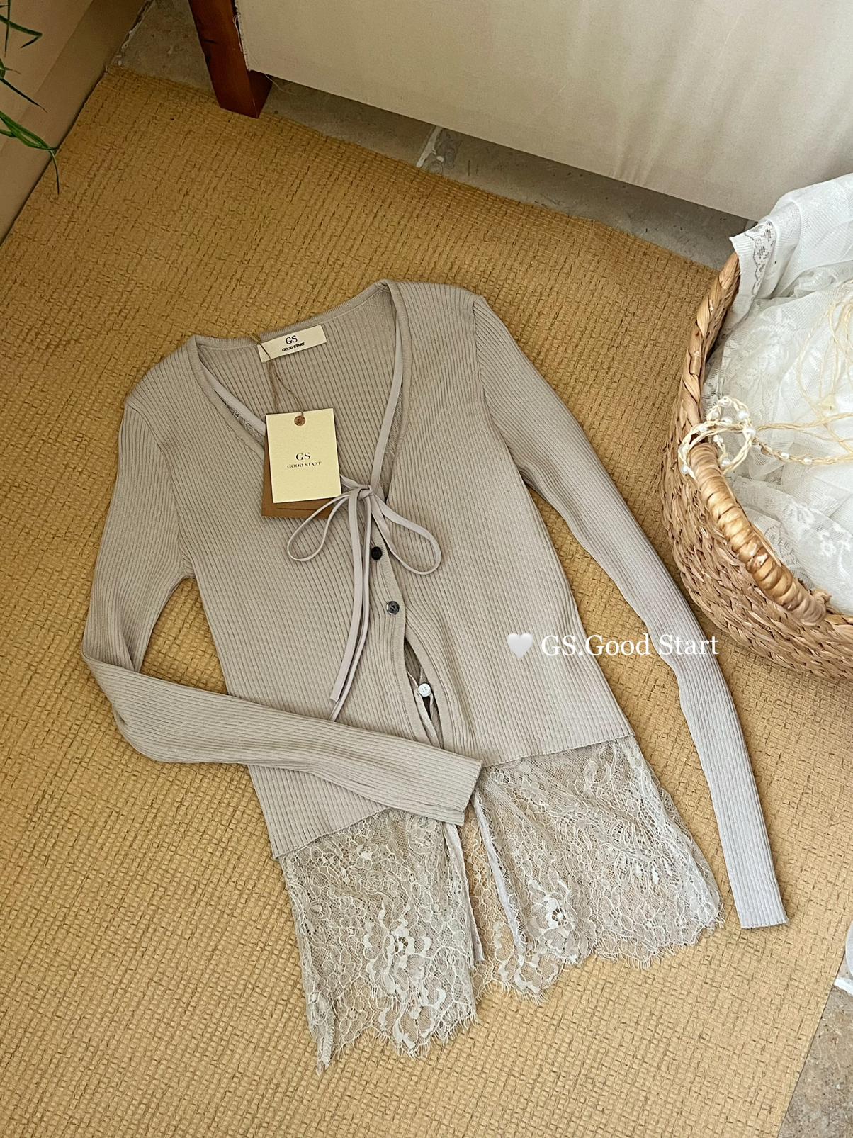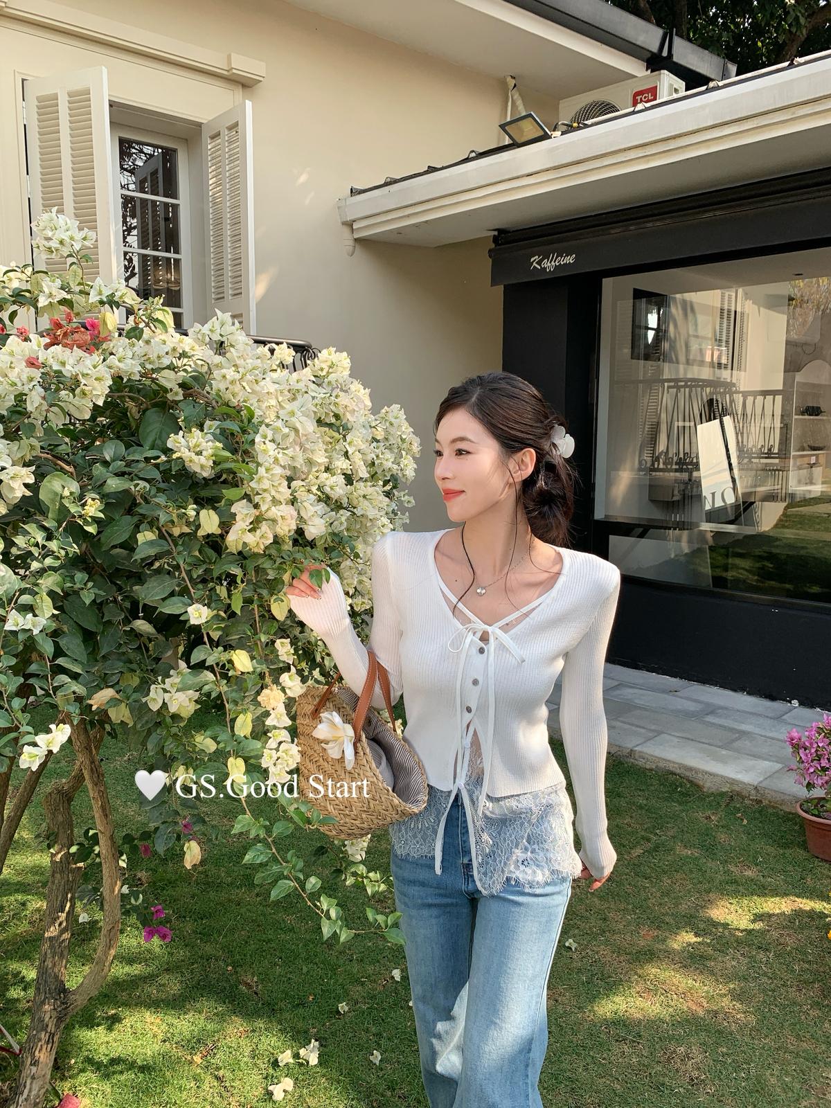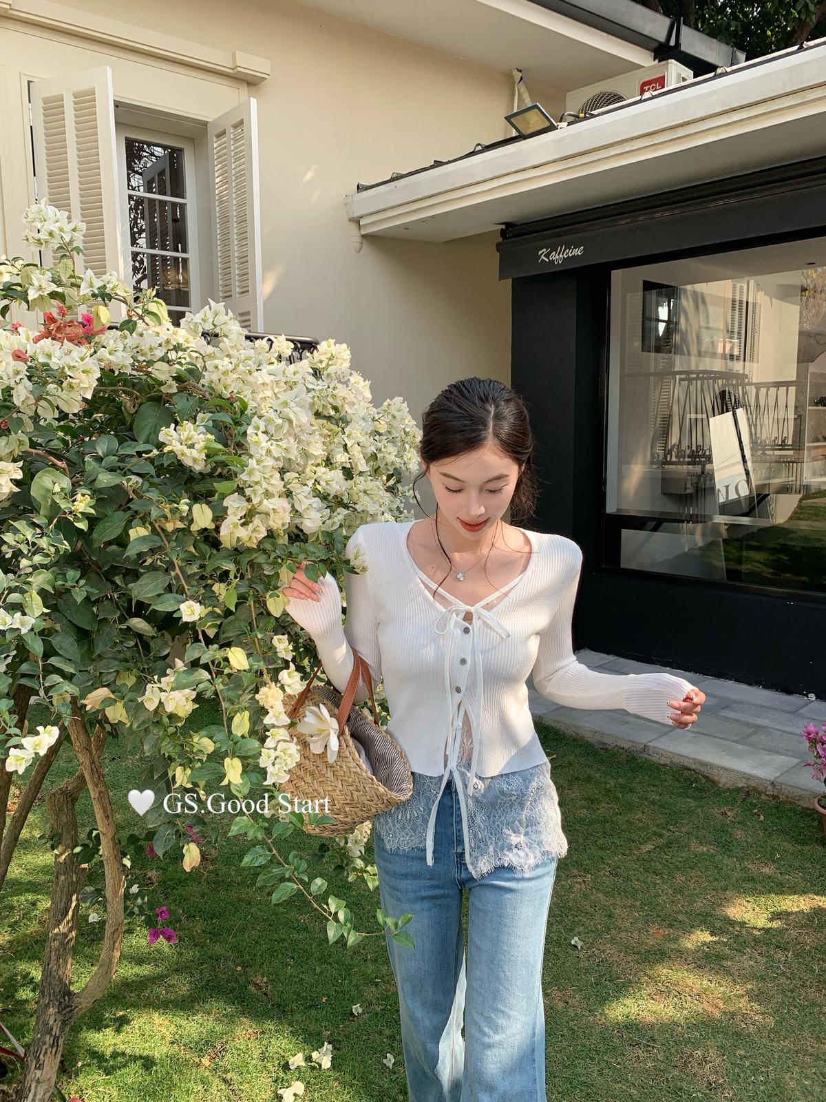【C8649】Lace純欲天菜~熱度超高!春季法式浪漫蕾絲拼接假兩件針織小衫