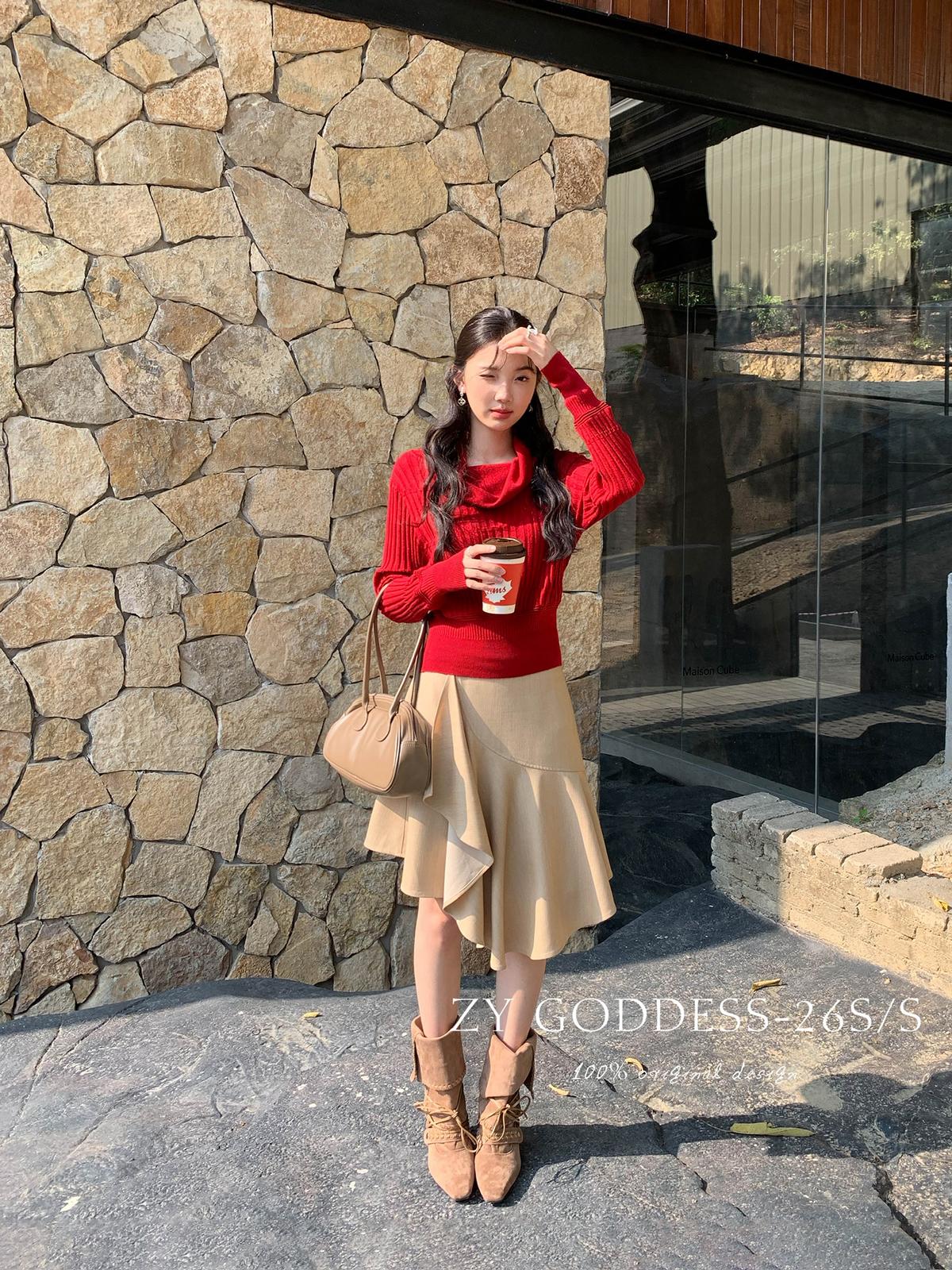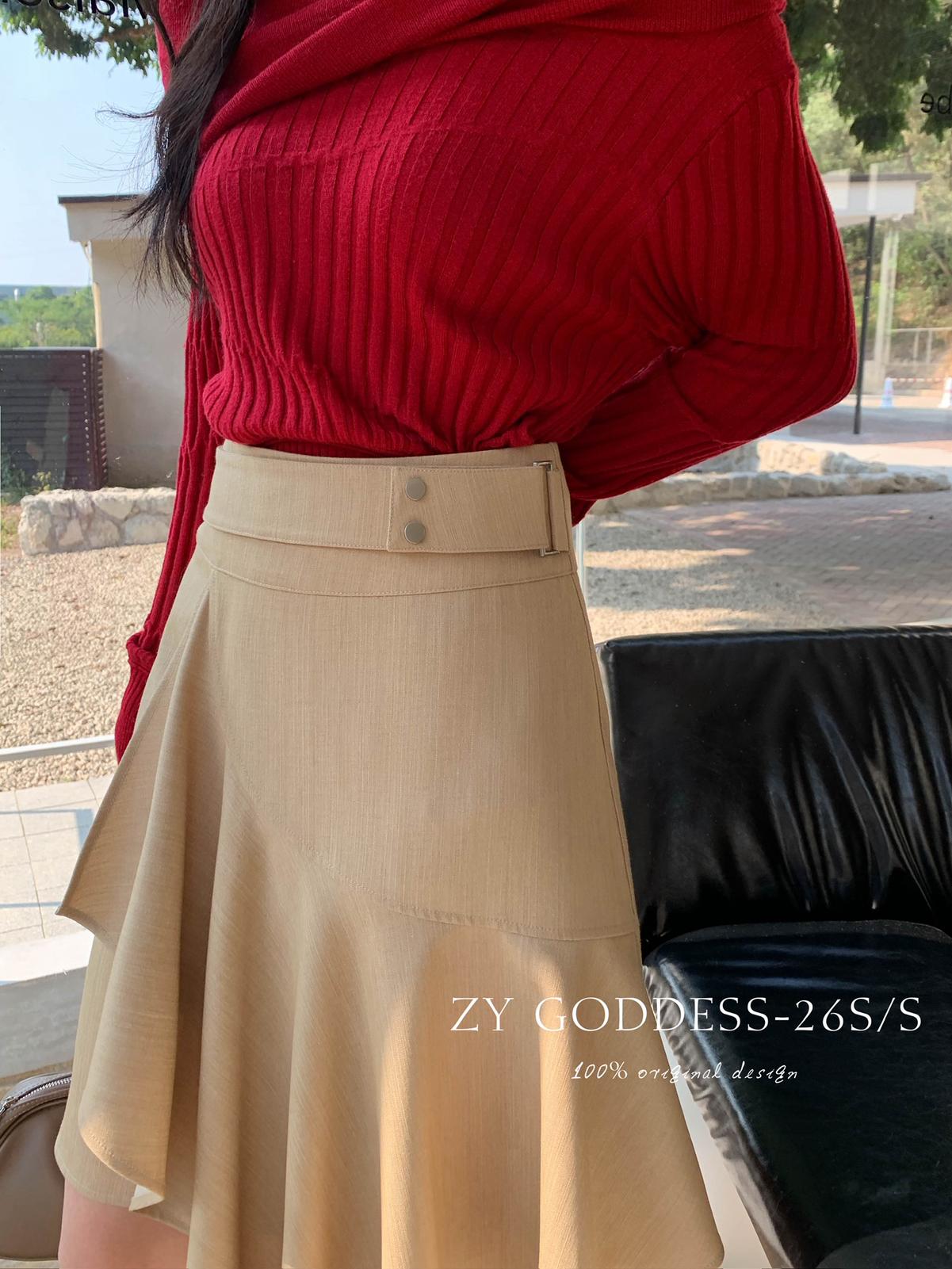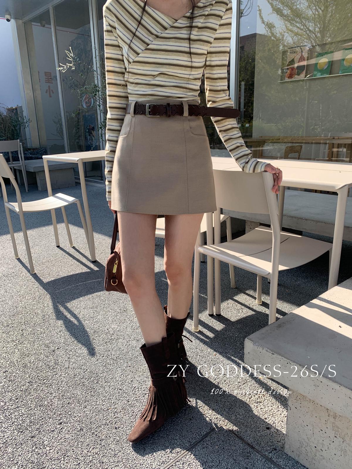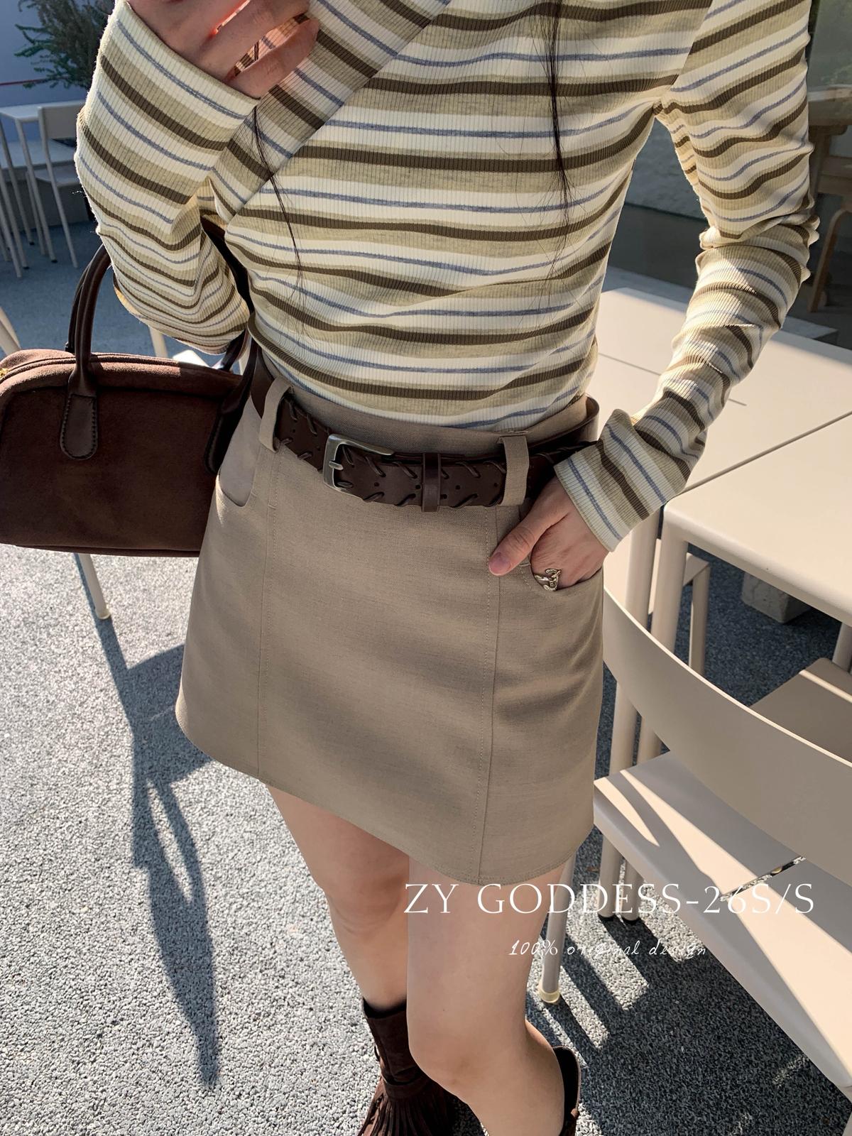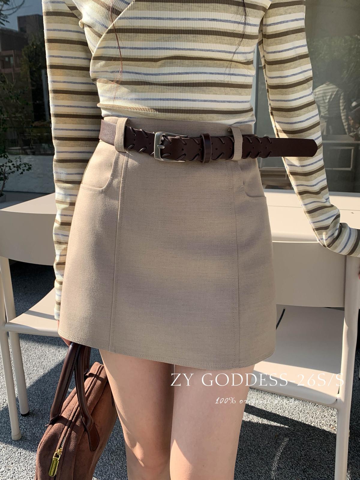 【C8652】韓版高質感版型絕絕子推薦!高腰直筒小A半身裙(配腰帶)(含1.5%綿羊毛)