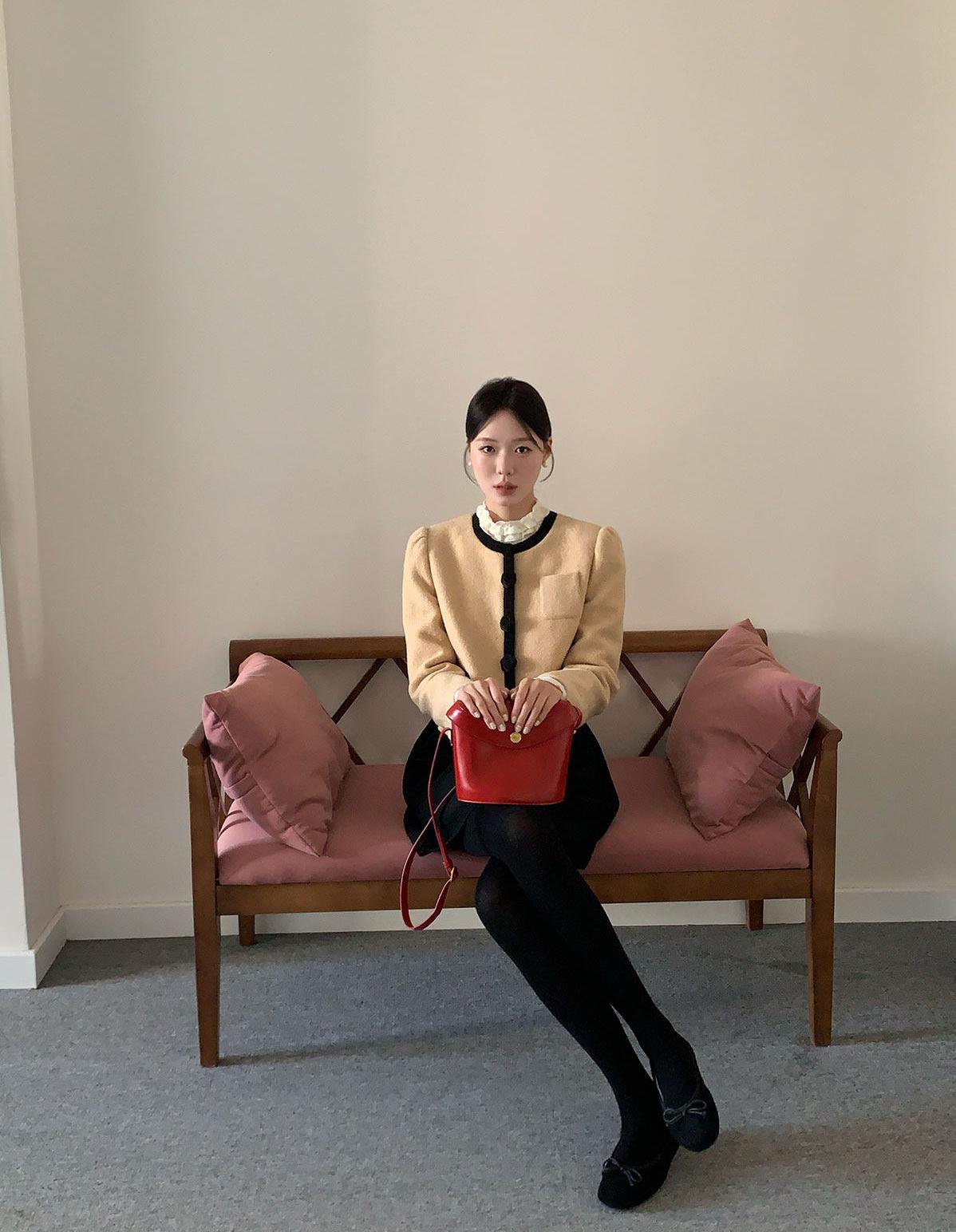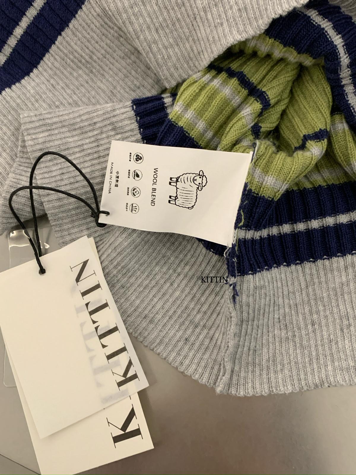 【C8670】復古甜酷繆感撞色條紋羊毛混紡針織背心(含4%羊毛)
