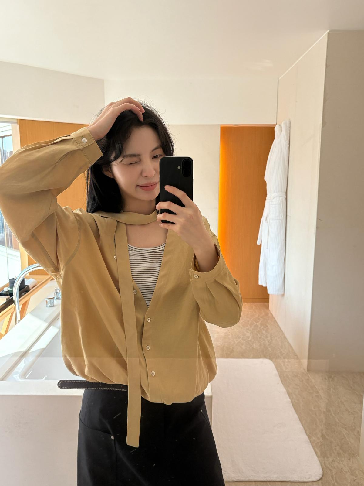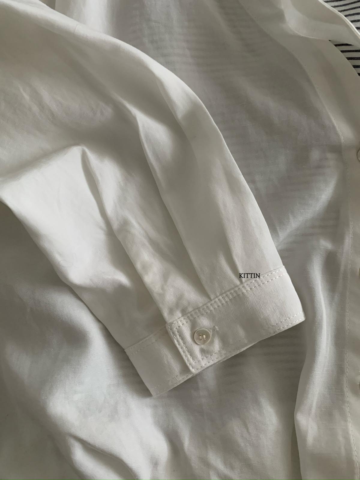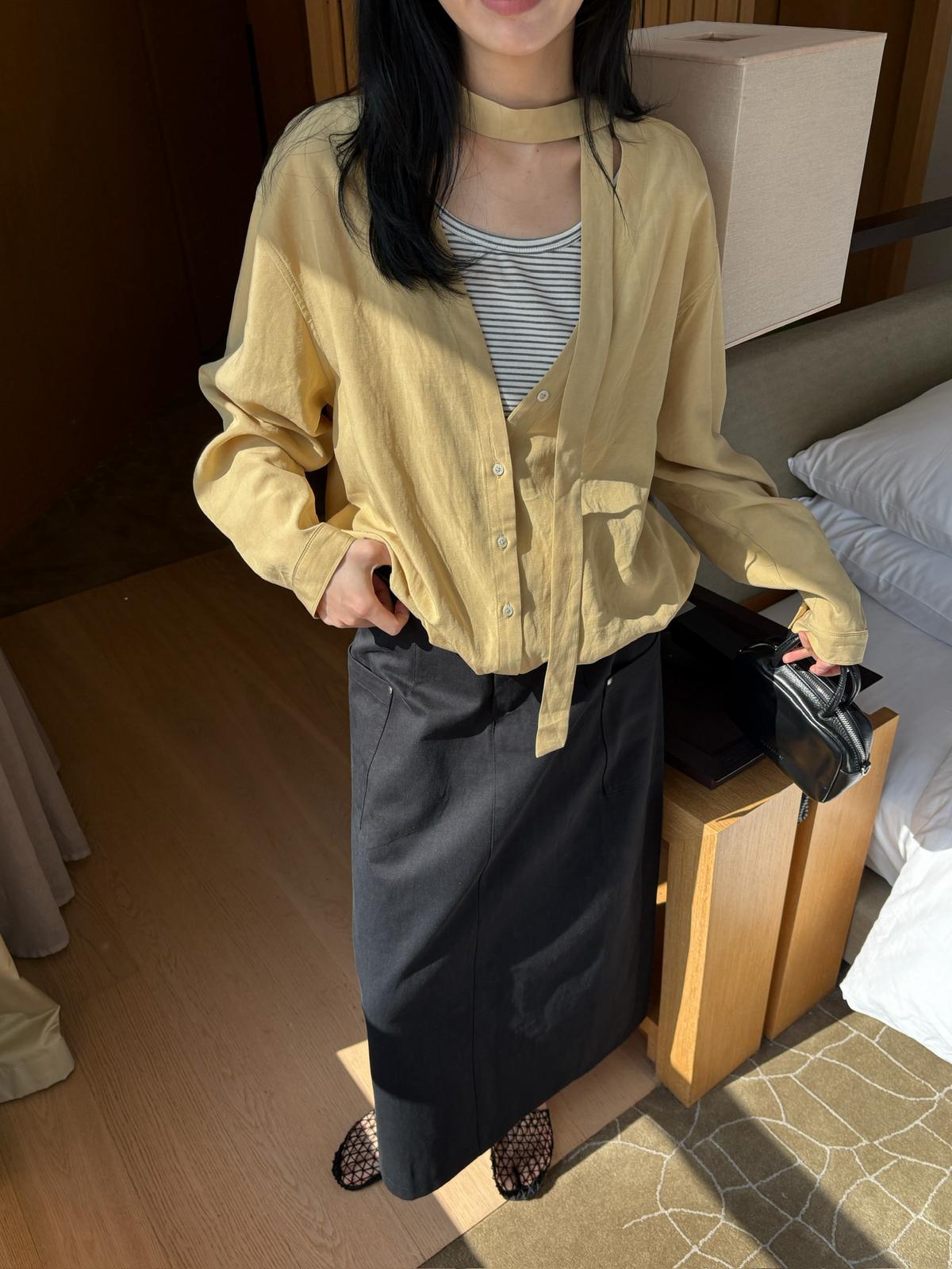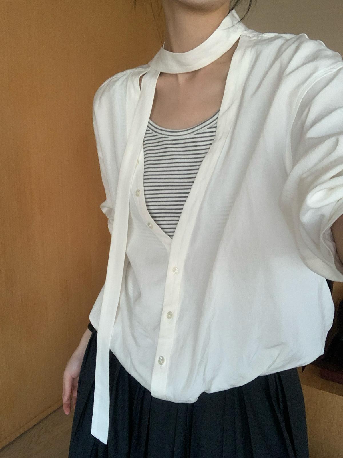 【C8680】慵懶氛圍感假兩件條紋拼接萊賽爾亞麻小衫
