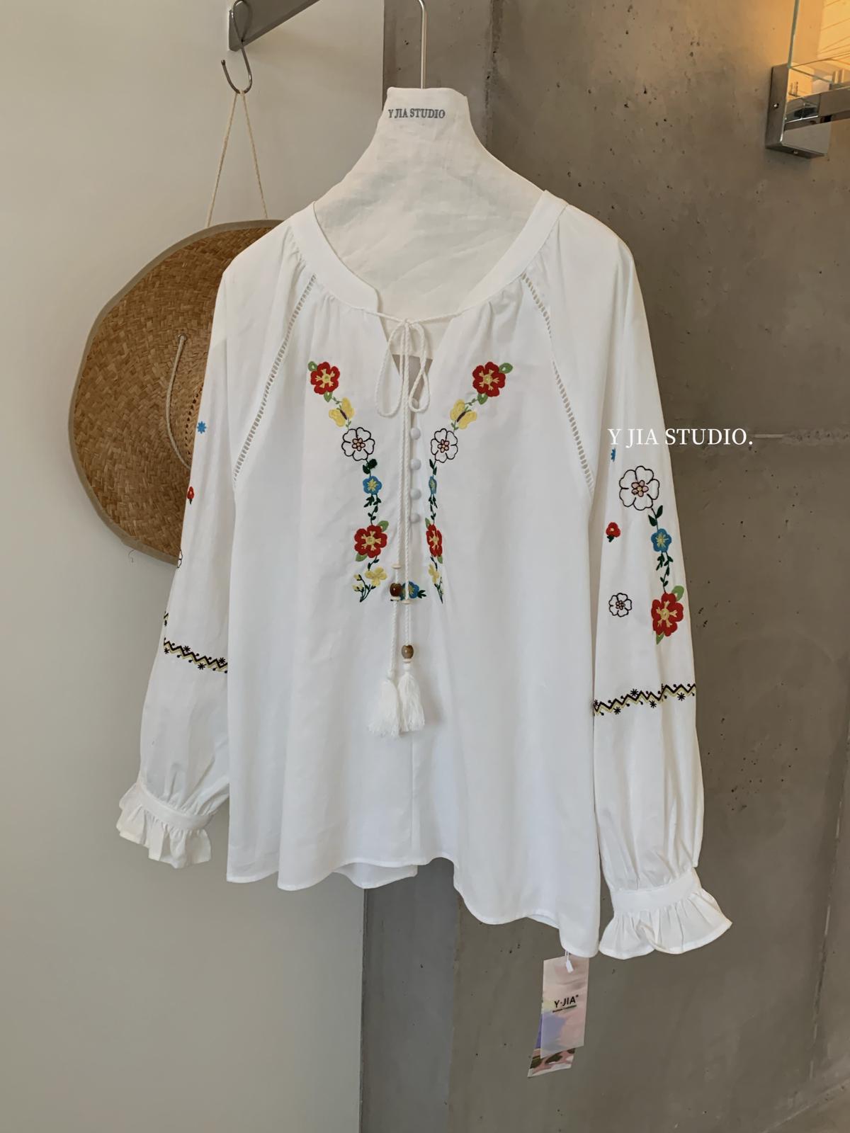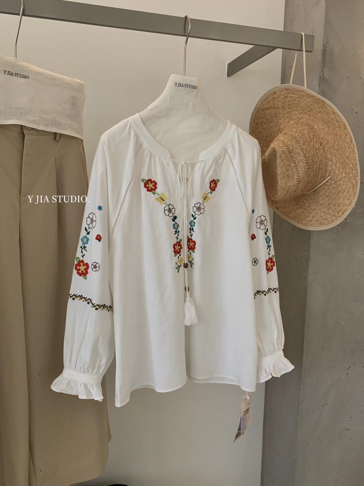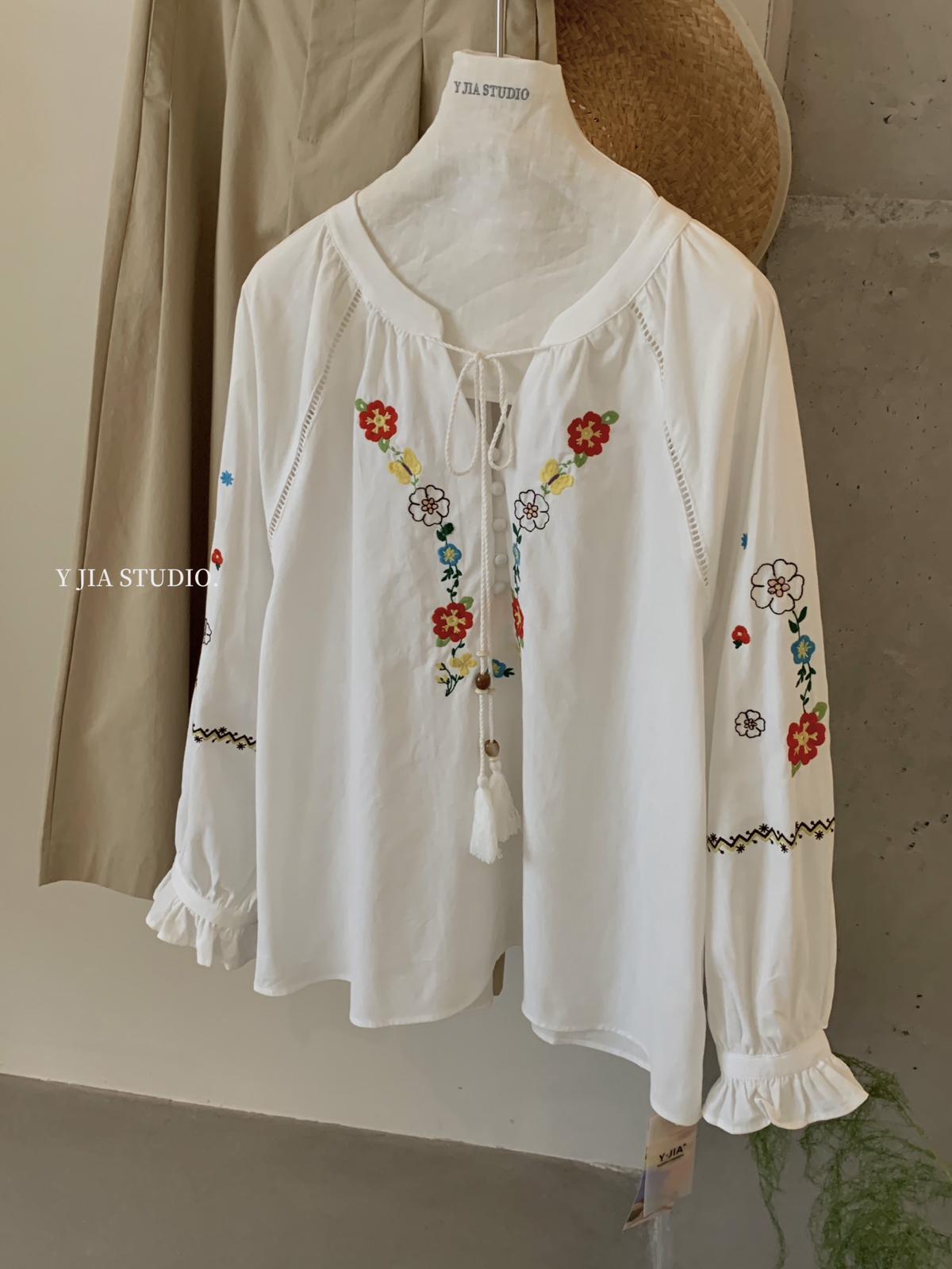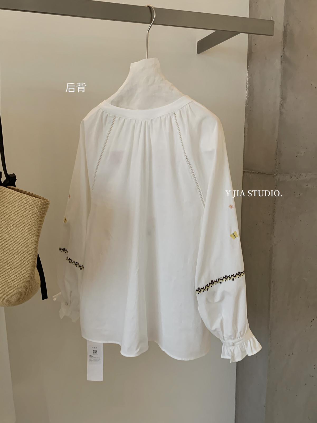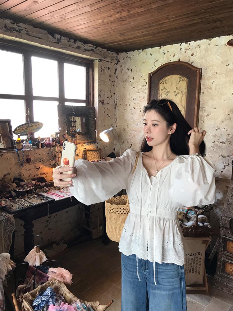 【C8688】設計感刺繡花邊燈籠袖寬鬆顯瘦襯衣小衫襯衫