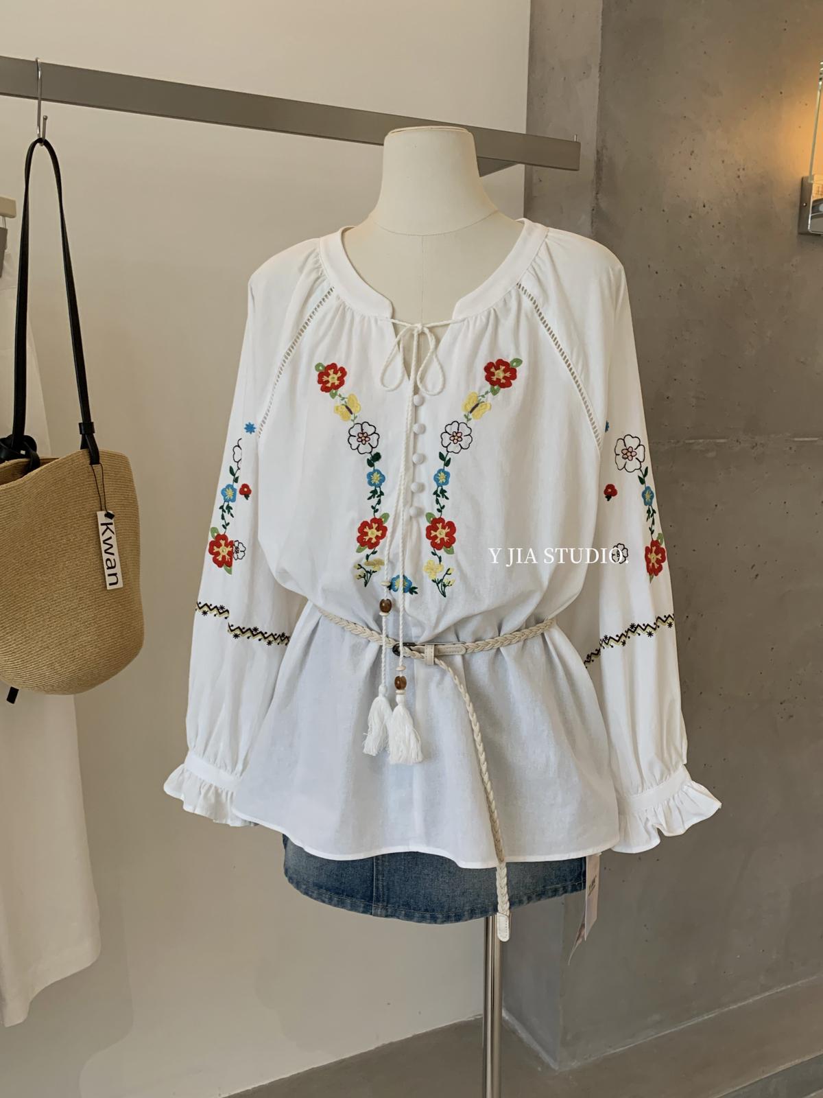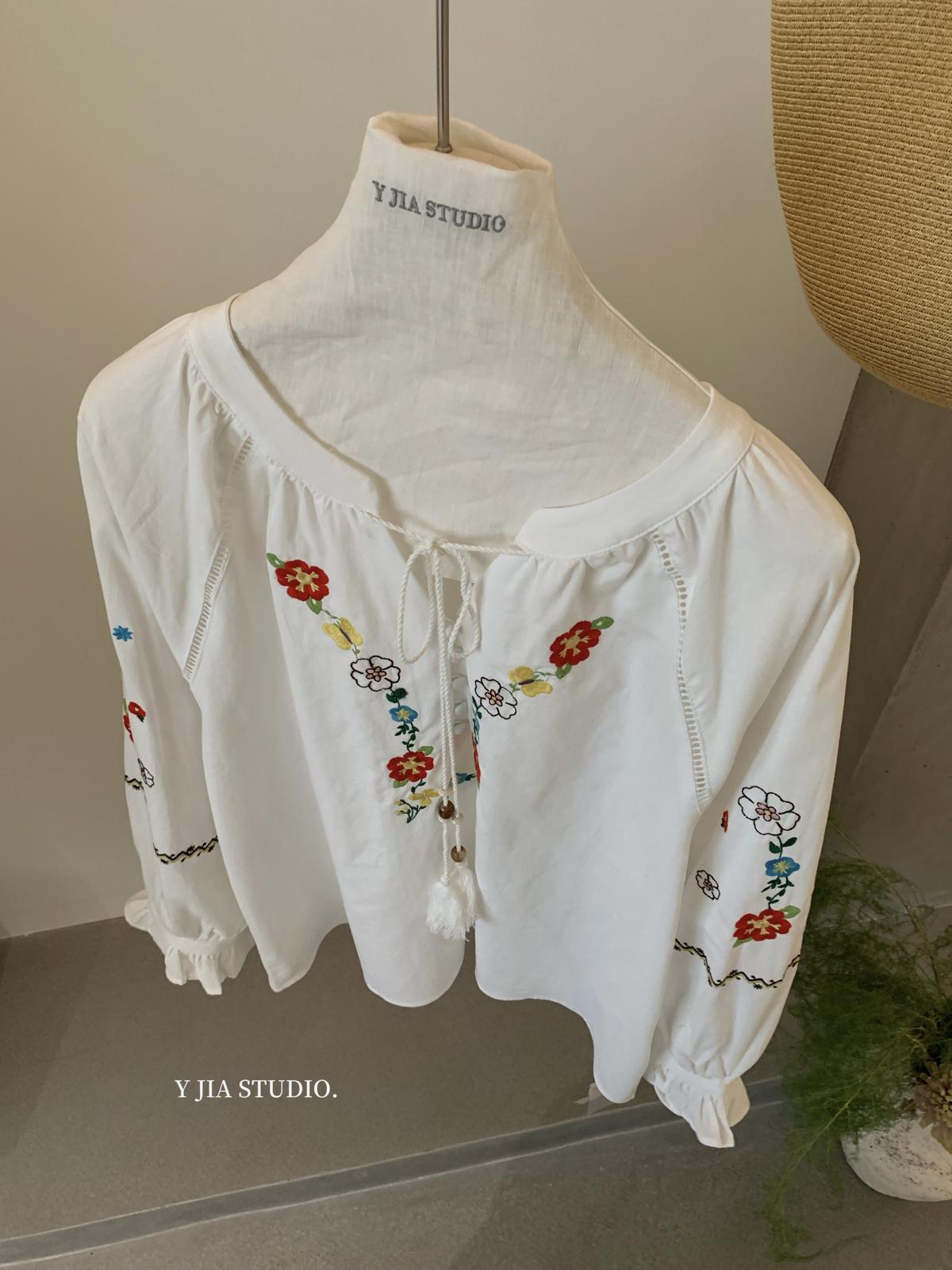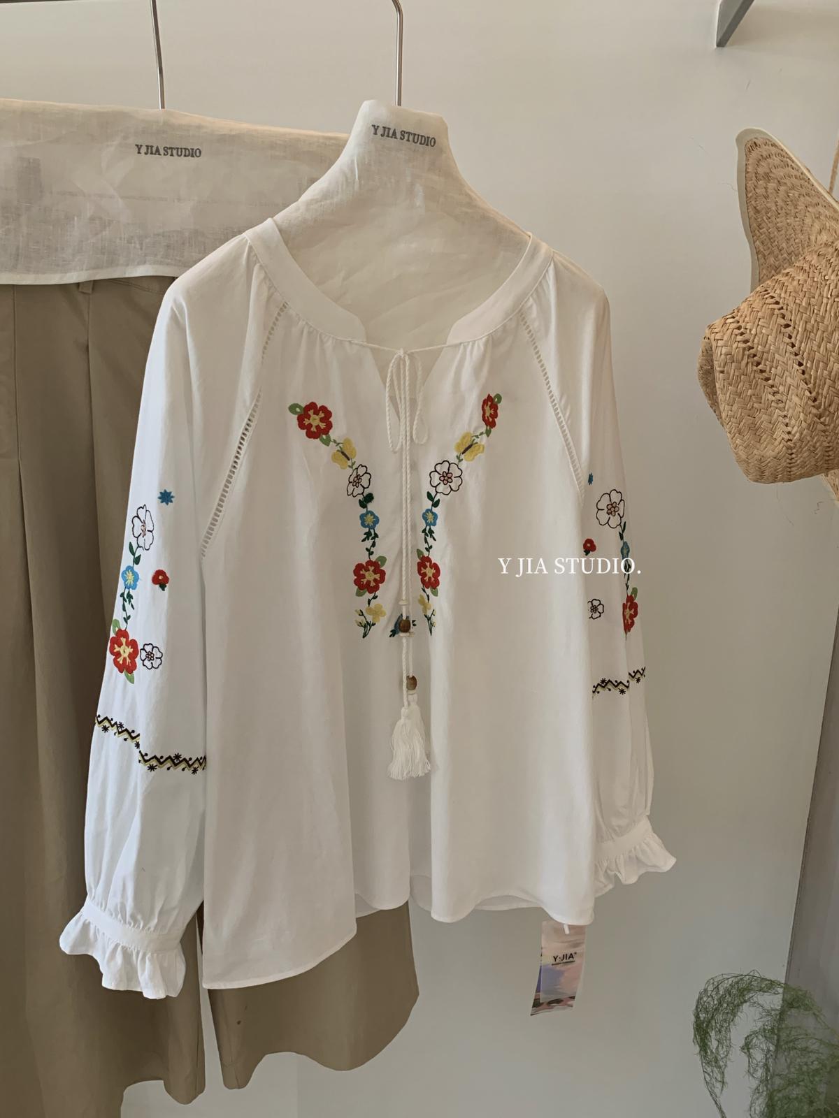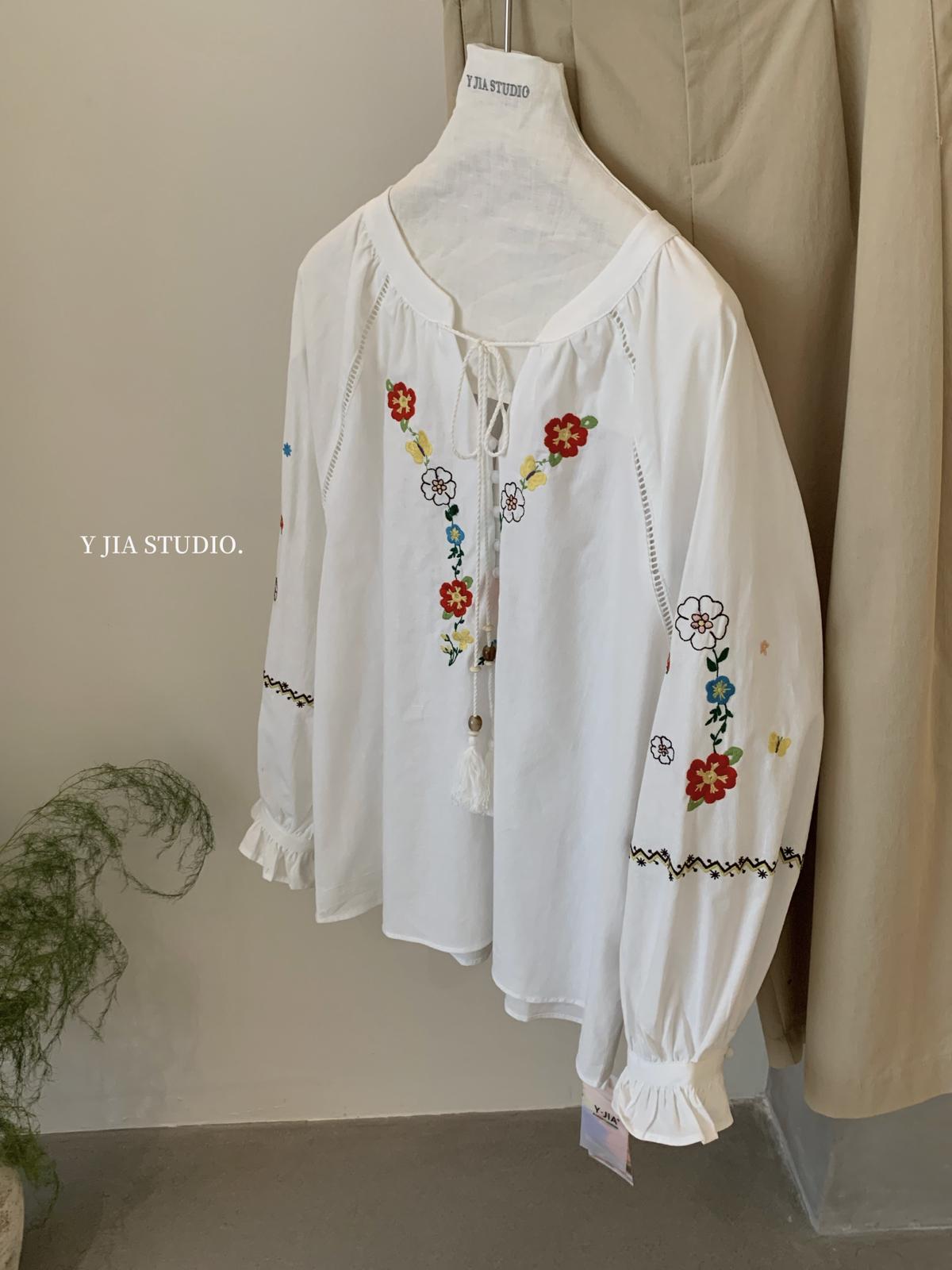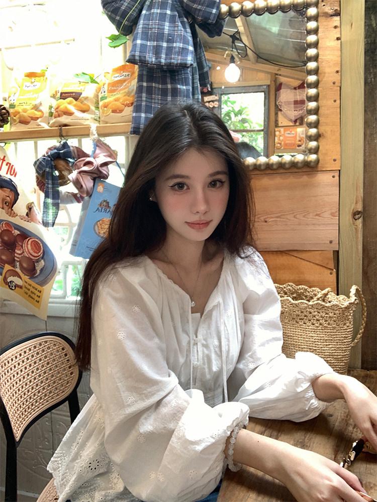 【C8688】設計感刺繡花邊燈籠袖寬鬆顯瘦襯衣小衫襯衫