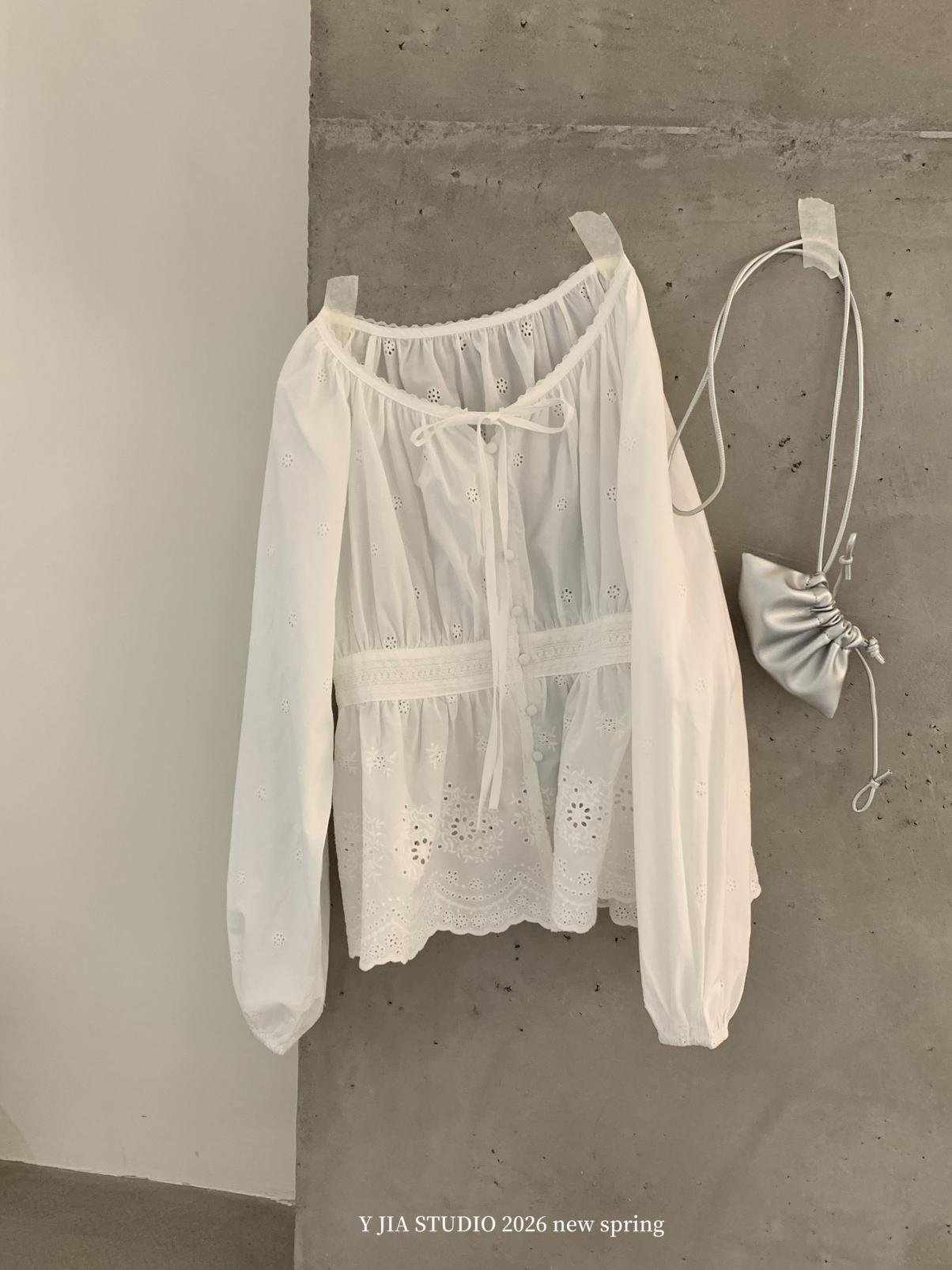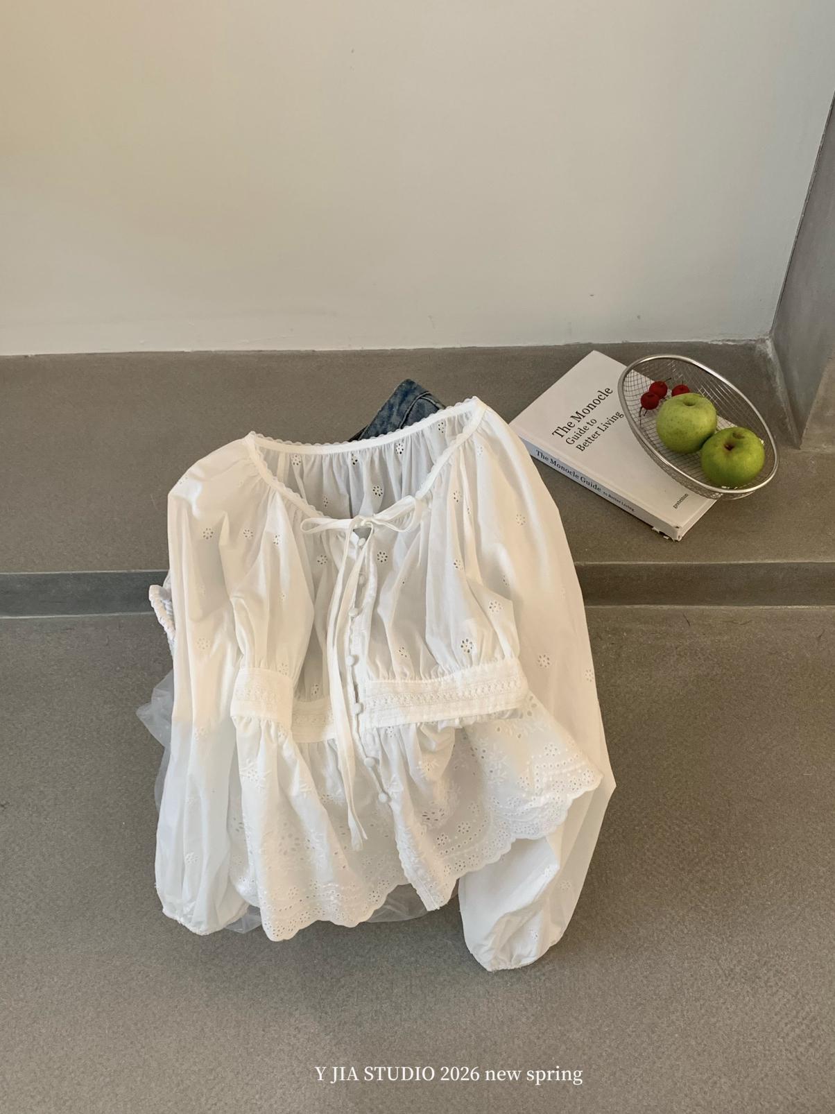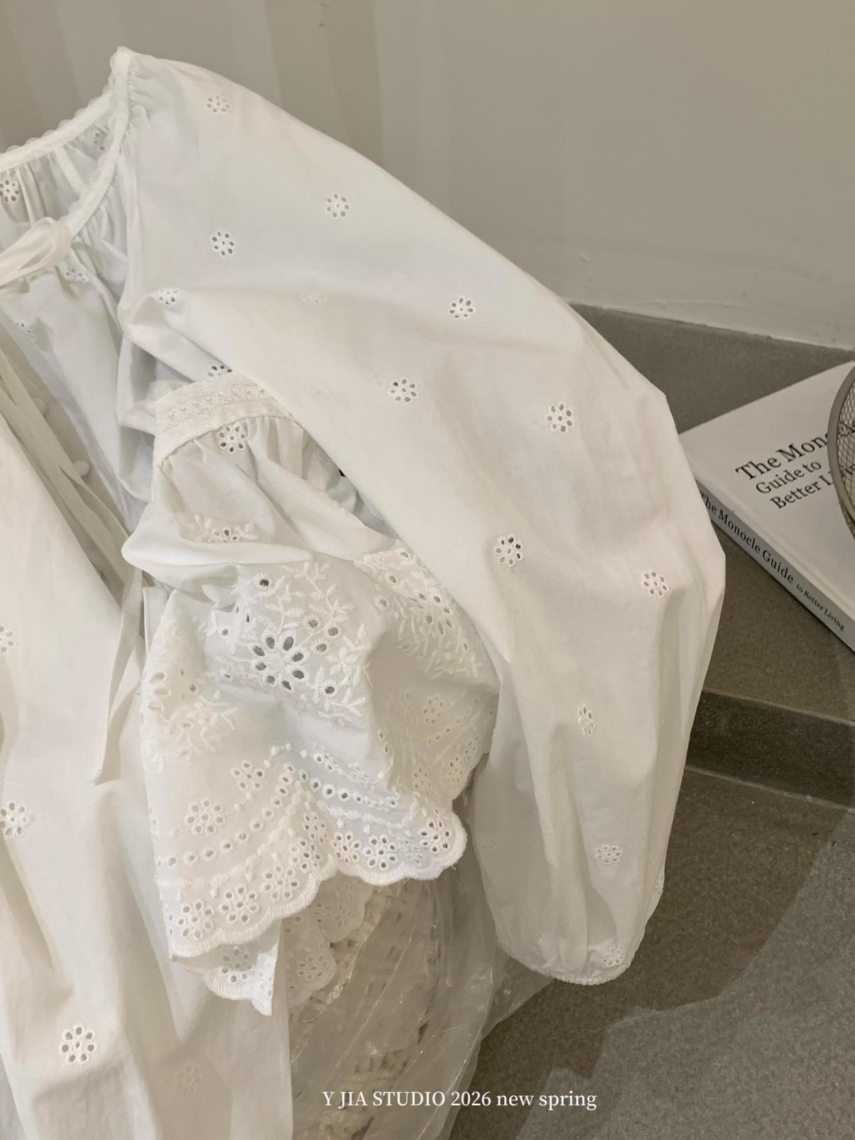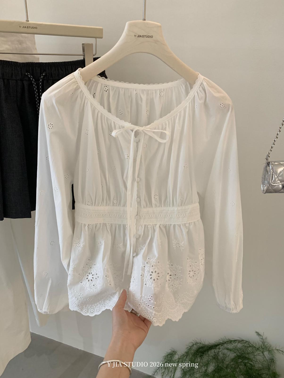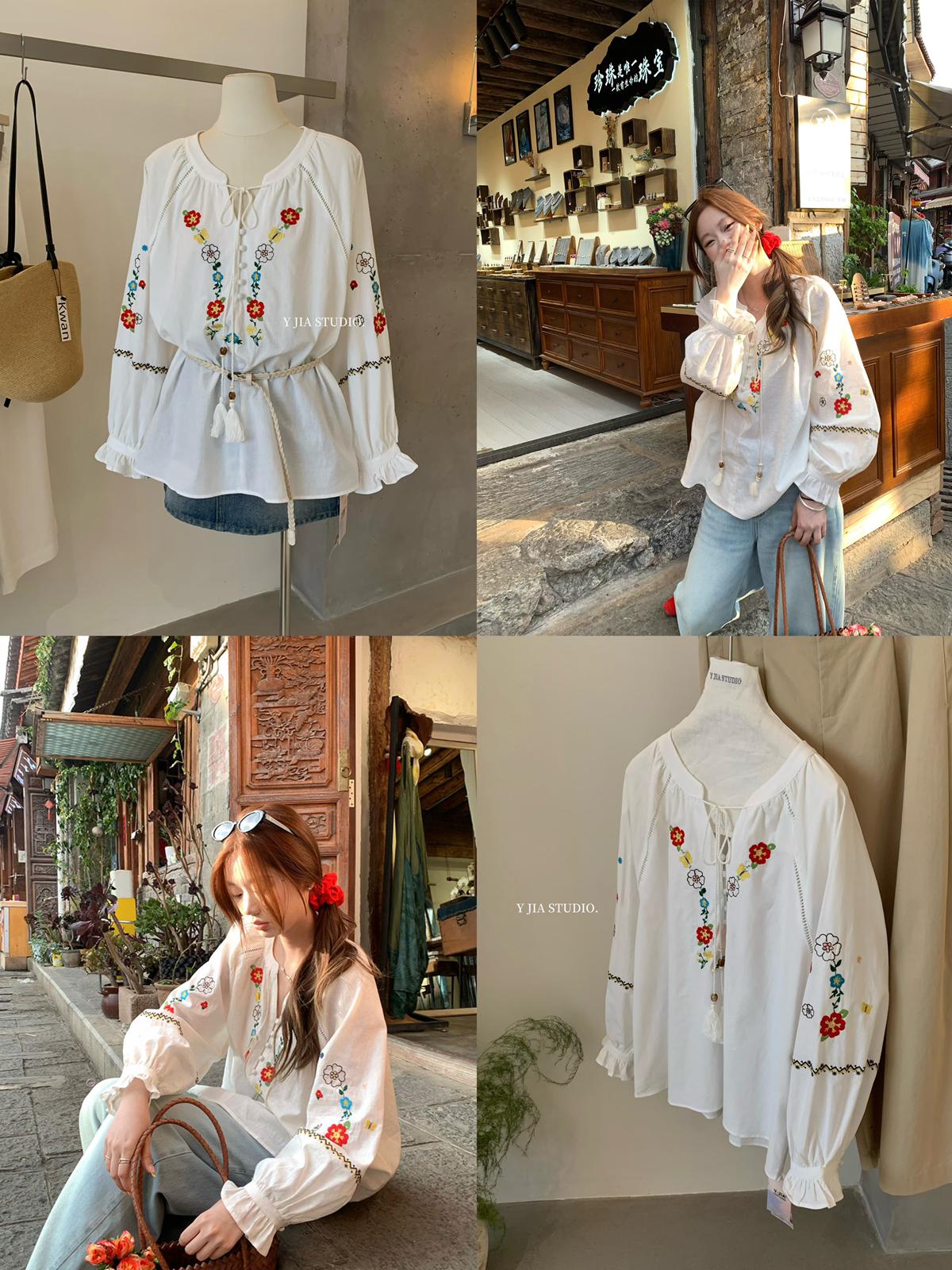 【C8688】設計感刺繡花邊燈籠袖寬鬆顯瘦襯衣小衫襯衫