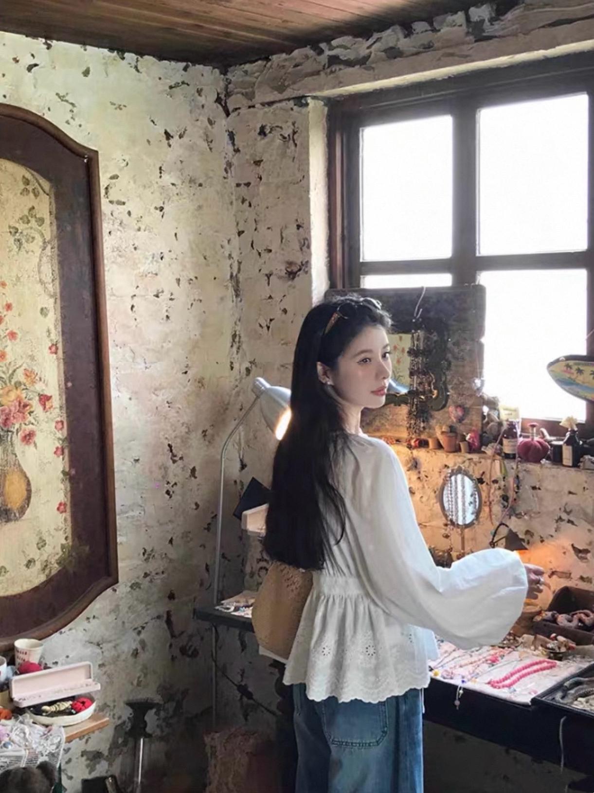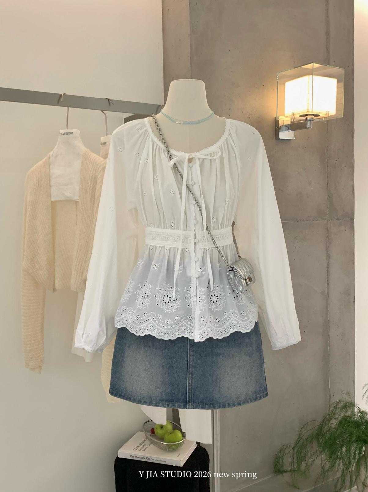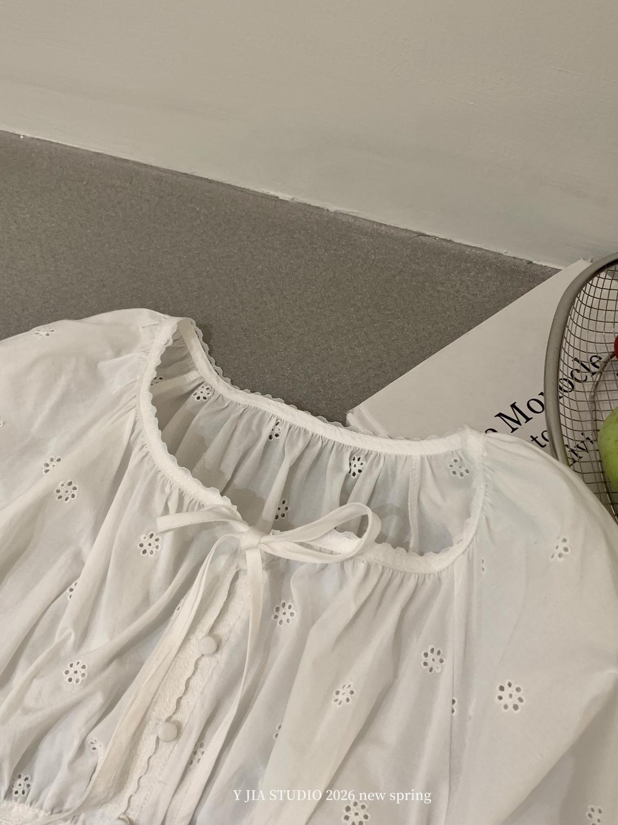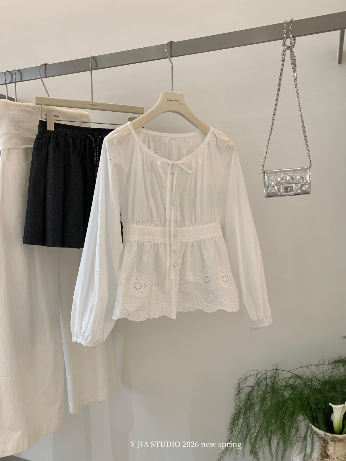 【C8688】設計感刺繡花邊燈籠袖寬鬆顯瘦襯衣小衫襯衫