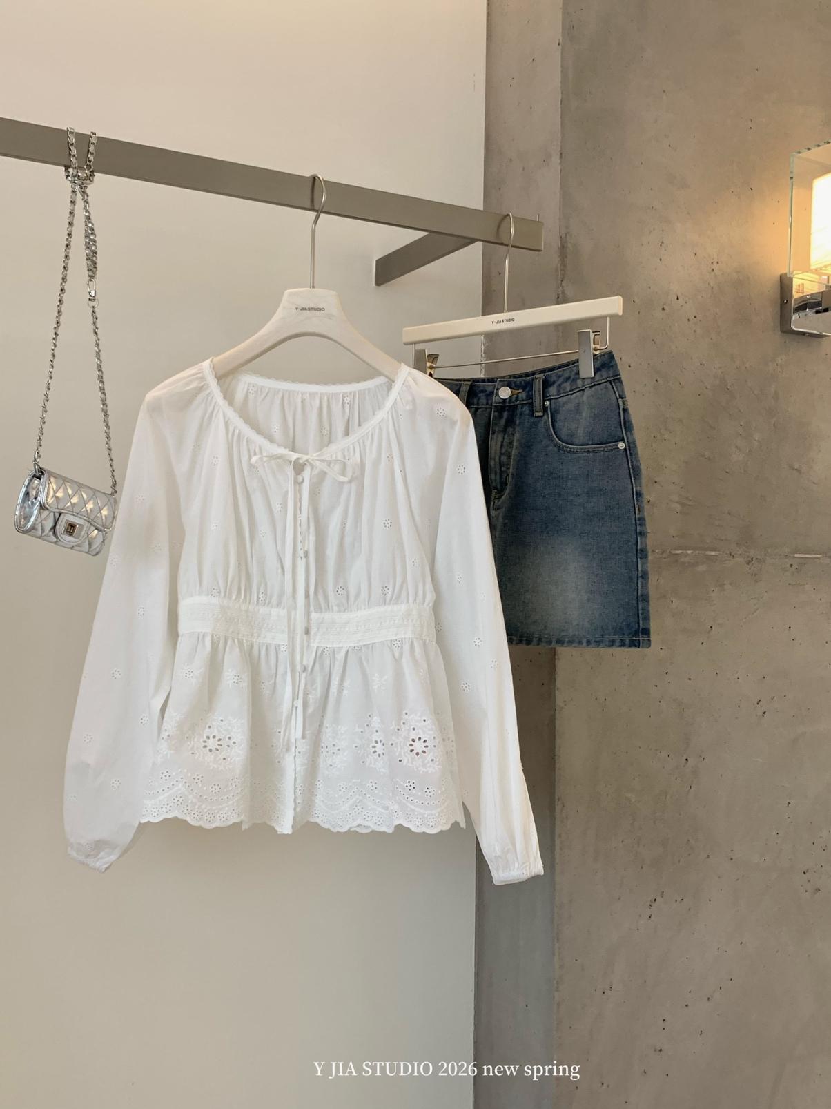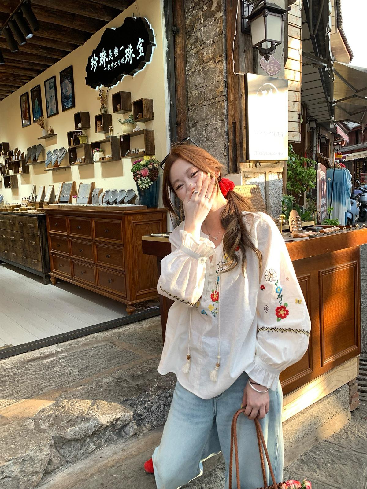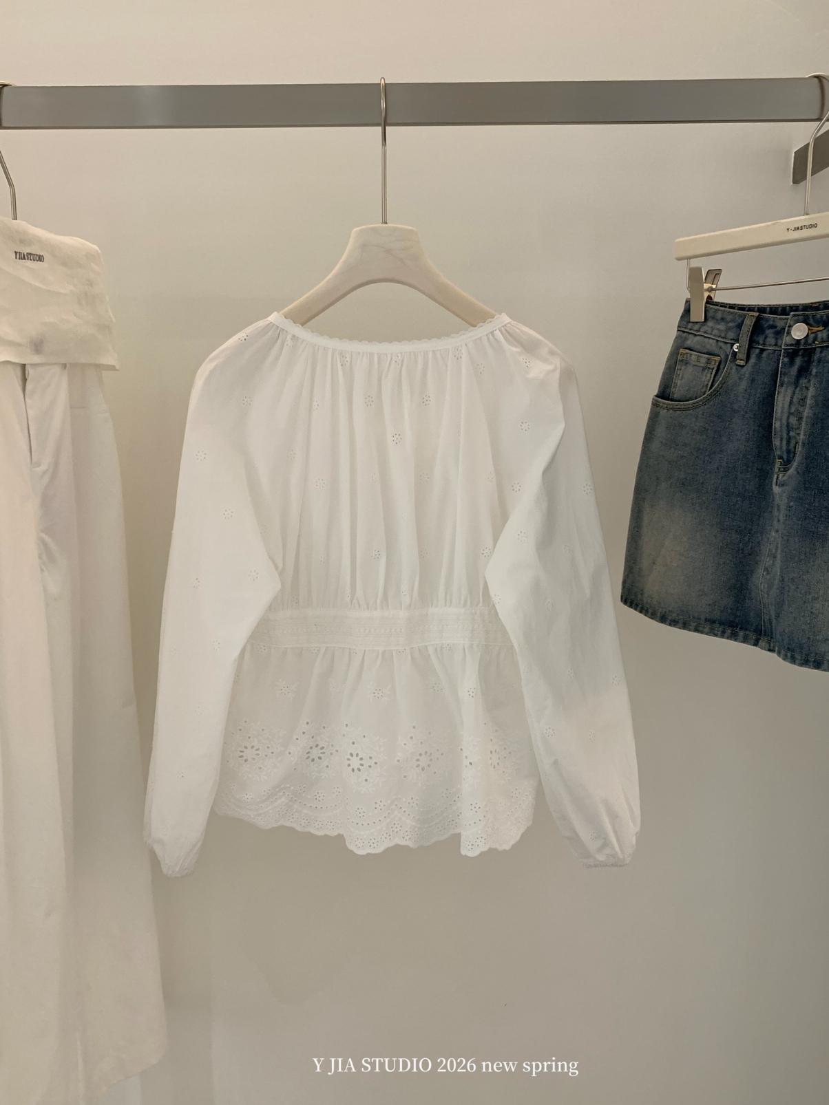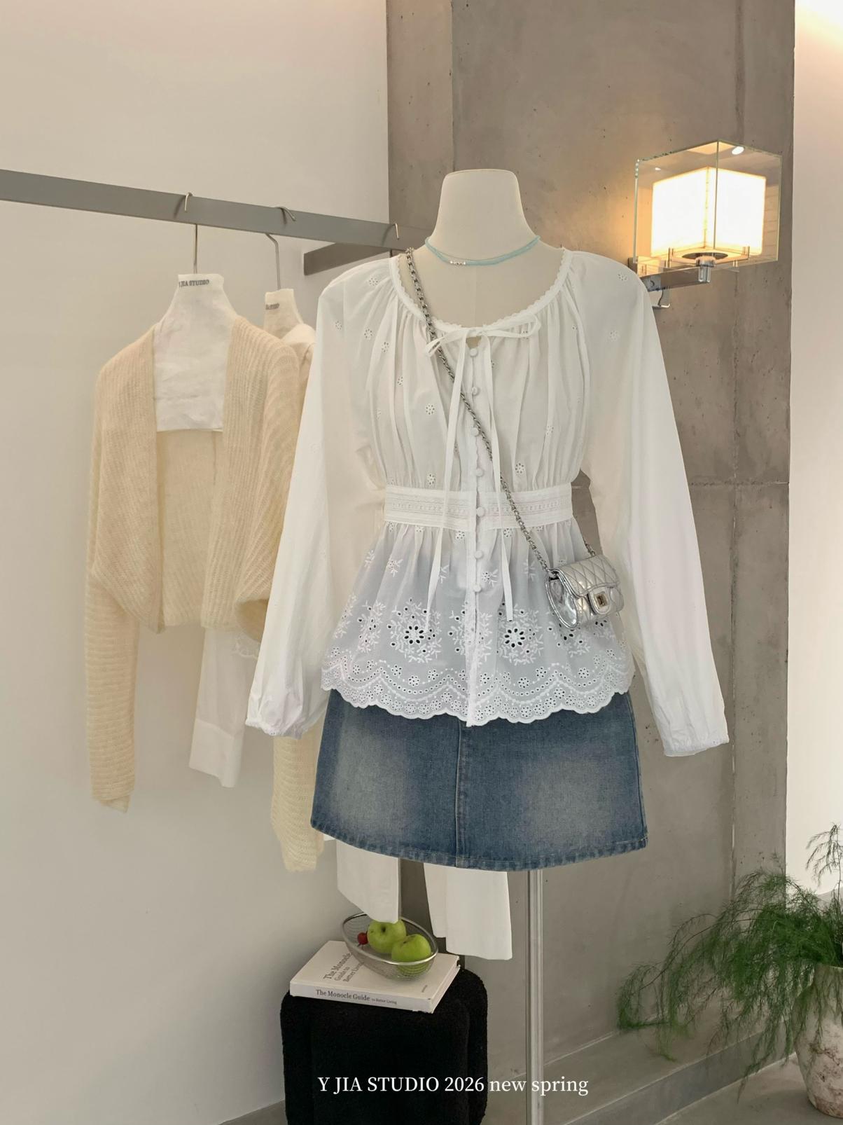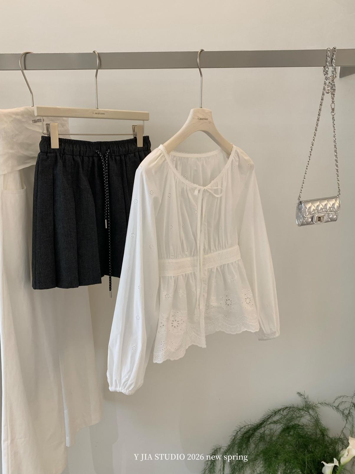 【C8688】設計感刺繡花邊燈籠袖寬鬆顯瘦襯衣小衫襯衫