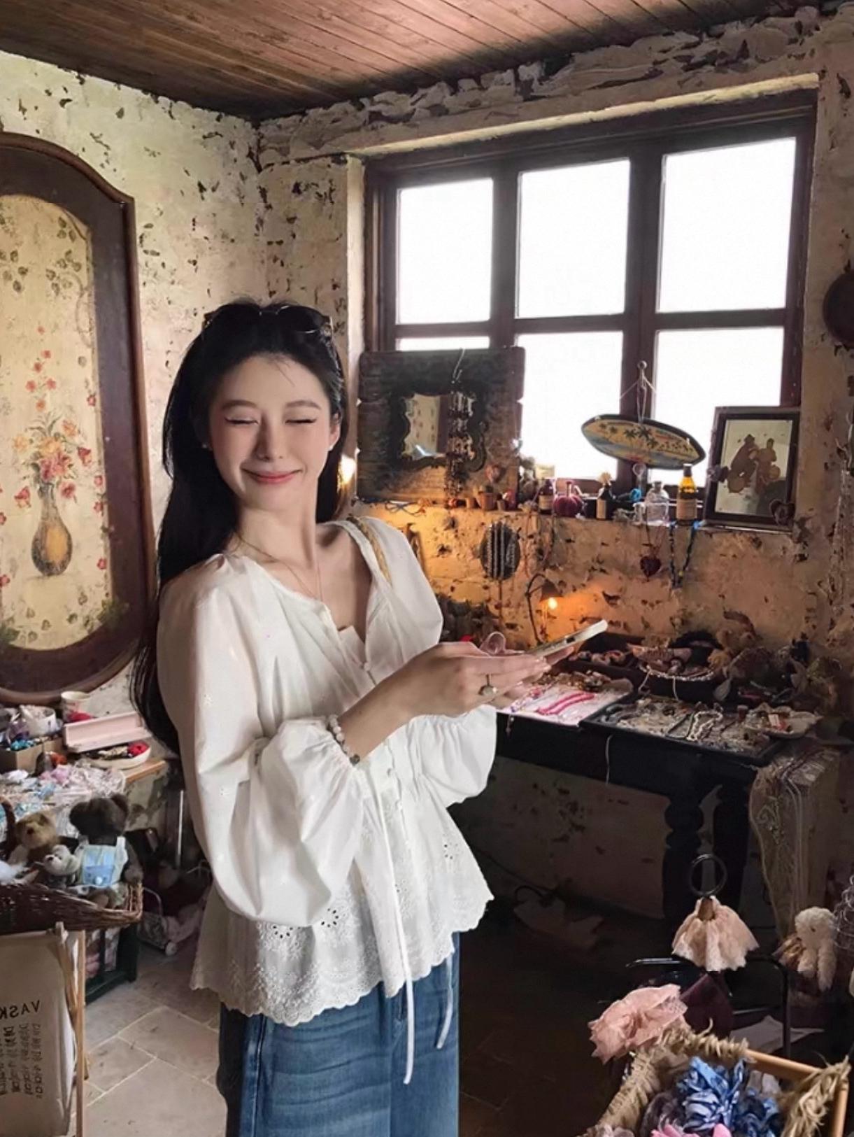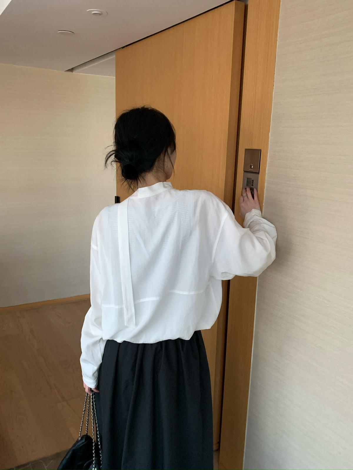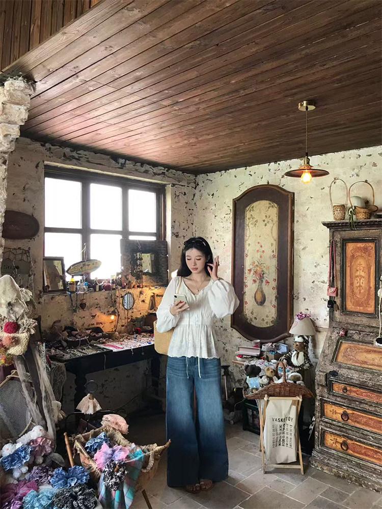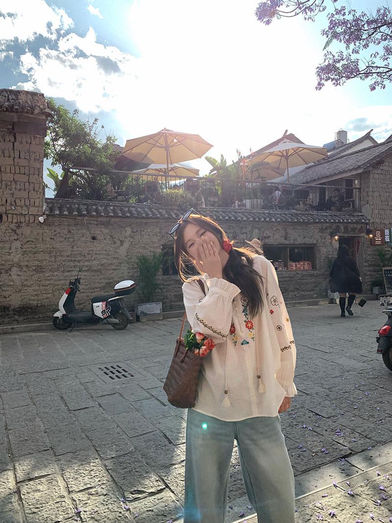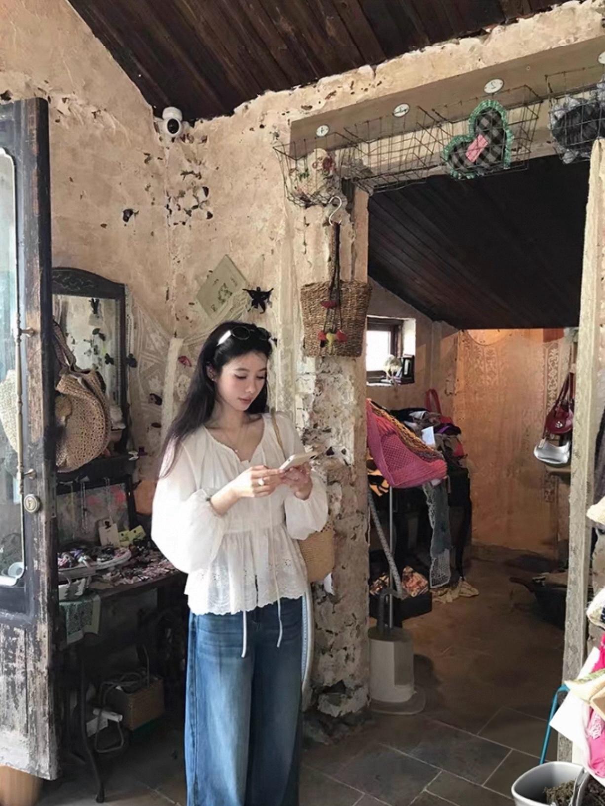 【C8688】設計感刺繡花邊燈籠袖寬鬆顯瘦襯衣小衫襯衫