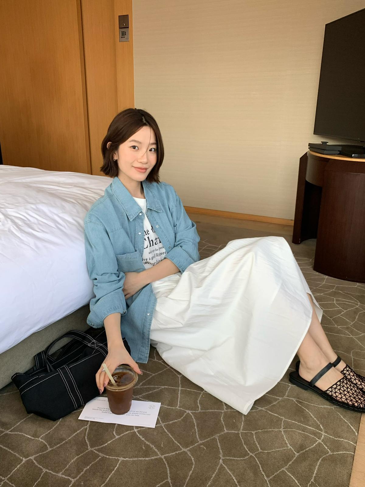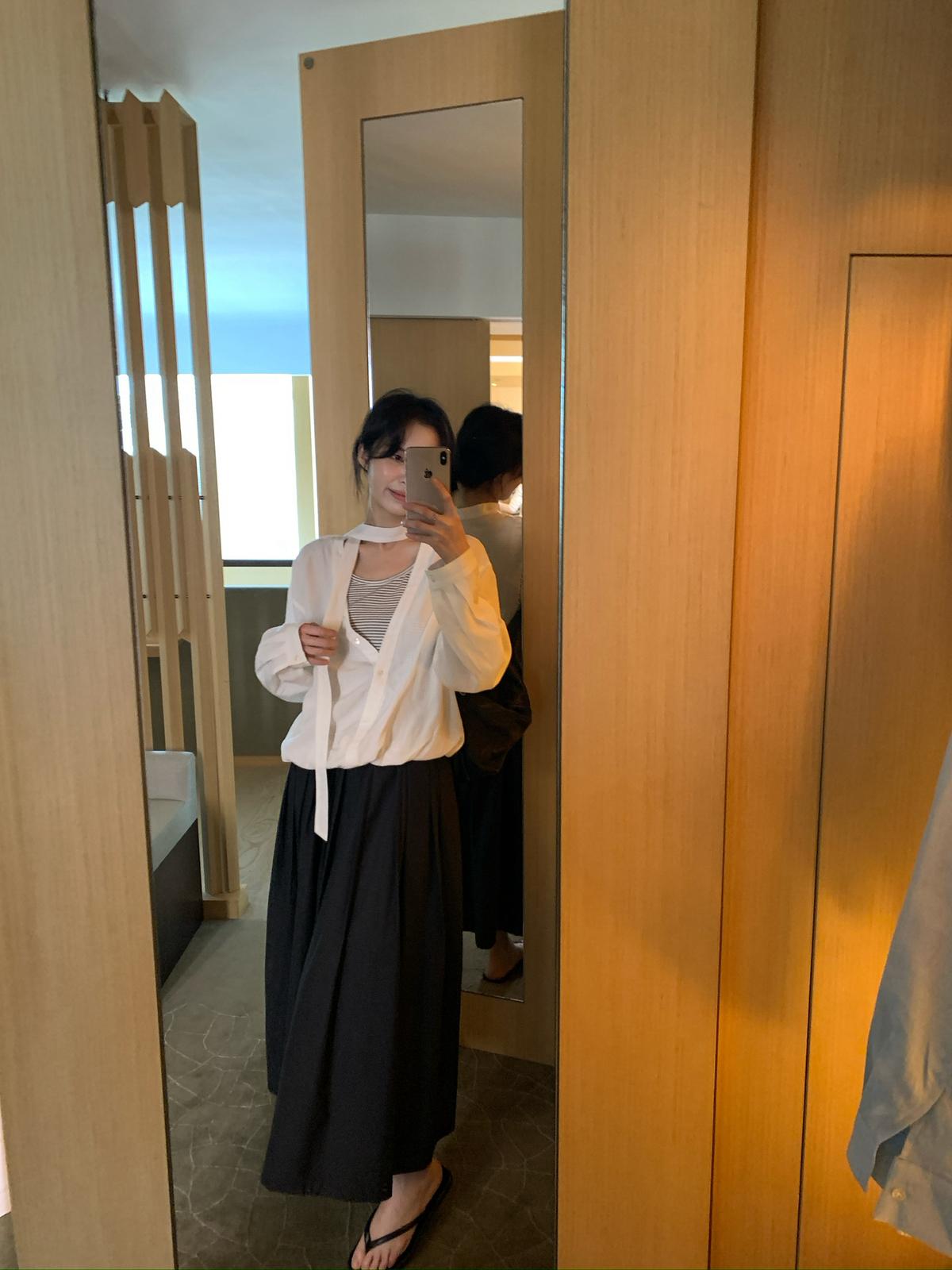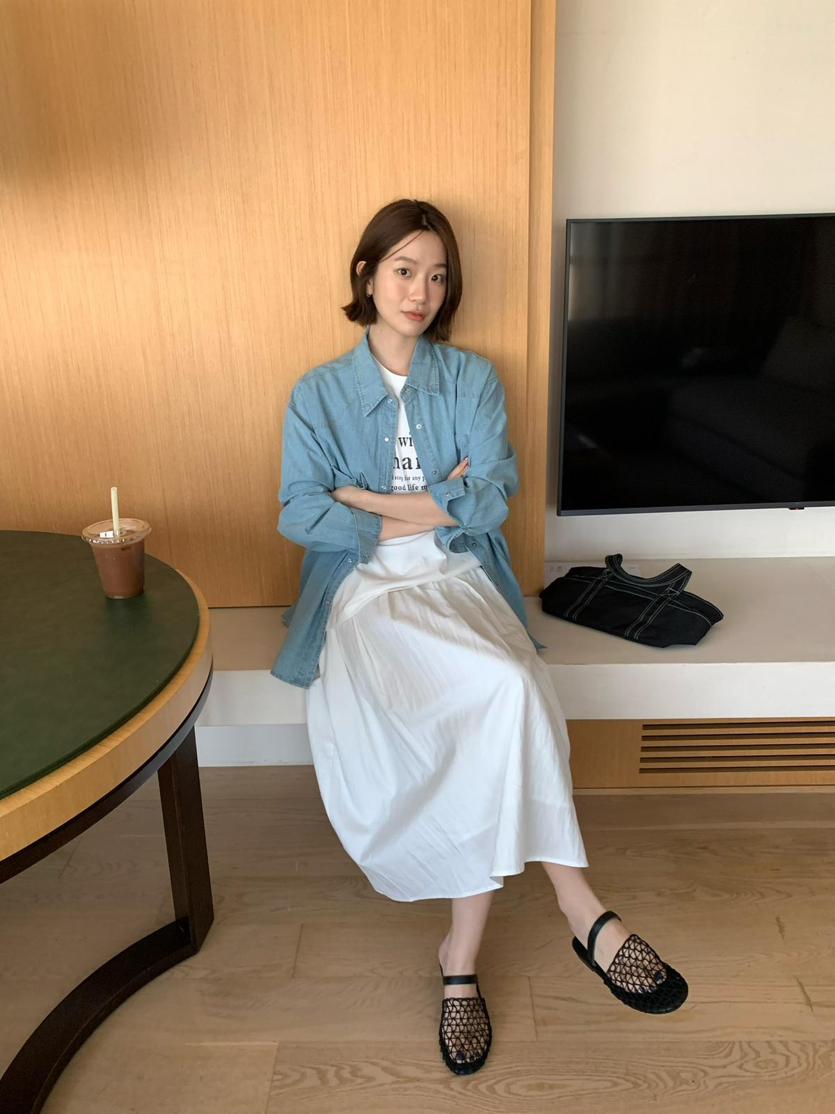 【C8663】簡約寬鬆鬆緊下開叉超百搭半身裙(配腰帶)