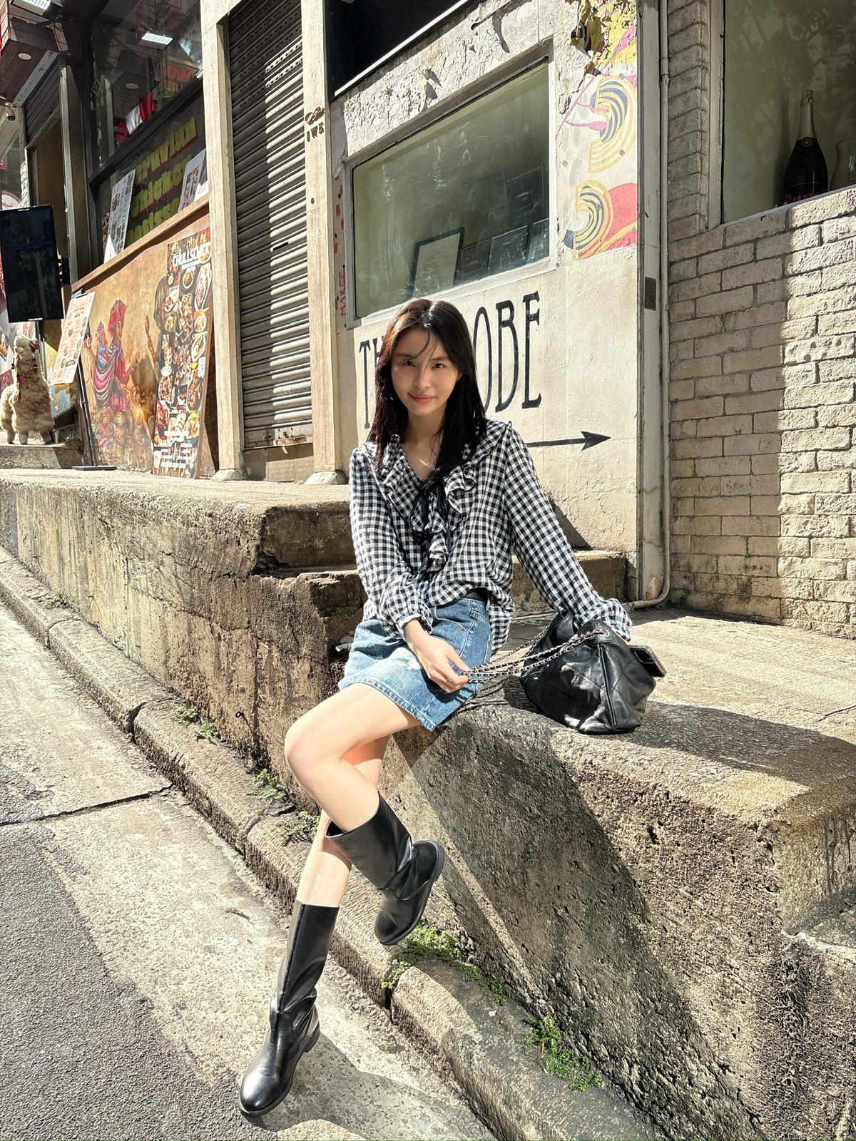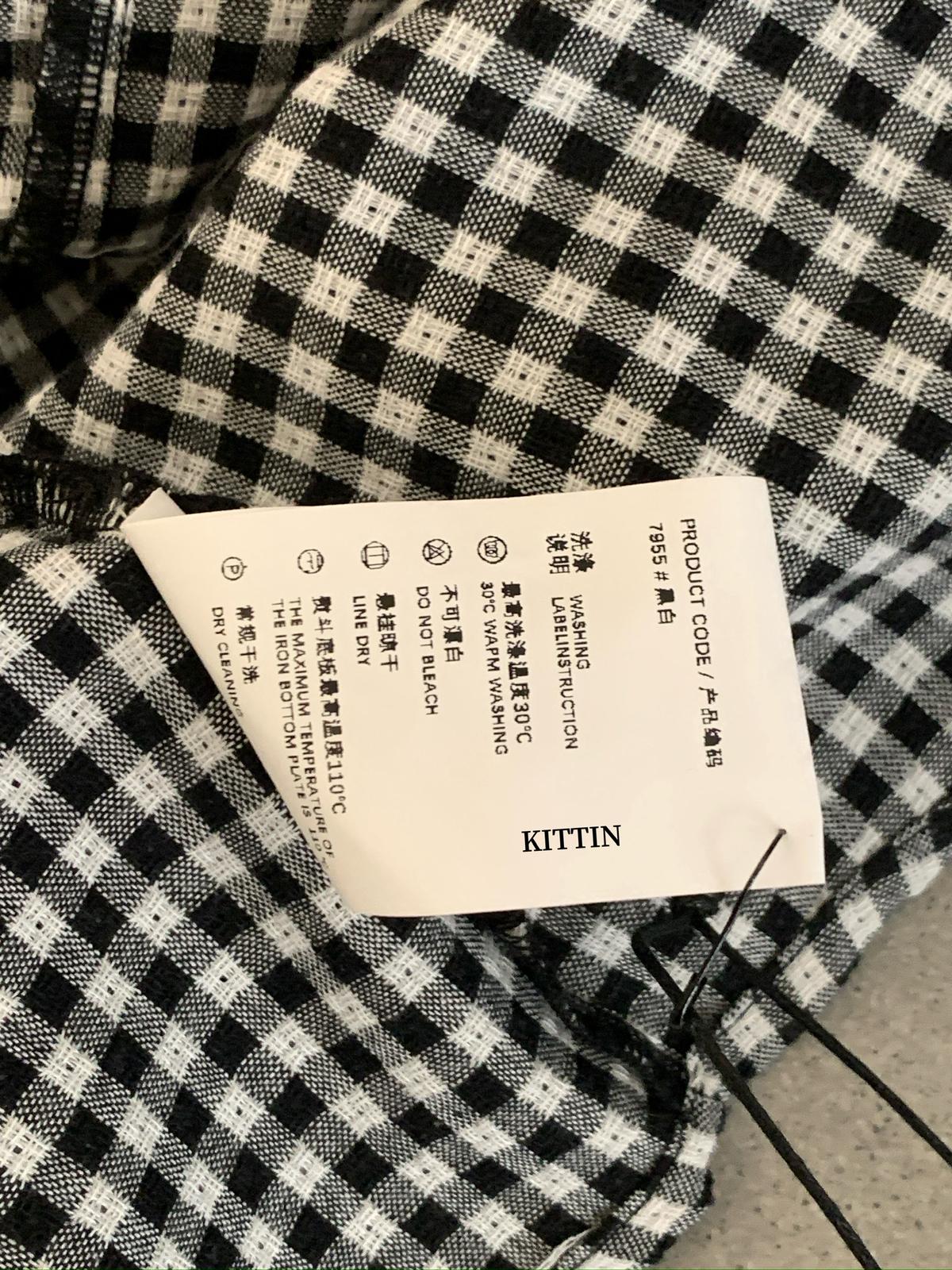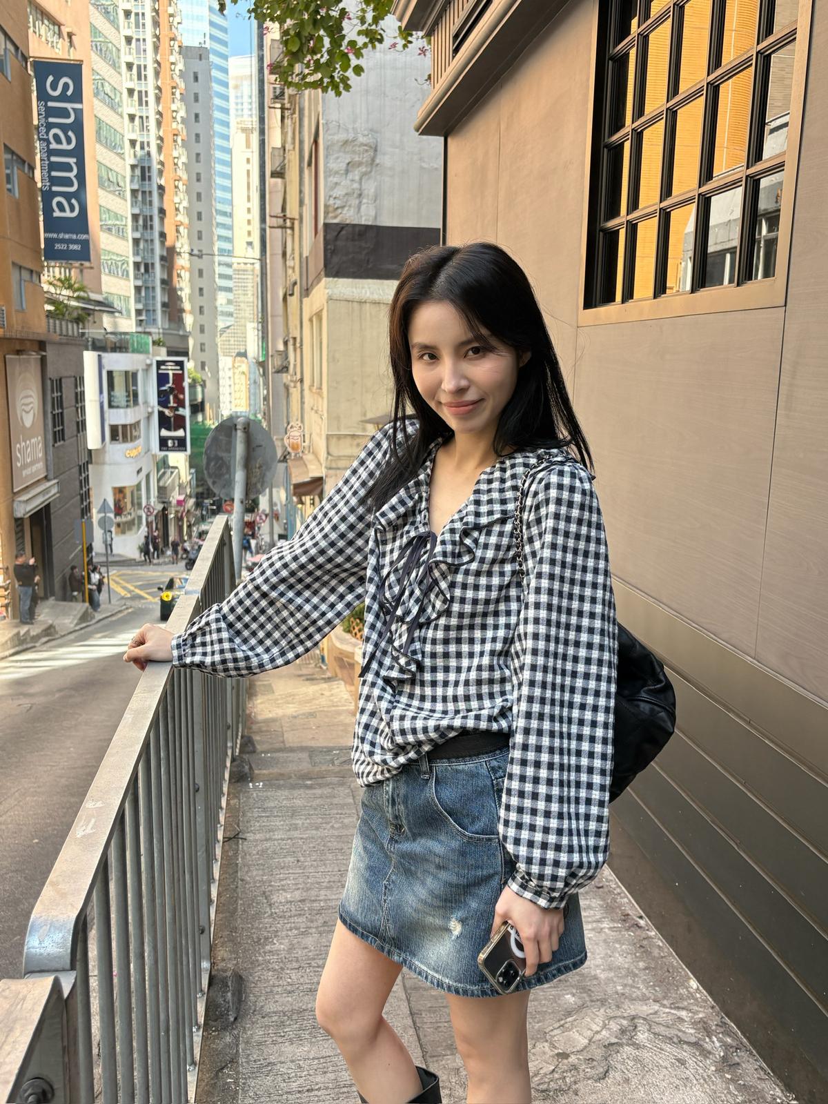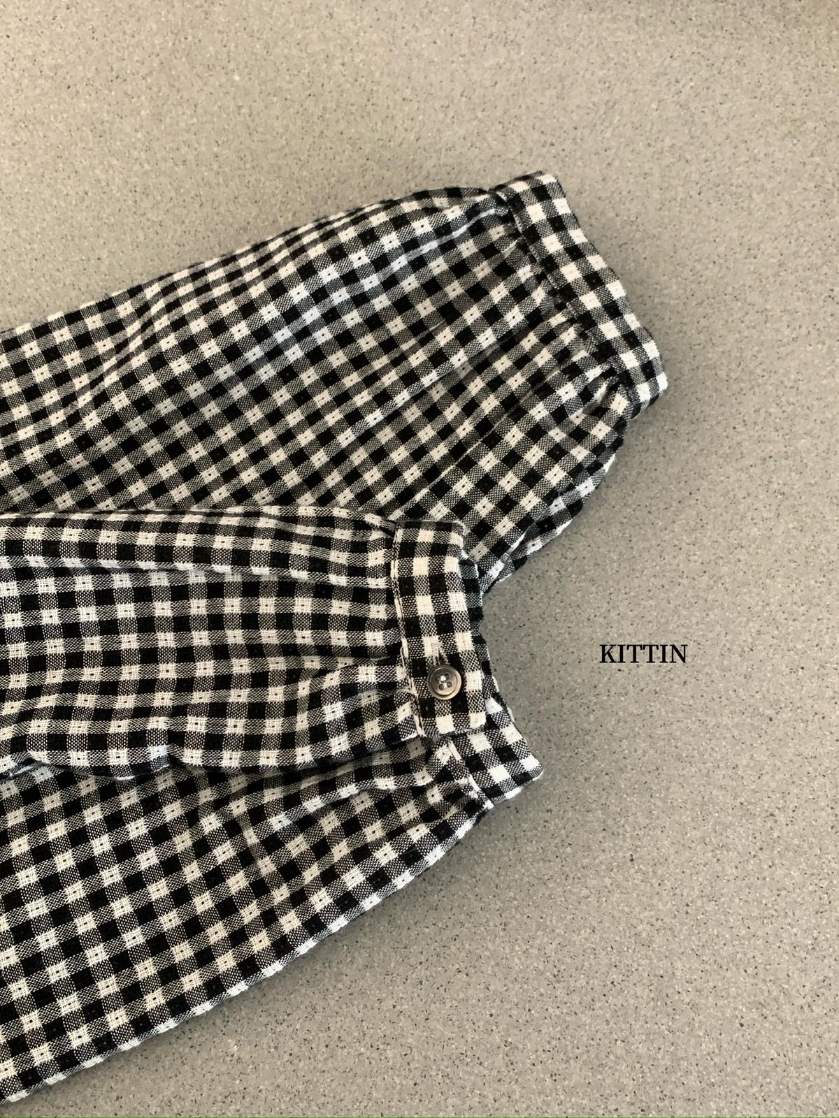 【C8671】韓系清新氧氣感格紋字母刺繡襯衫