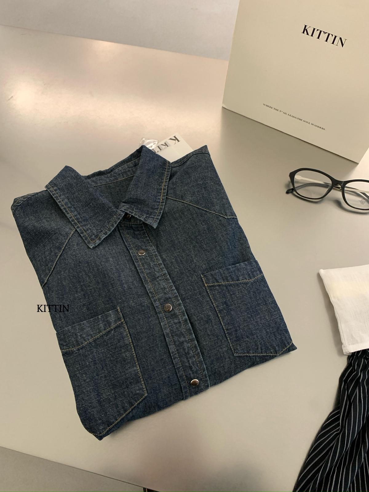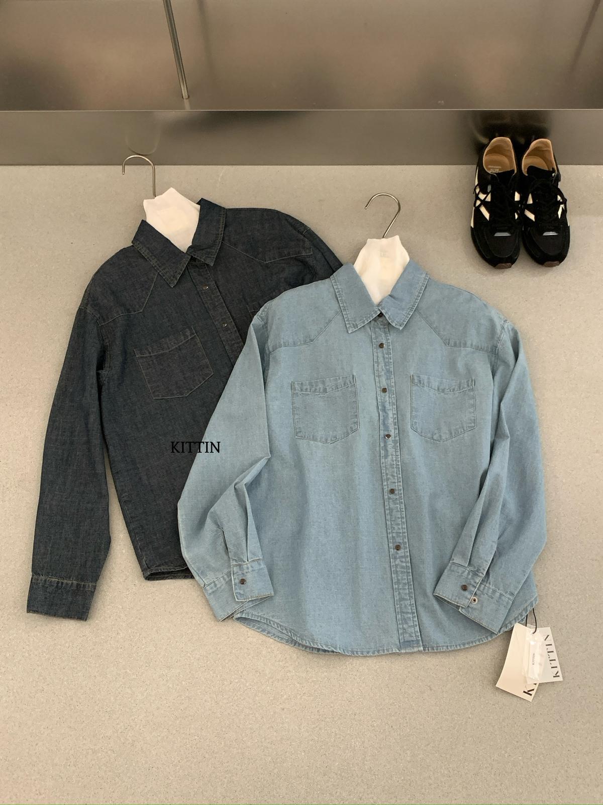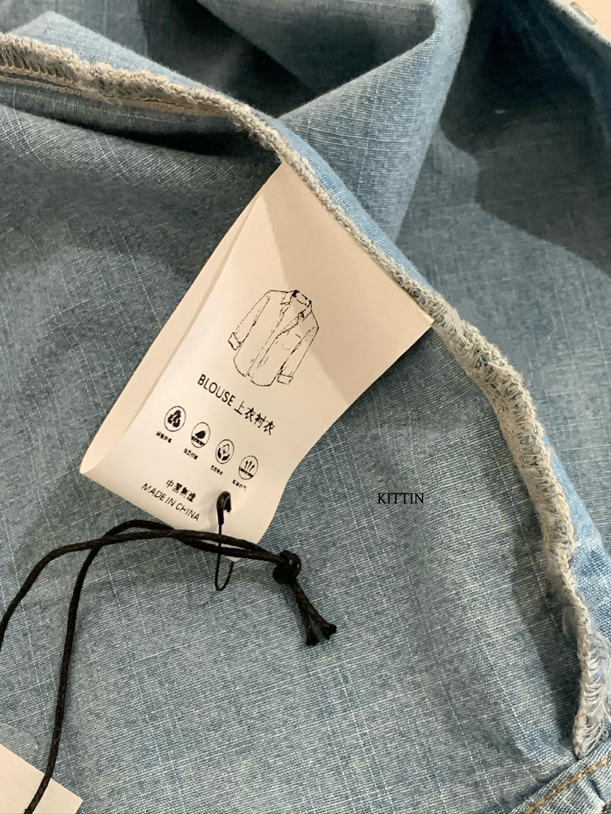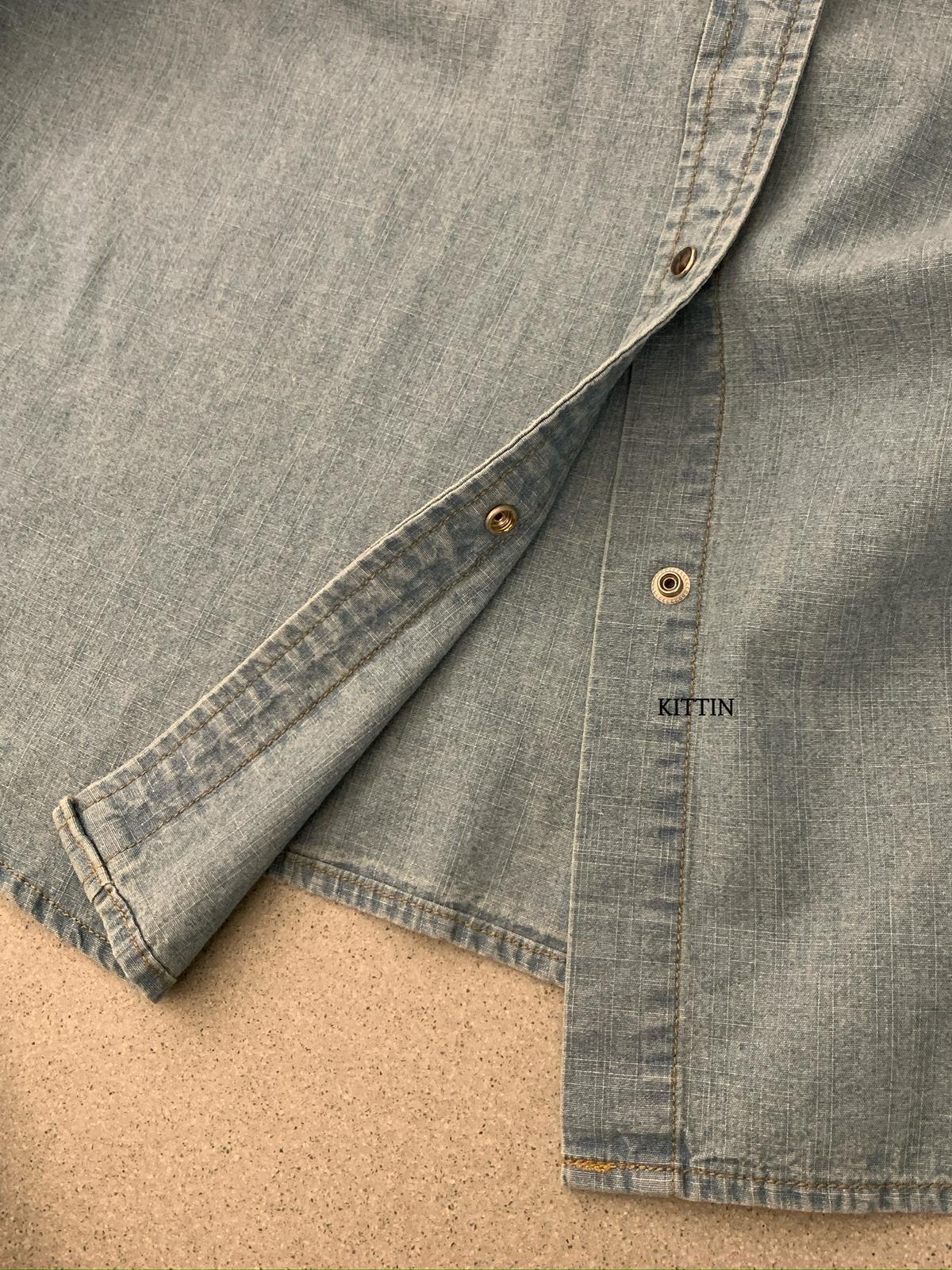 【C8682】復古洗水工裝風雙口袋牛仔襯衫