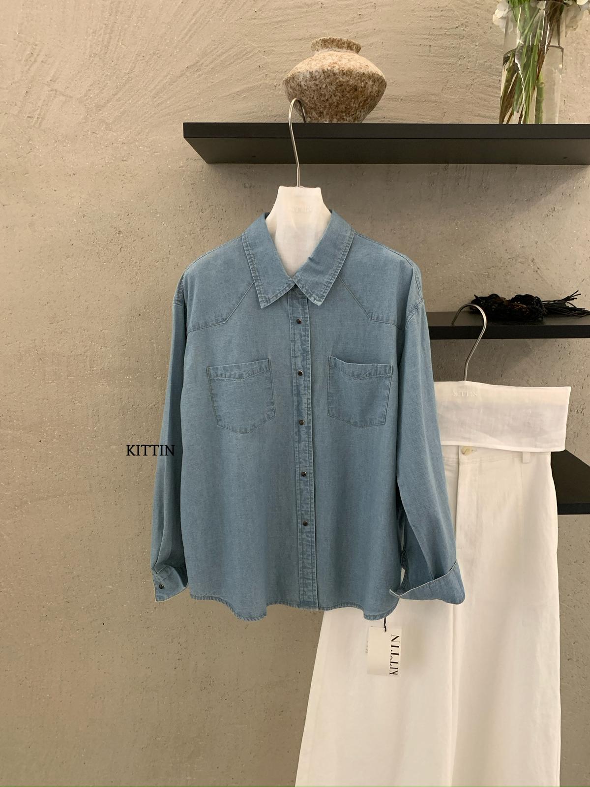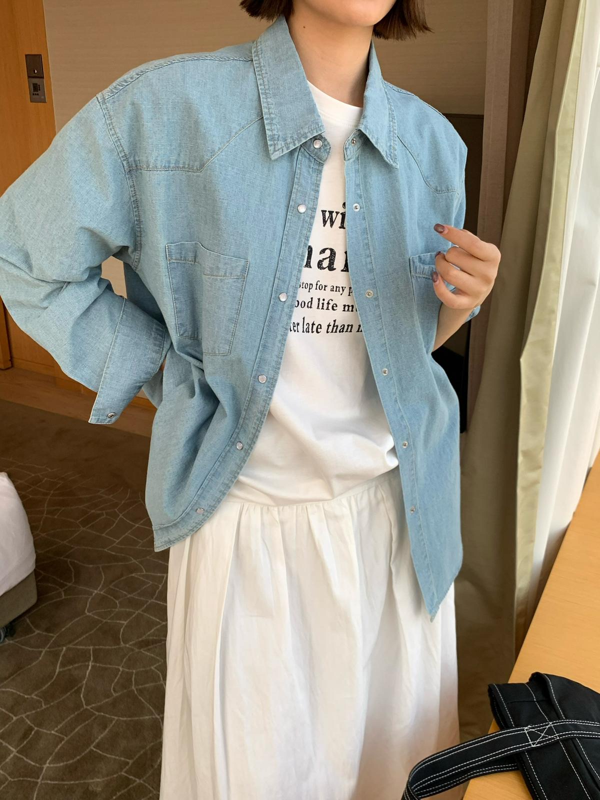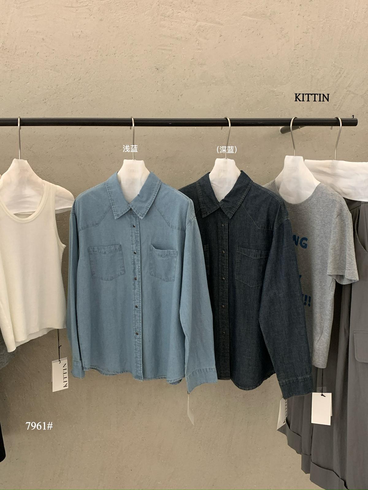【C8682】復古洗水工裝風雙口袋牛仔襯衫