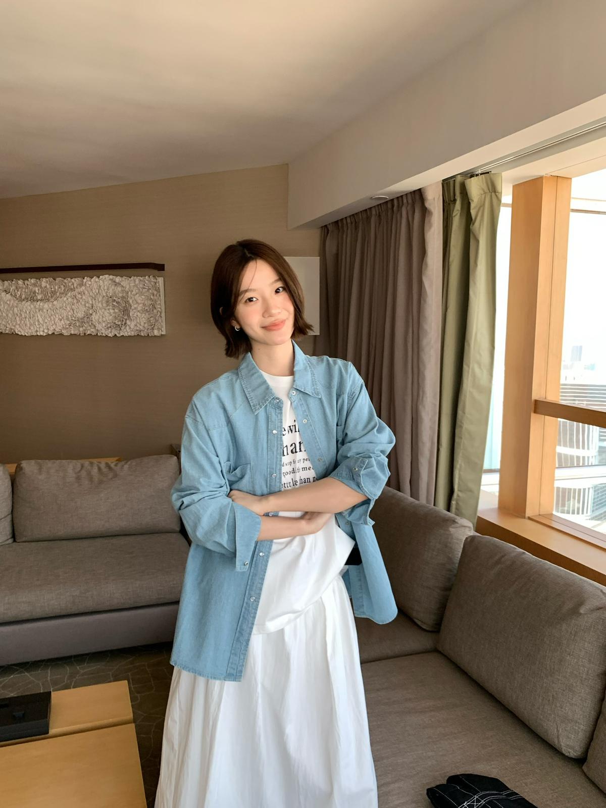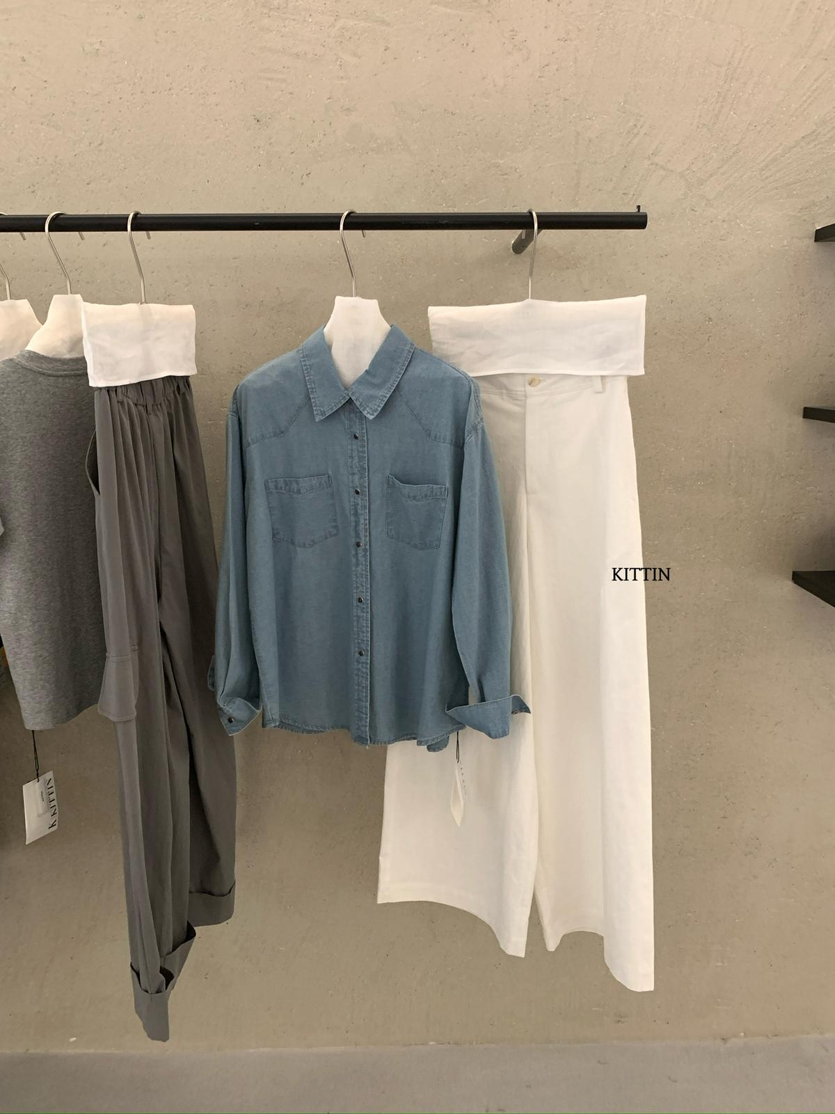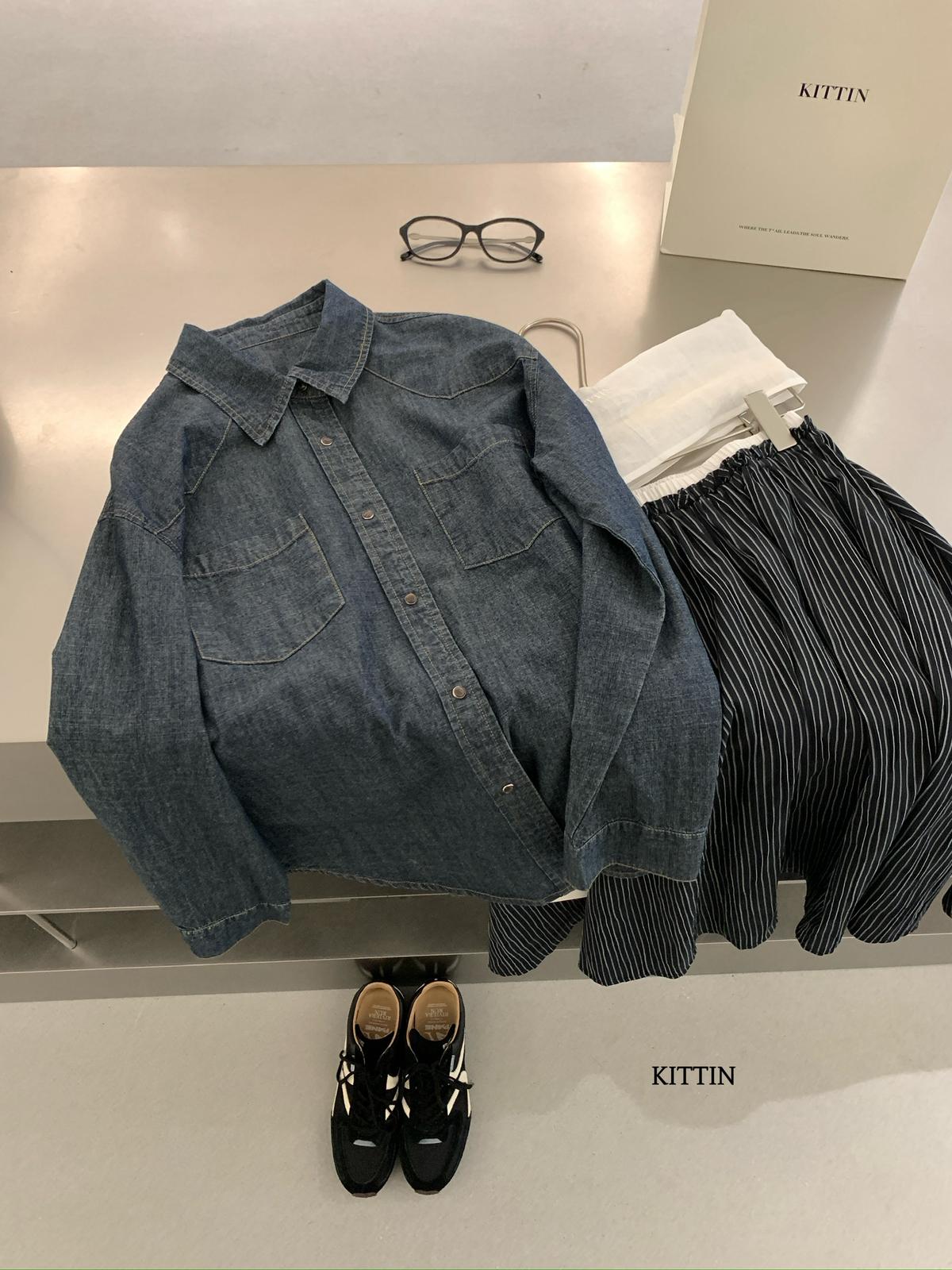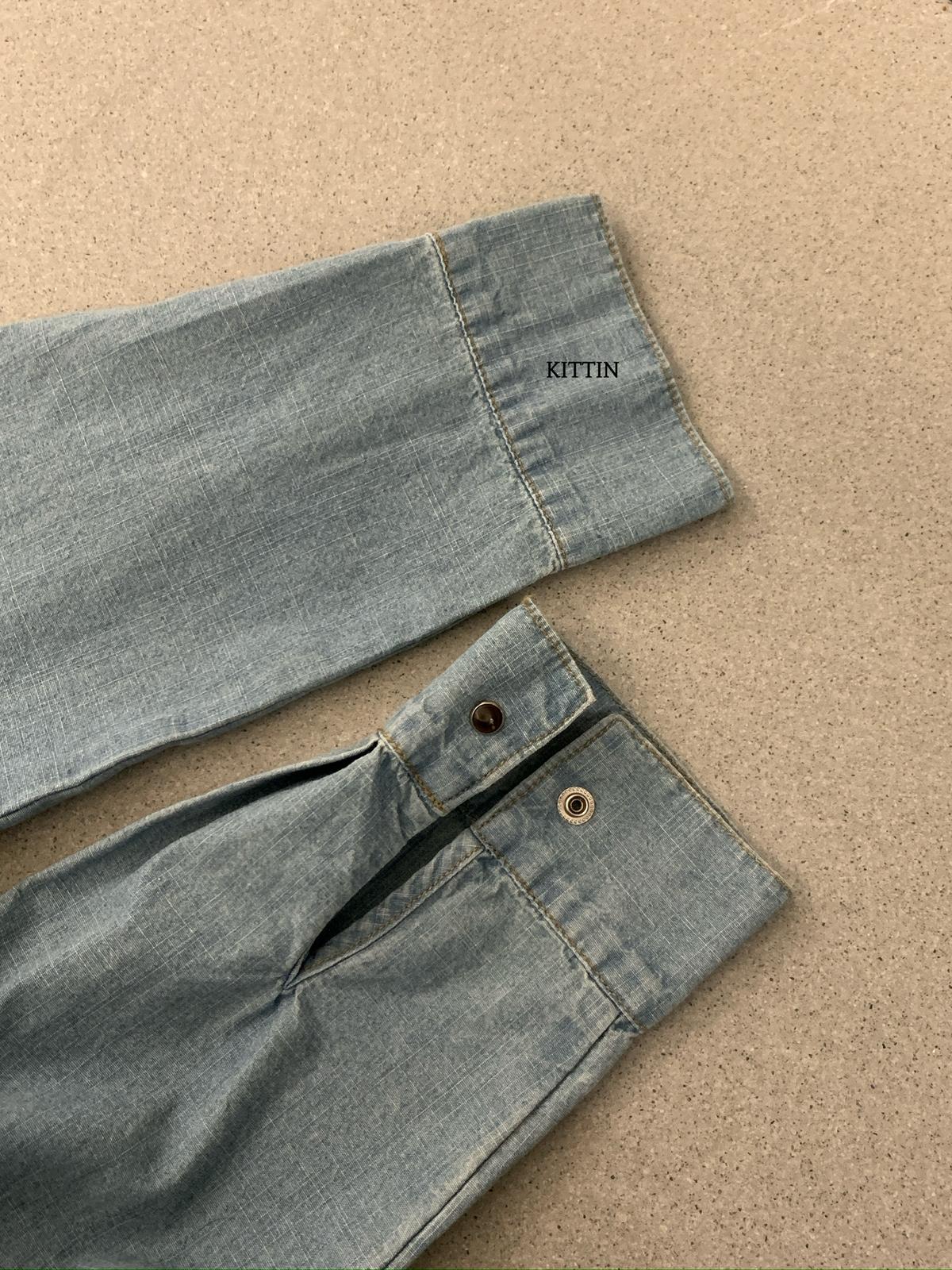 【C8682】復古洗水工裝風雙口袋牛仔襯衫