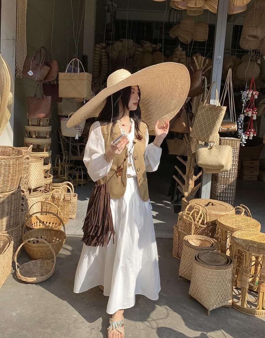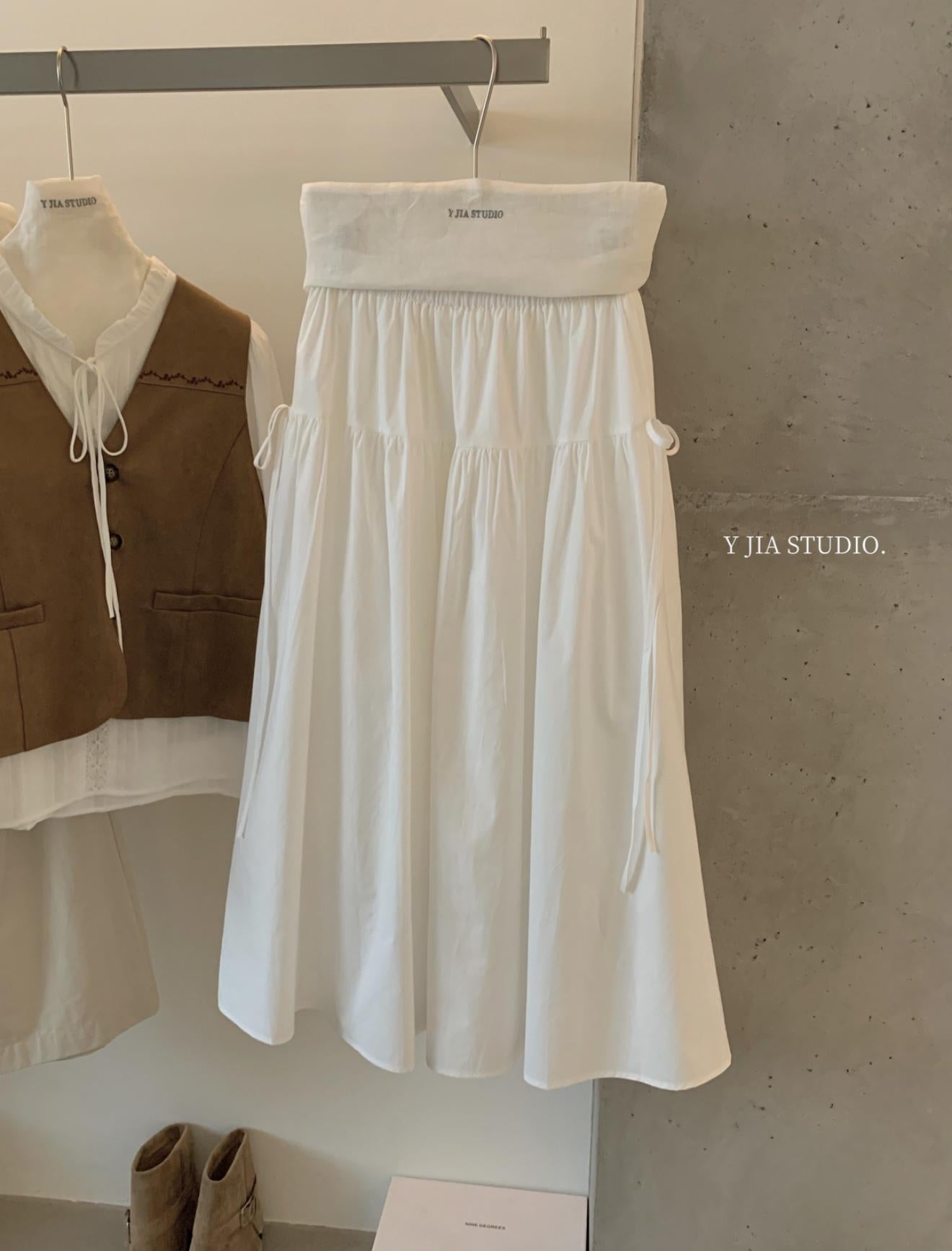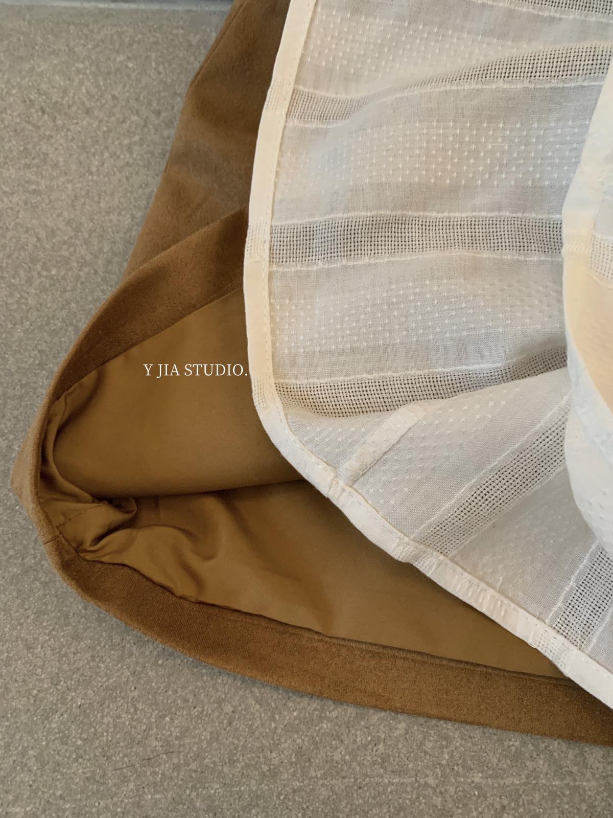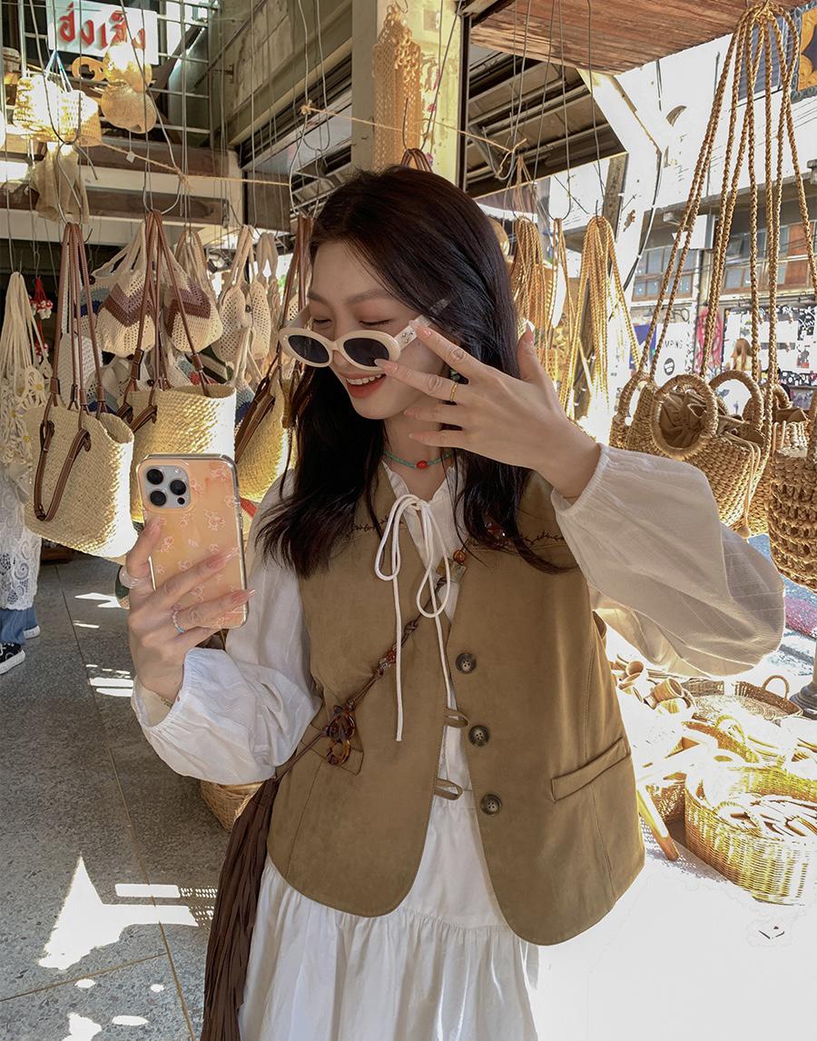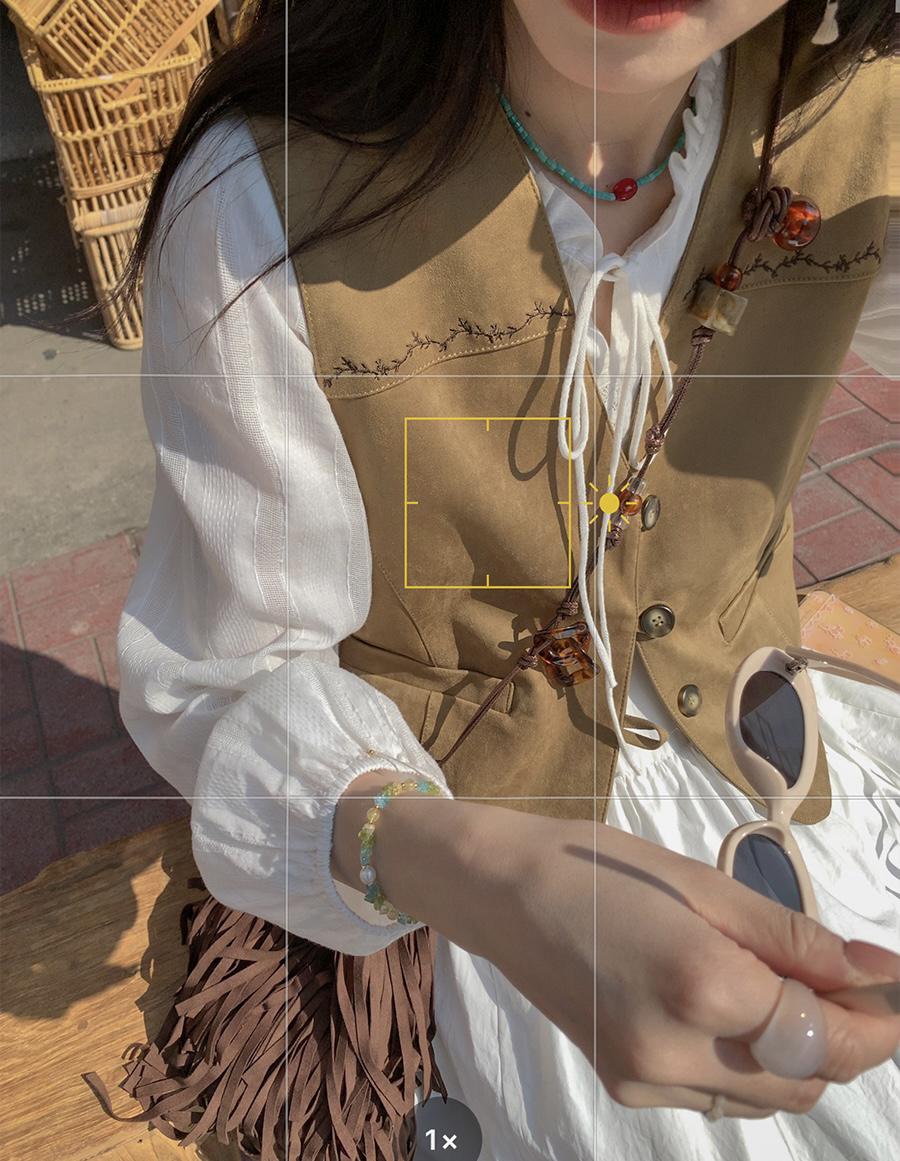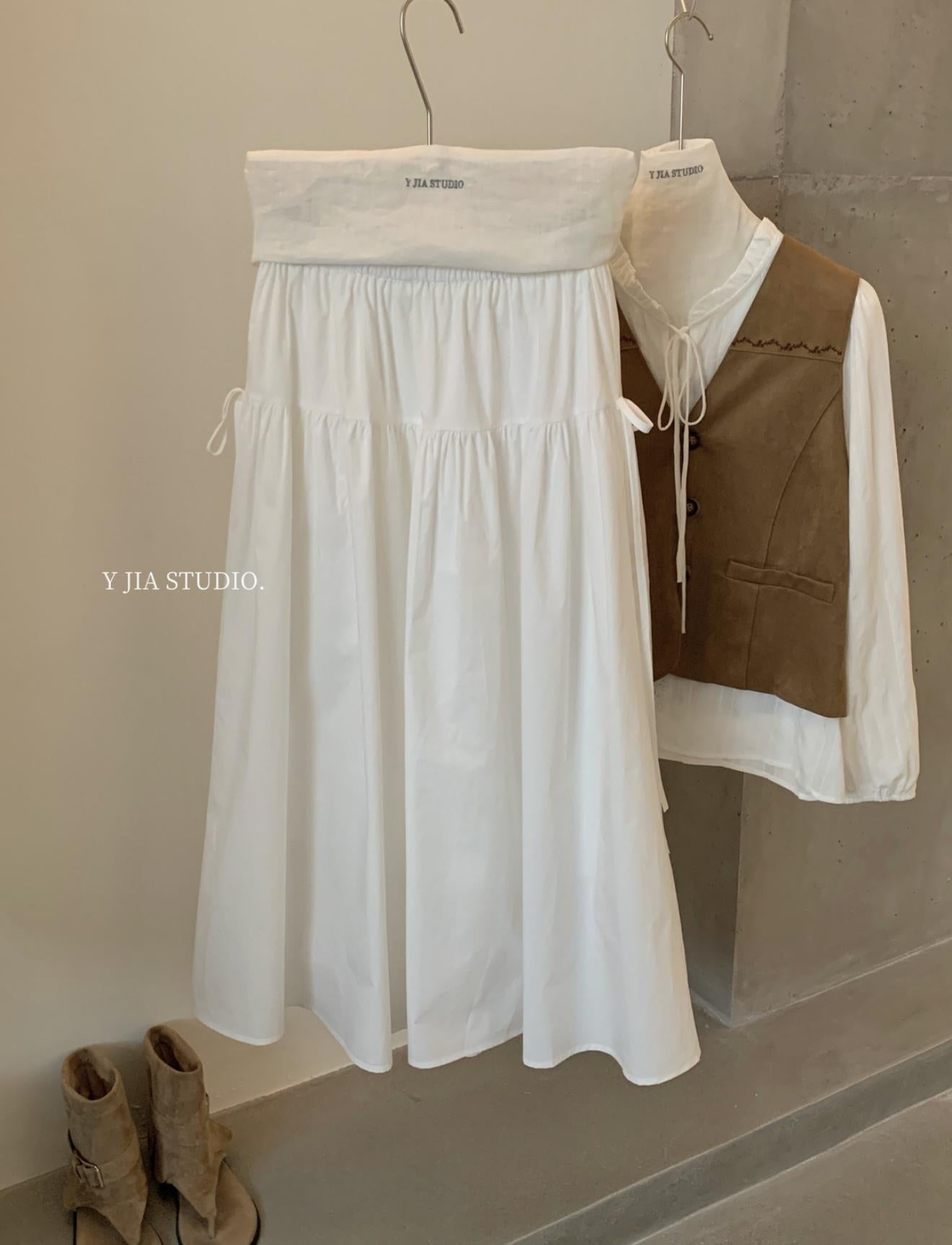 【C8684】重工麂皮絨刺繡馬甲+溫柔襯衣+半身裙3件套套裝