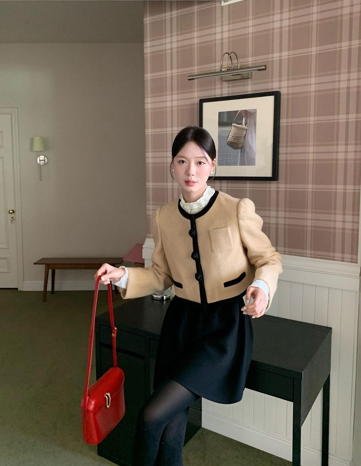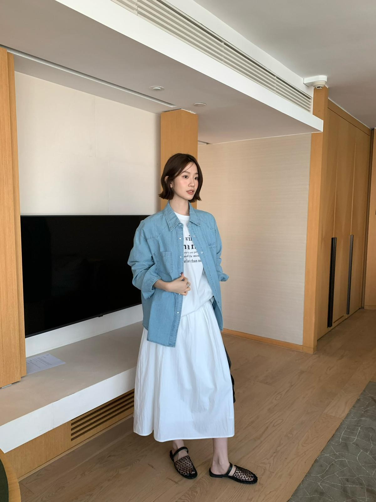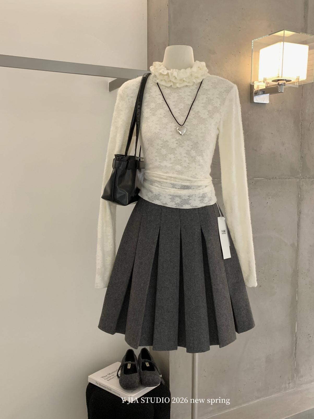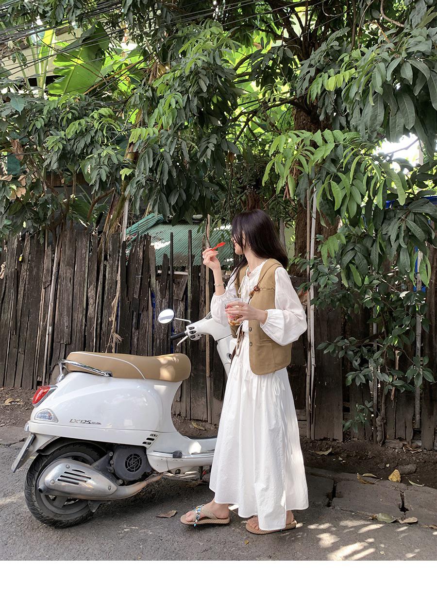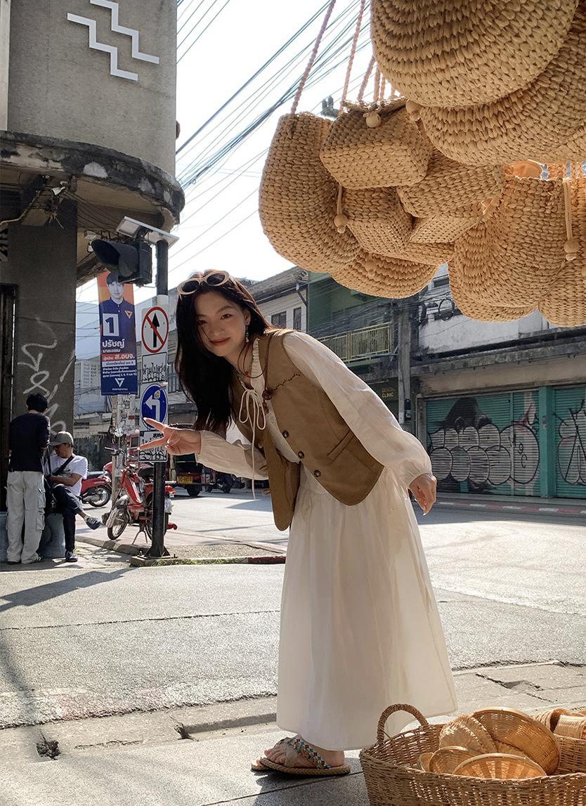 【C8684】重工麂皮絨刺繡馬甲+溫柔襯衣+半身裙3件套套裝