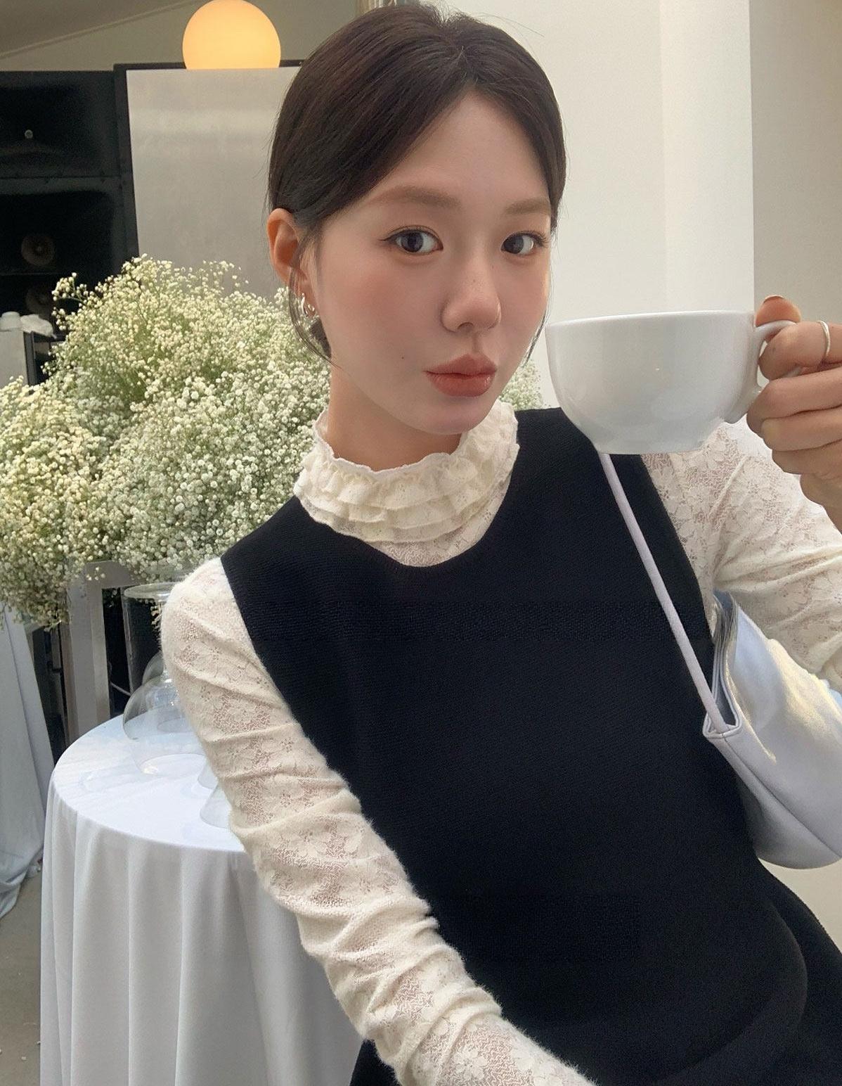 【C8692】‘悠閒春日’百搭不膩!強烈推!春季純欲休閒蕾絲花邊彈力針織背心(含6%羊毛)