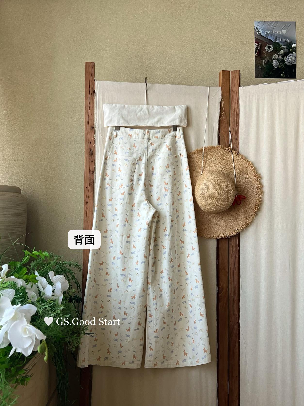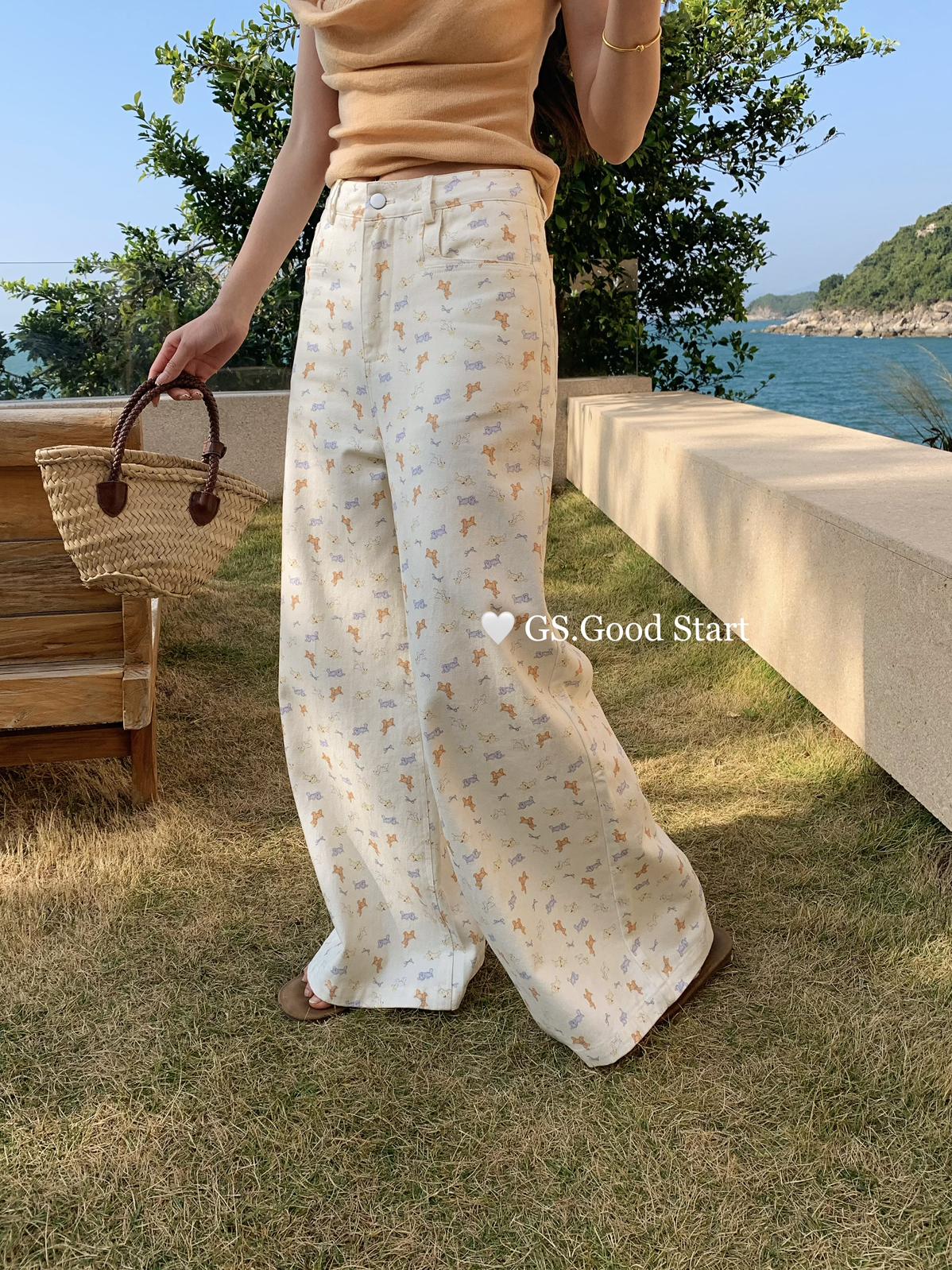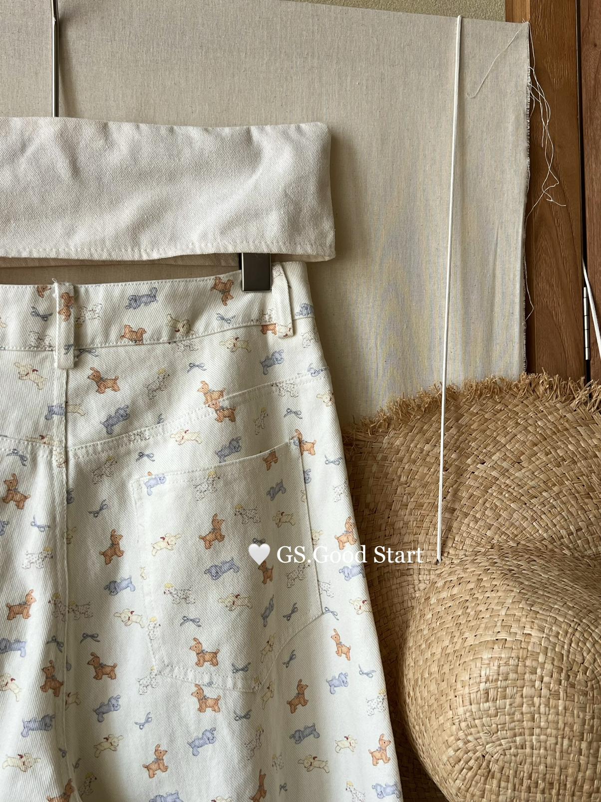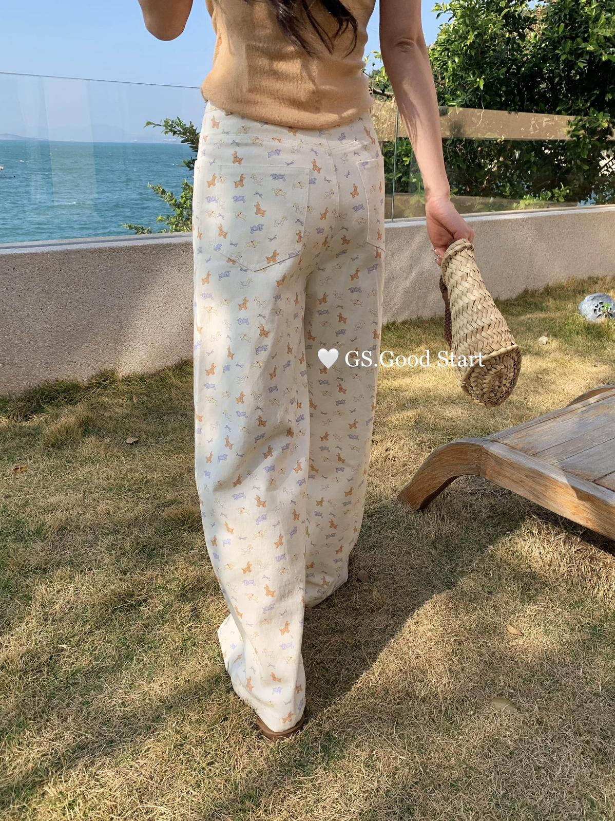 【C8690】‘小狗軟糖’隨意搭*都氛圍拉滿了~春季韓系甜美清新滿印寬鬆休閒褲
