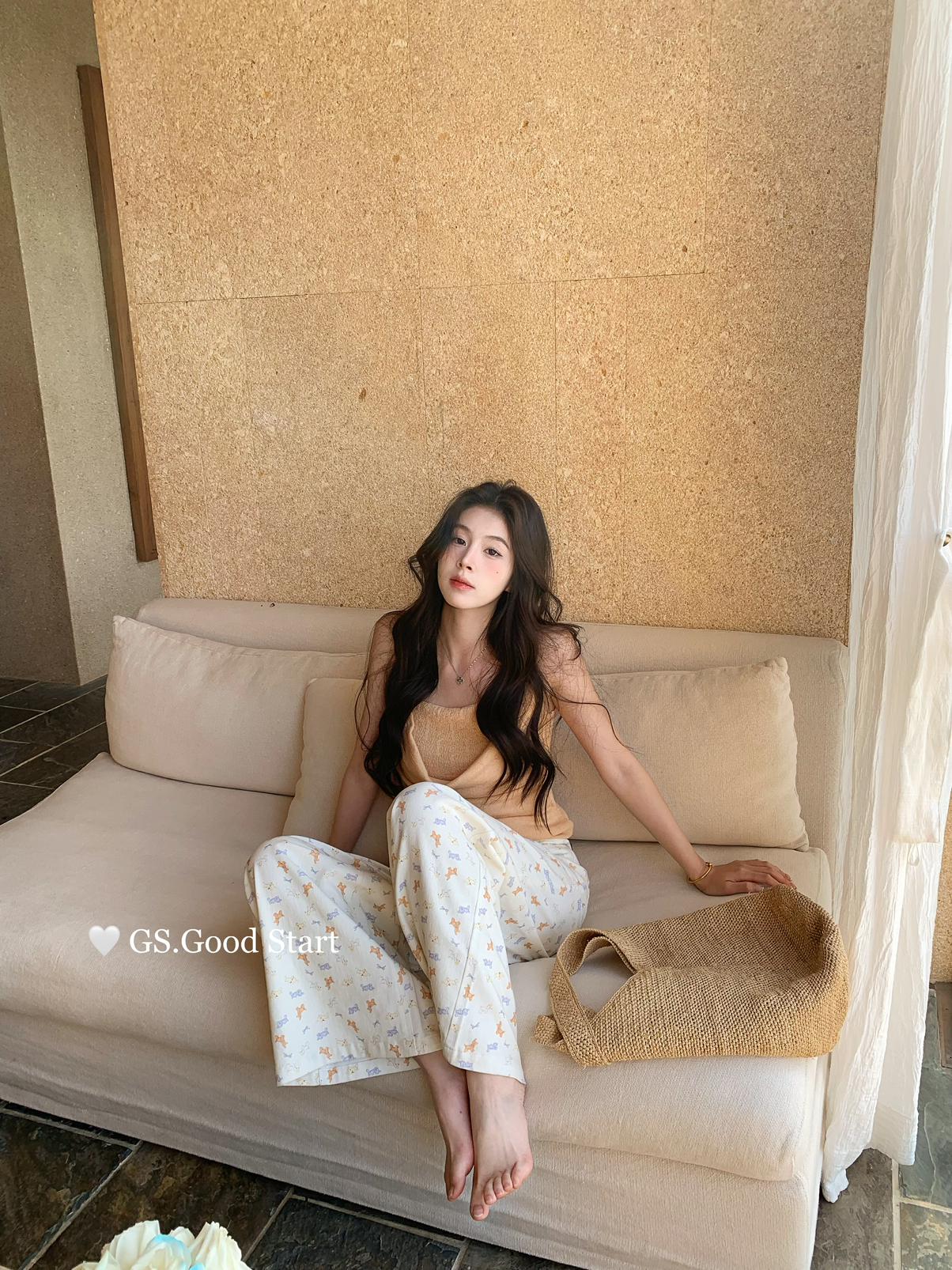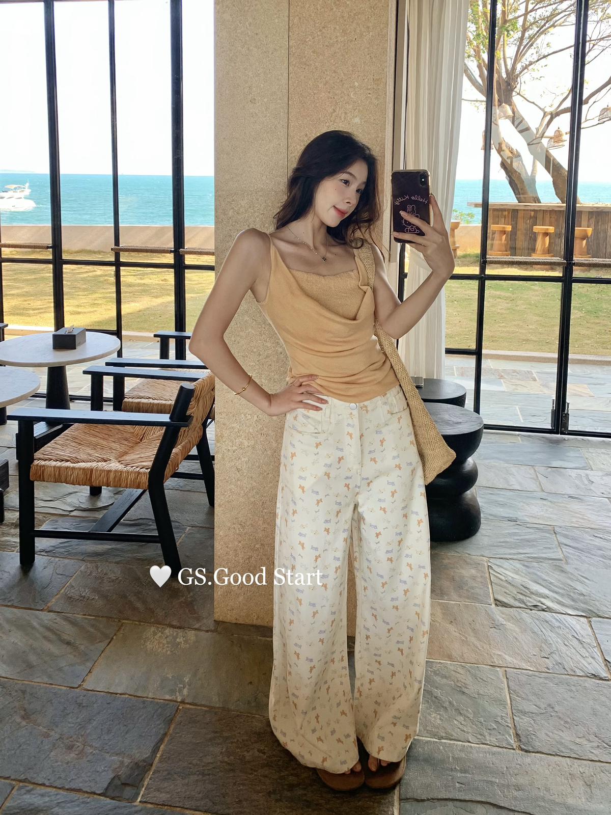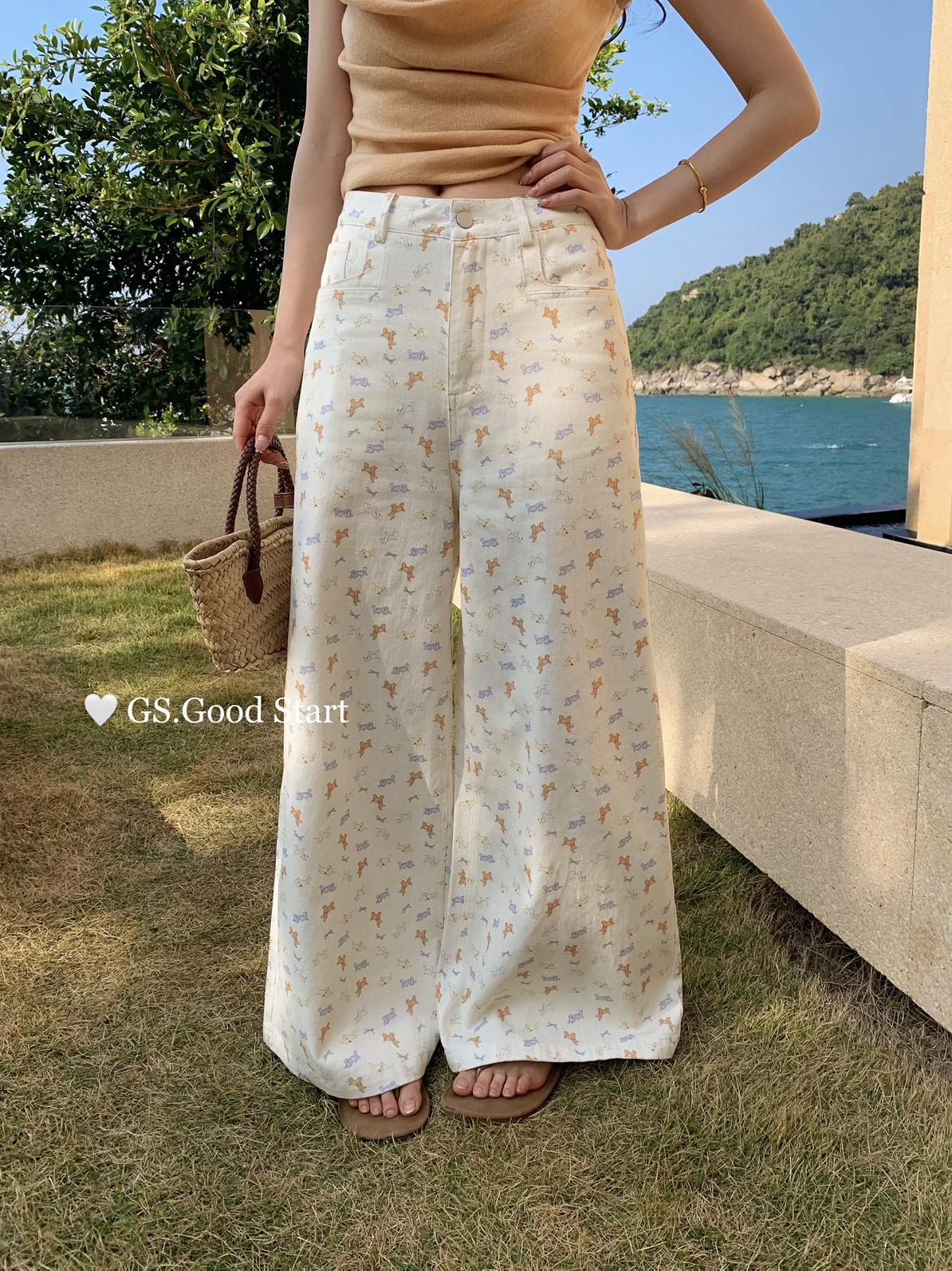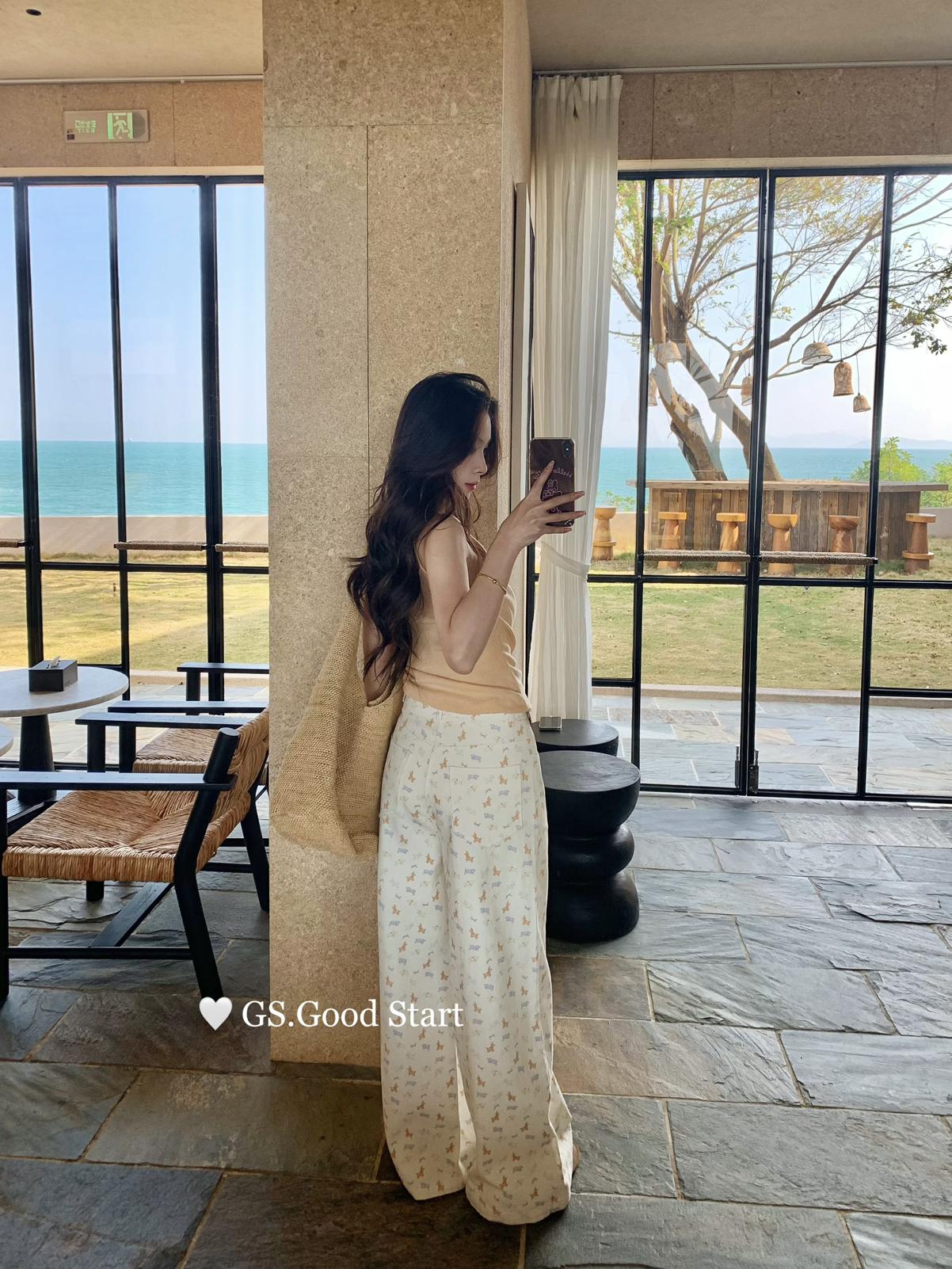 【C8690】‘小狗軟糖’隨意搭*都氛圍拉滿了~春季韓系甜美清新滿印寬鬆休閒褲