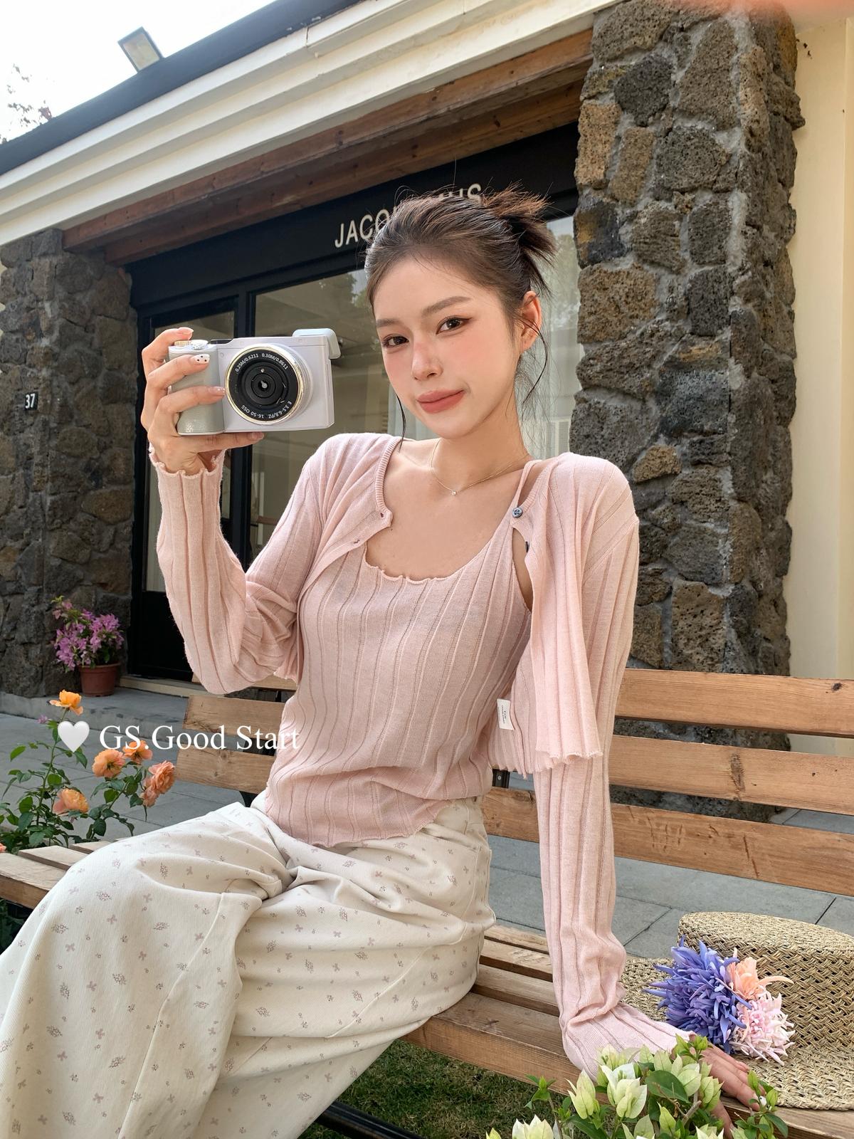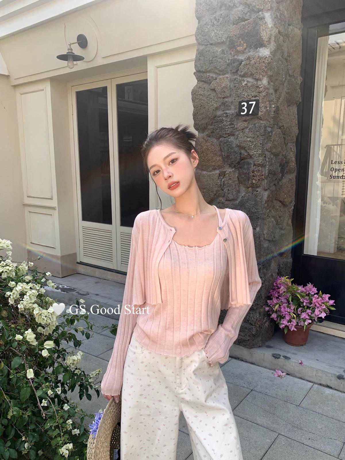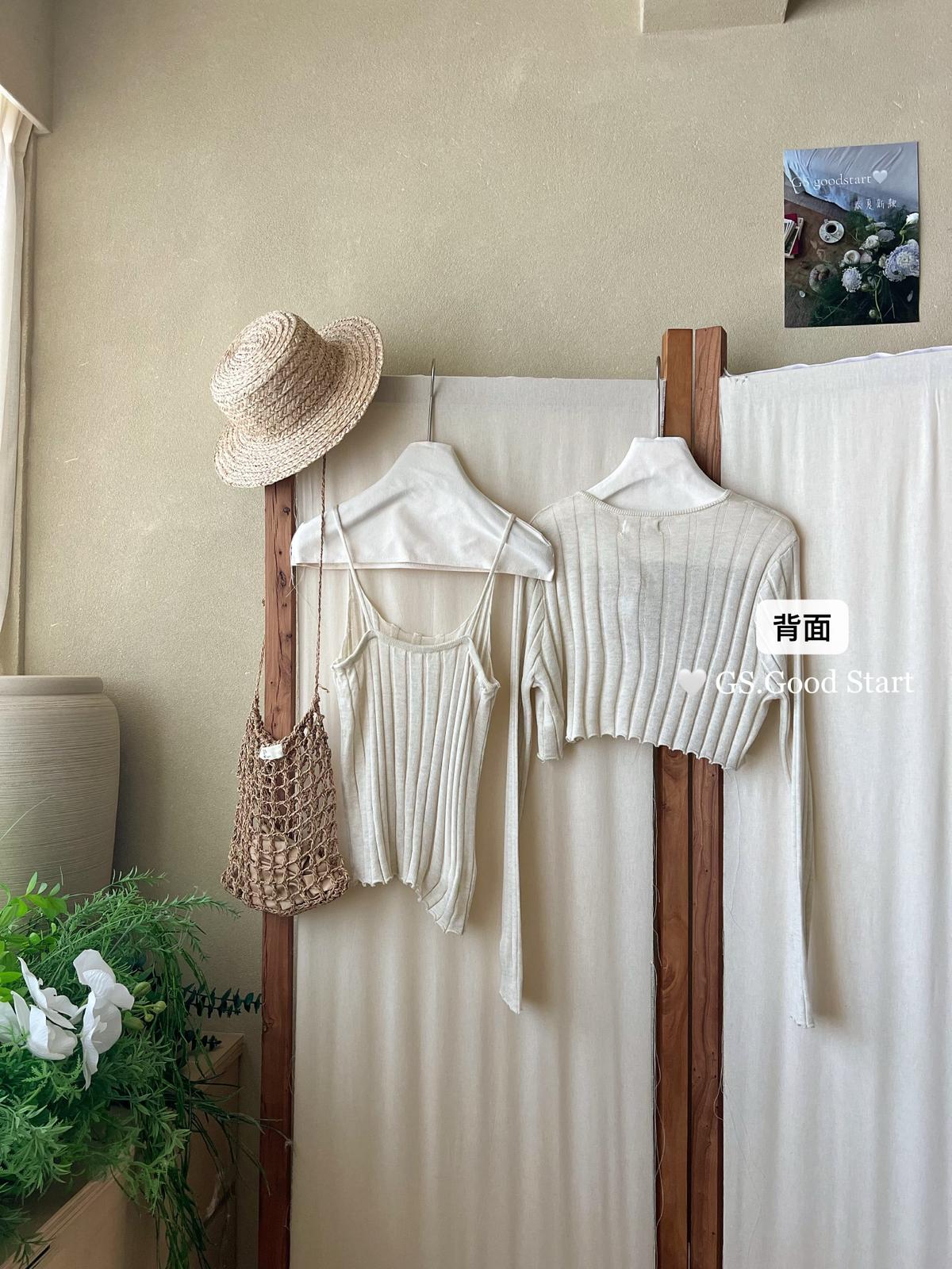 【C8694】‘色系敲米’誰穿誰都誇!不挑人!韓系休閒純欲吊帶+針織開衫套裝(含10%羊毛)