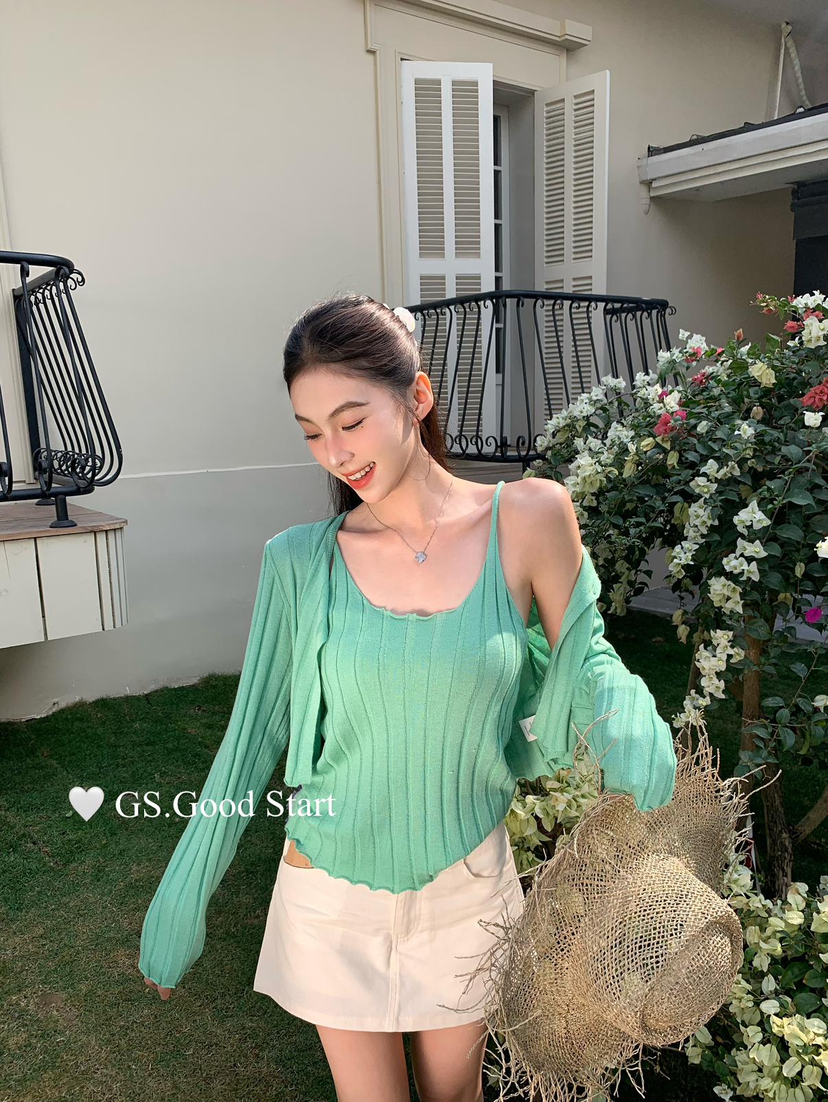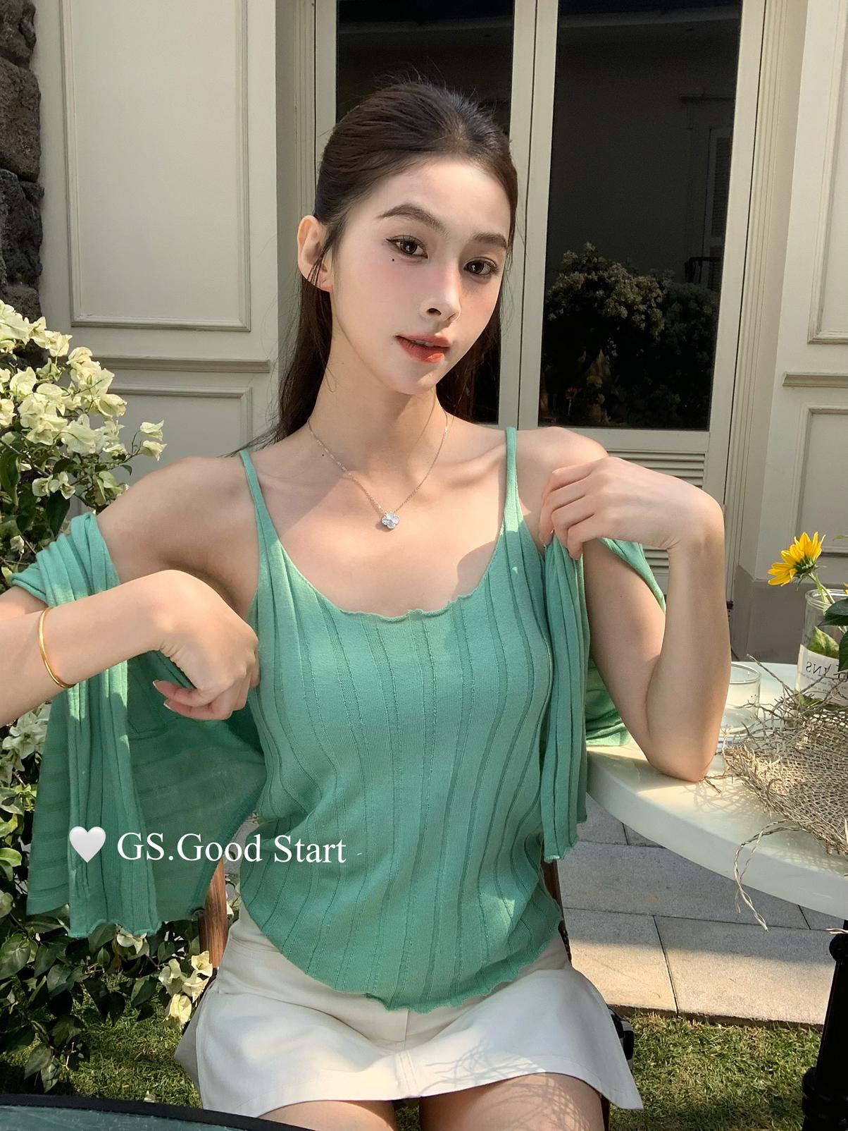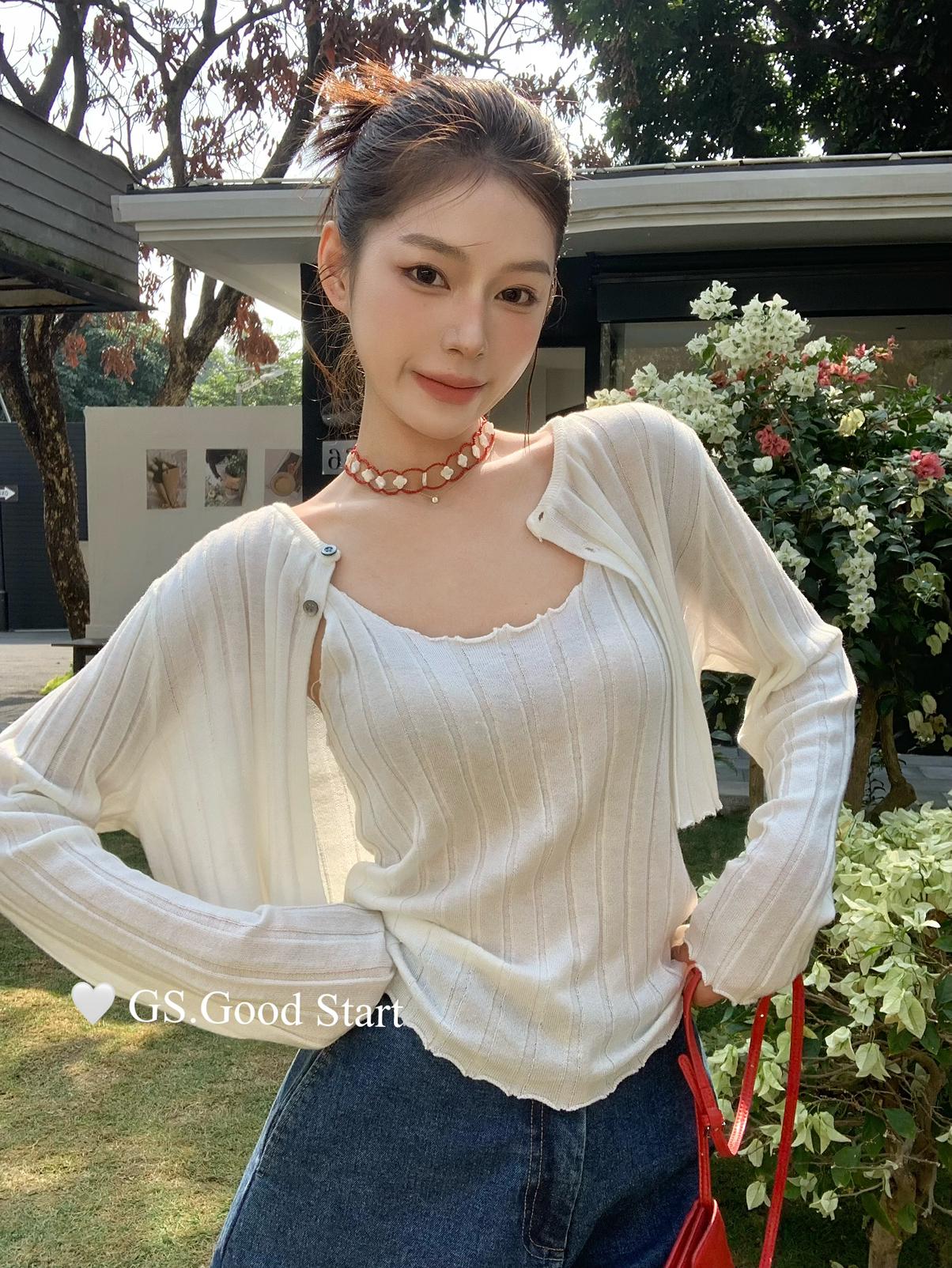 【C8694】‘色系敲米’誰穿誰都誇!不挑人!韓系休閒純欲吊帶+針織開衫套裝(含10%羊毛)