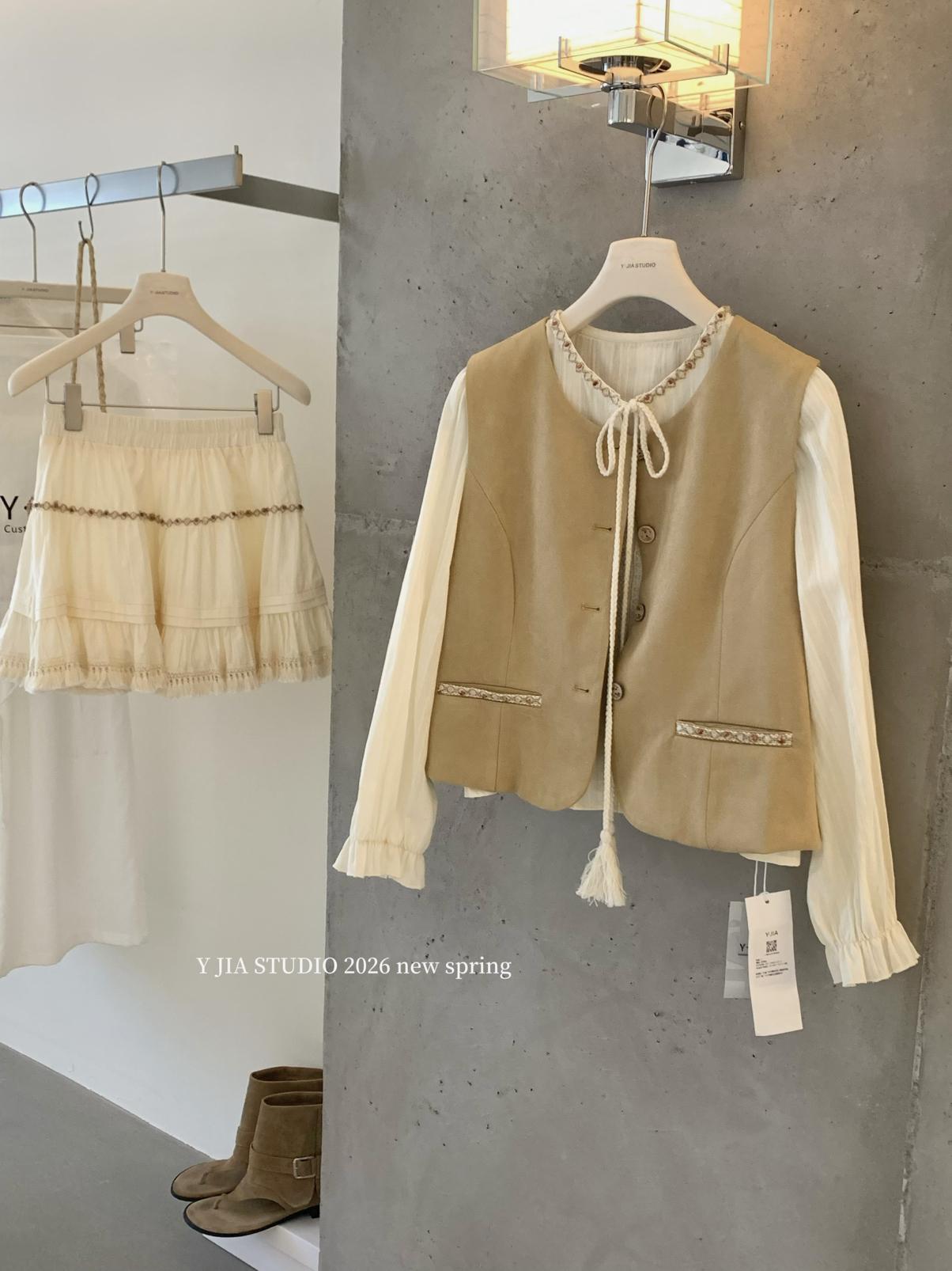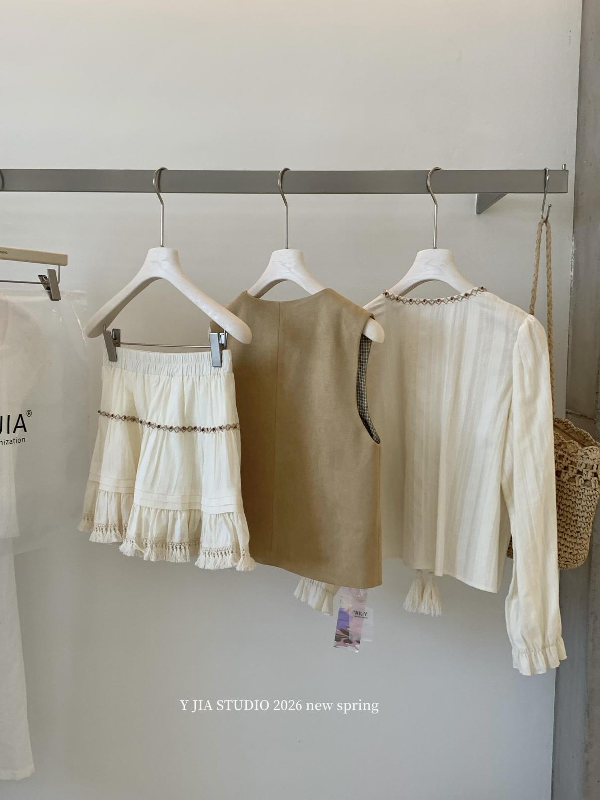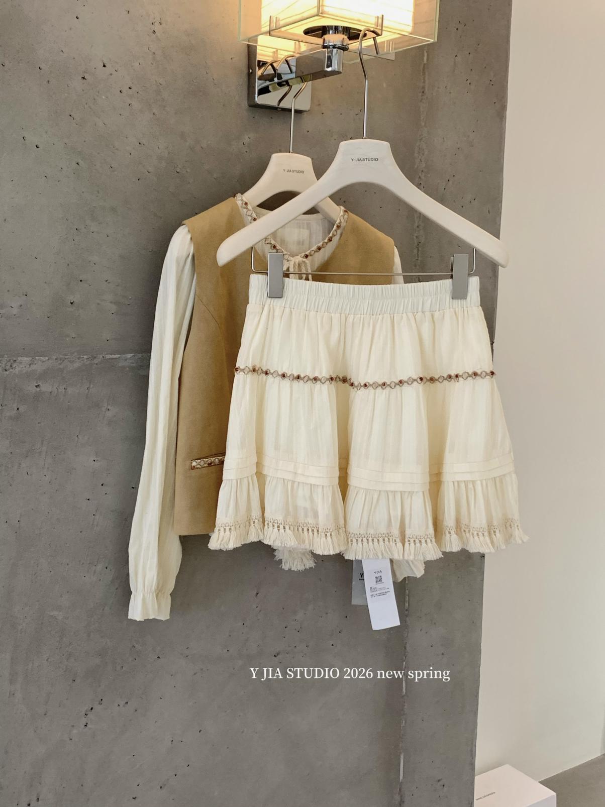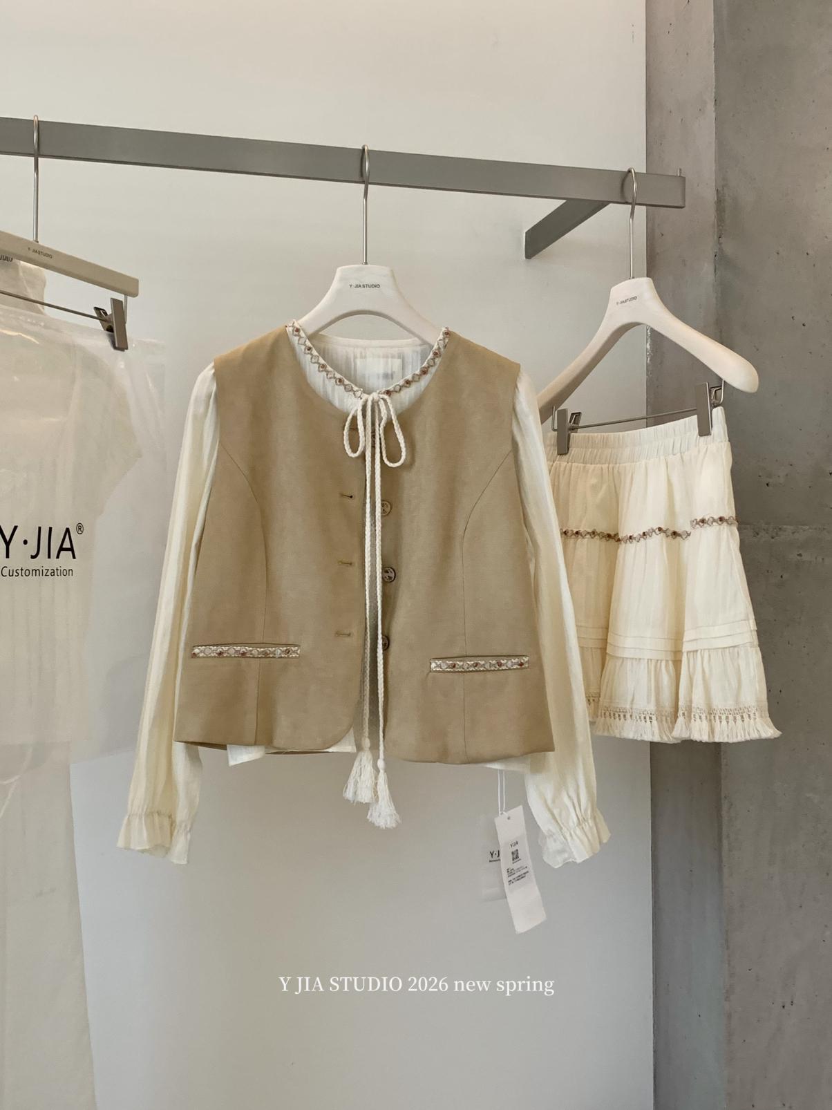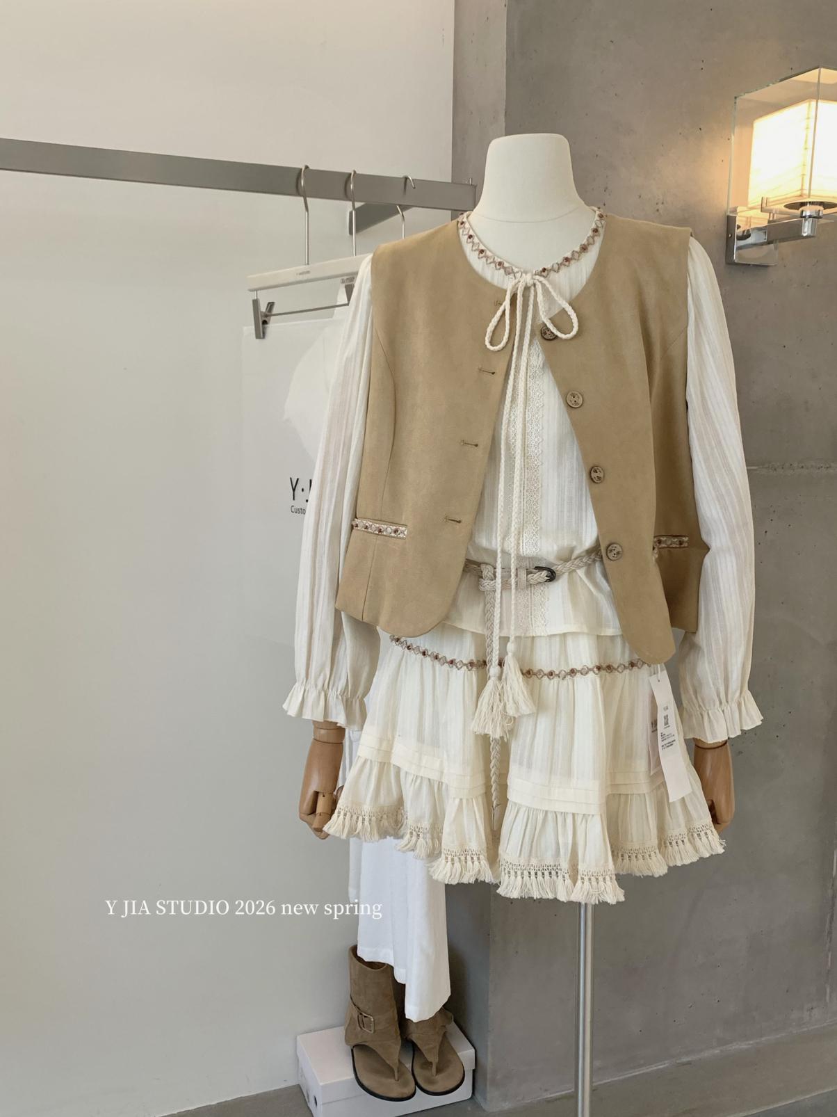 【C8721】百搭馬甲+重工珠片上衣+流蘇半裙3件套套裝(不含腰帶)