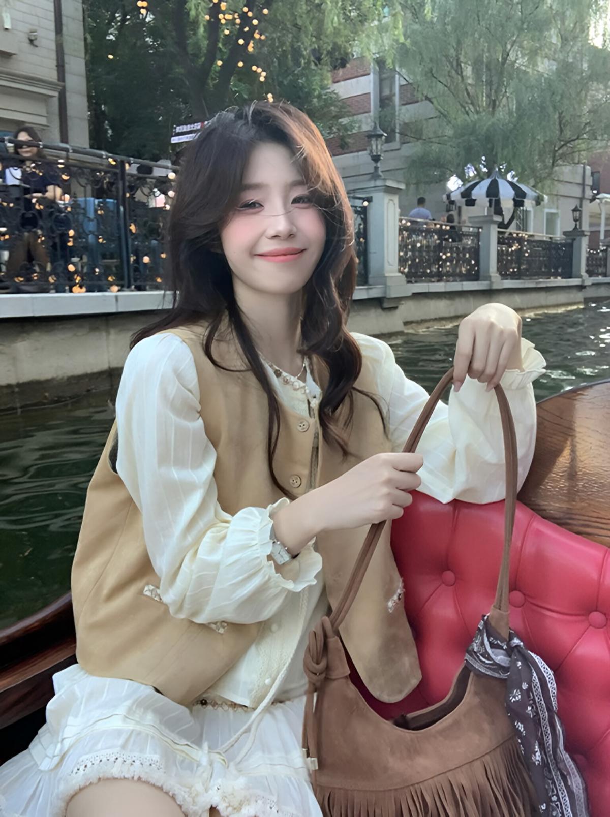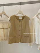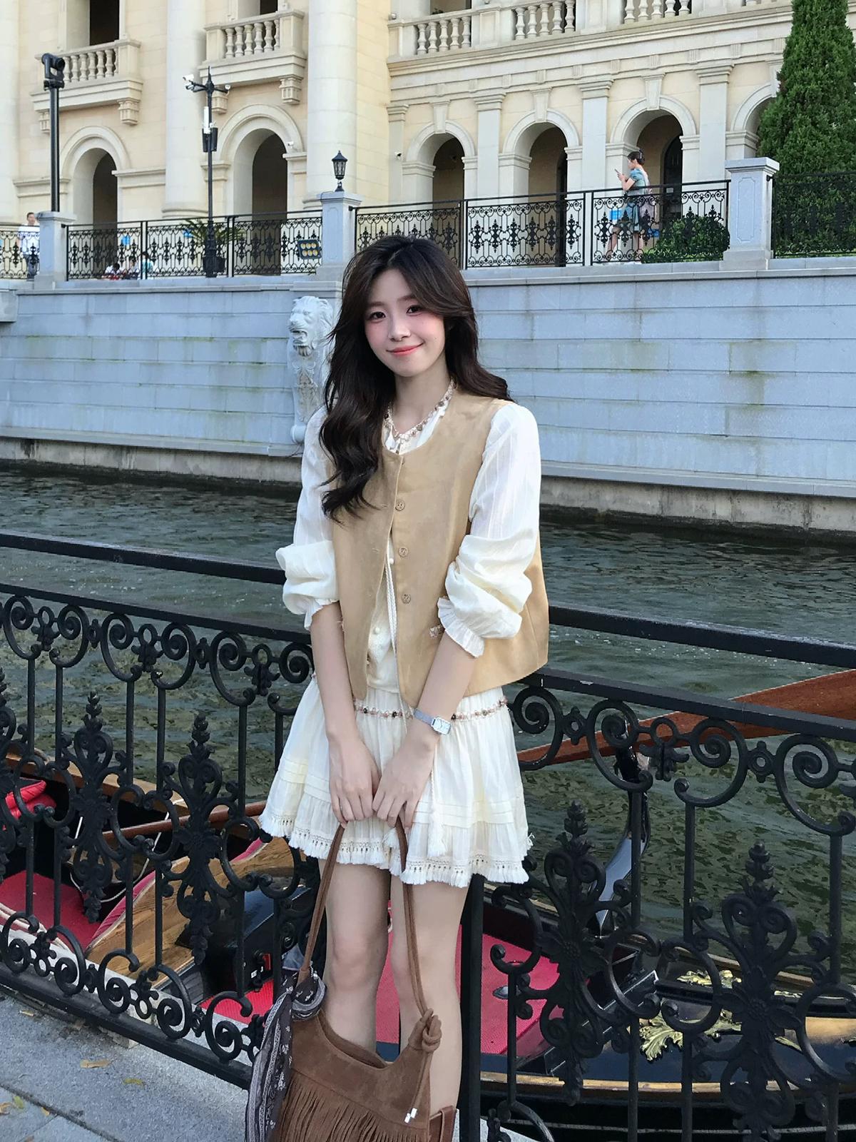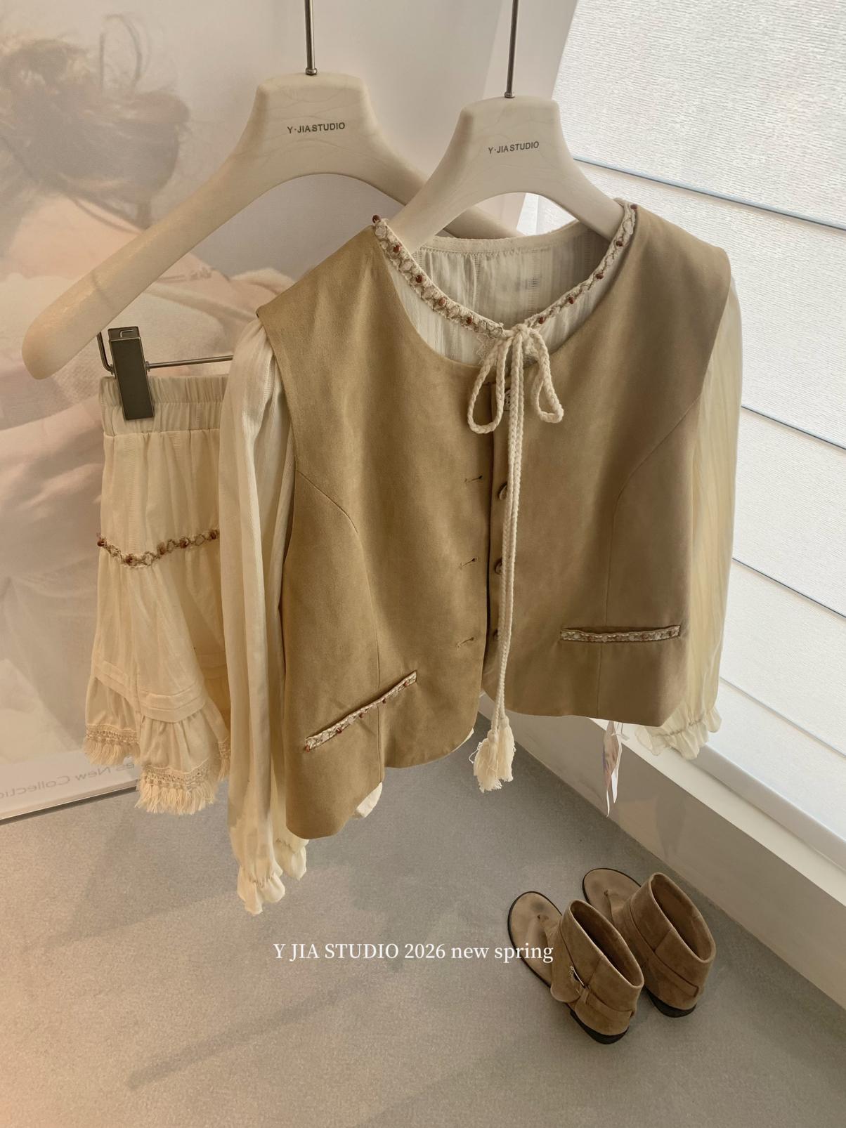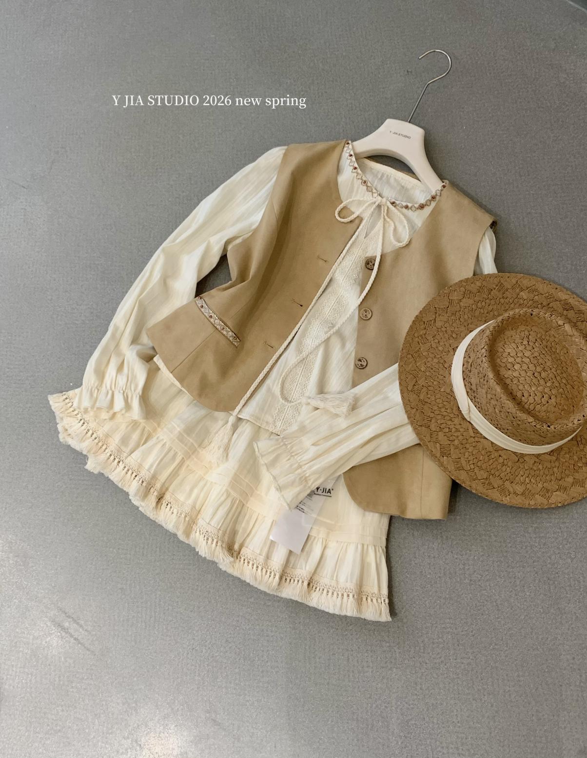 【C8721】百搭馬甲+重工珠片上衣+流蘇半裙3件套套裝(不含腰帶)