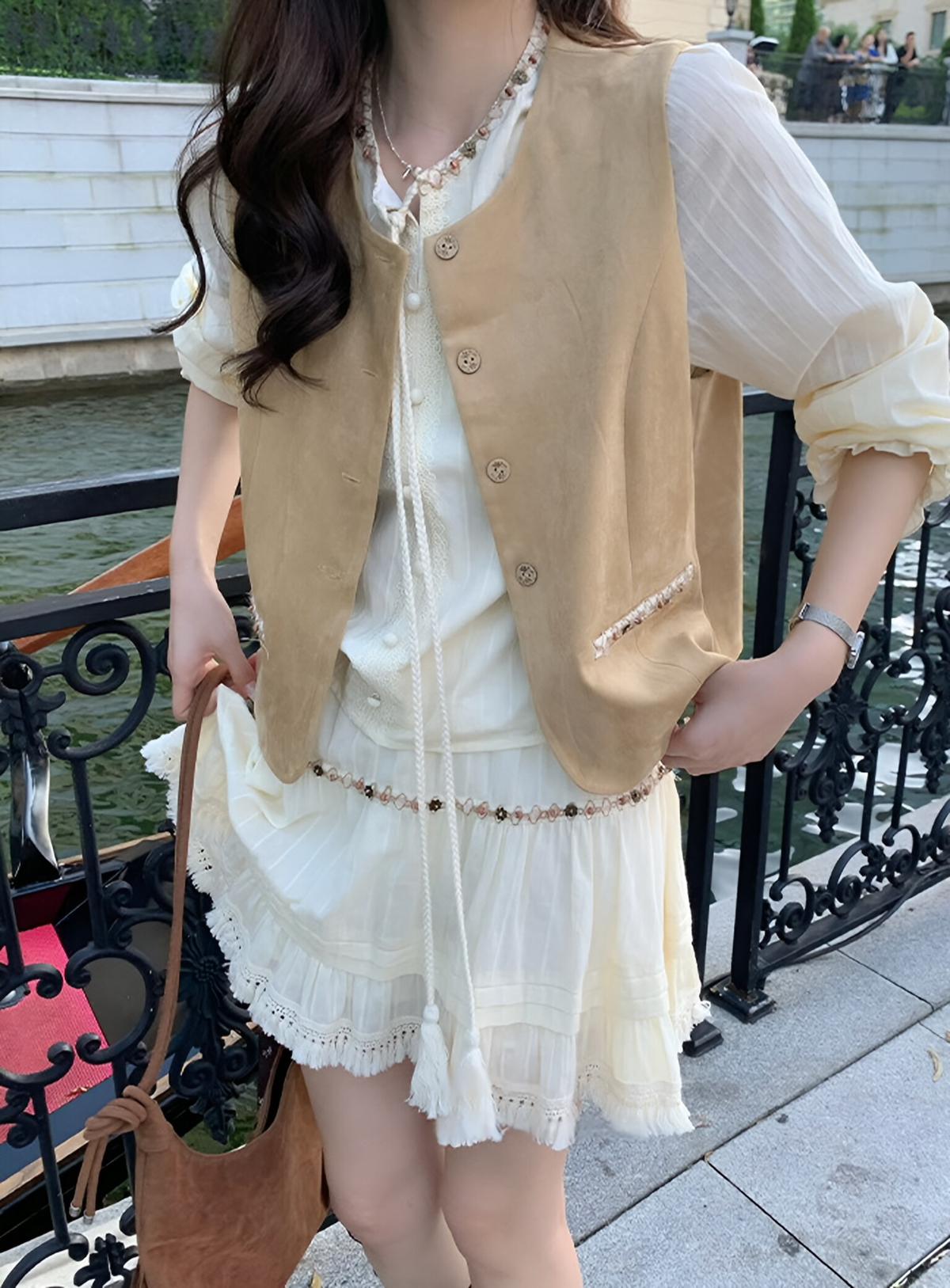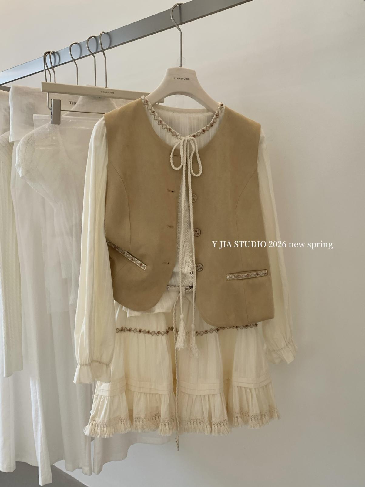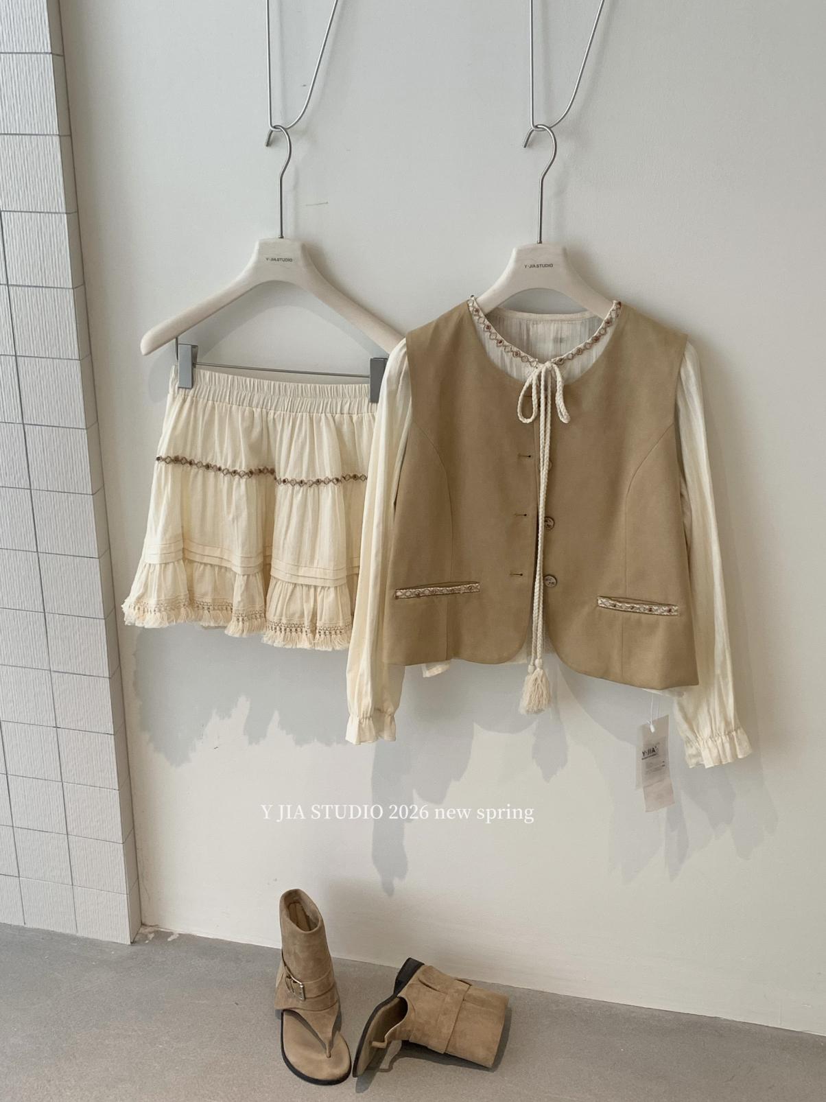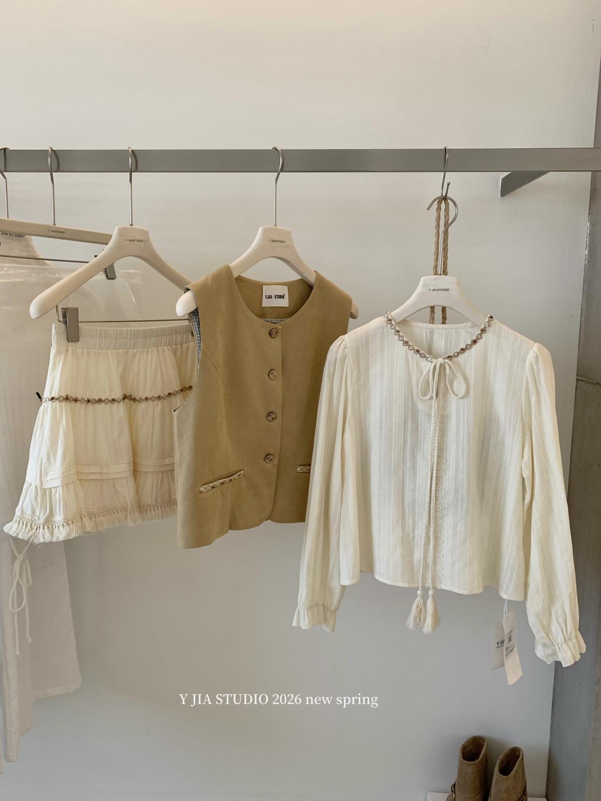 【C8721】百搭馬甲+重工珠片上衣+流蘇半裙3件套套裝(不含腰帶)