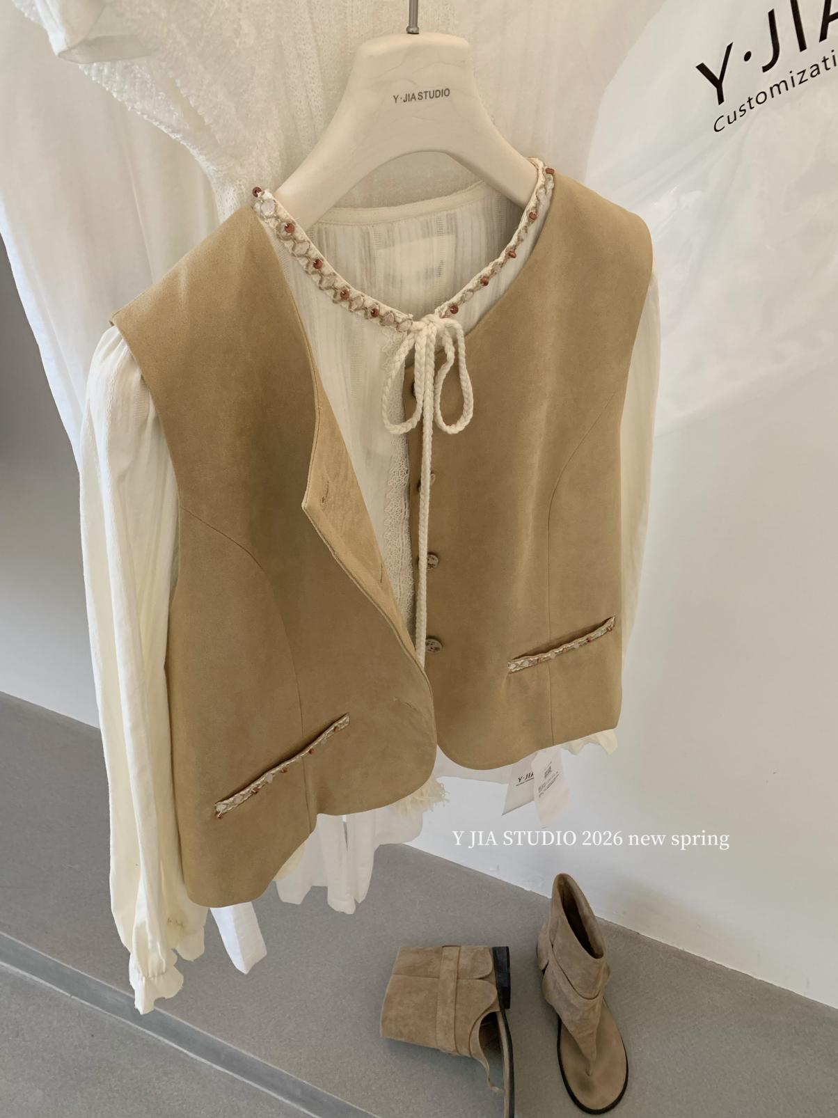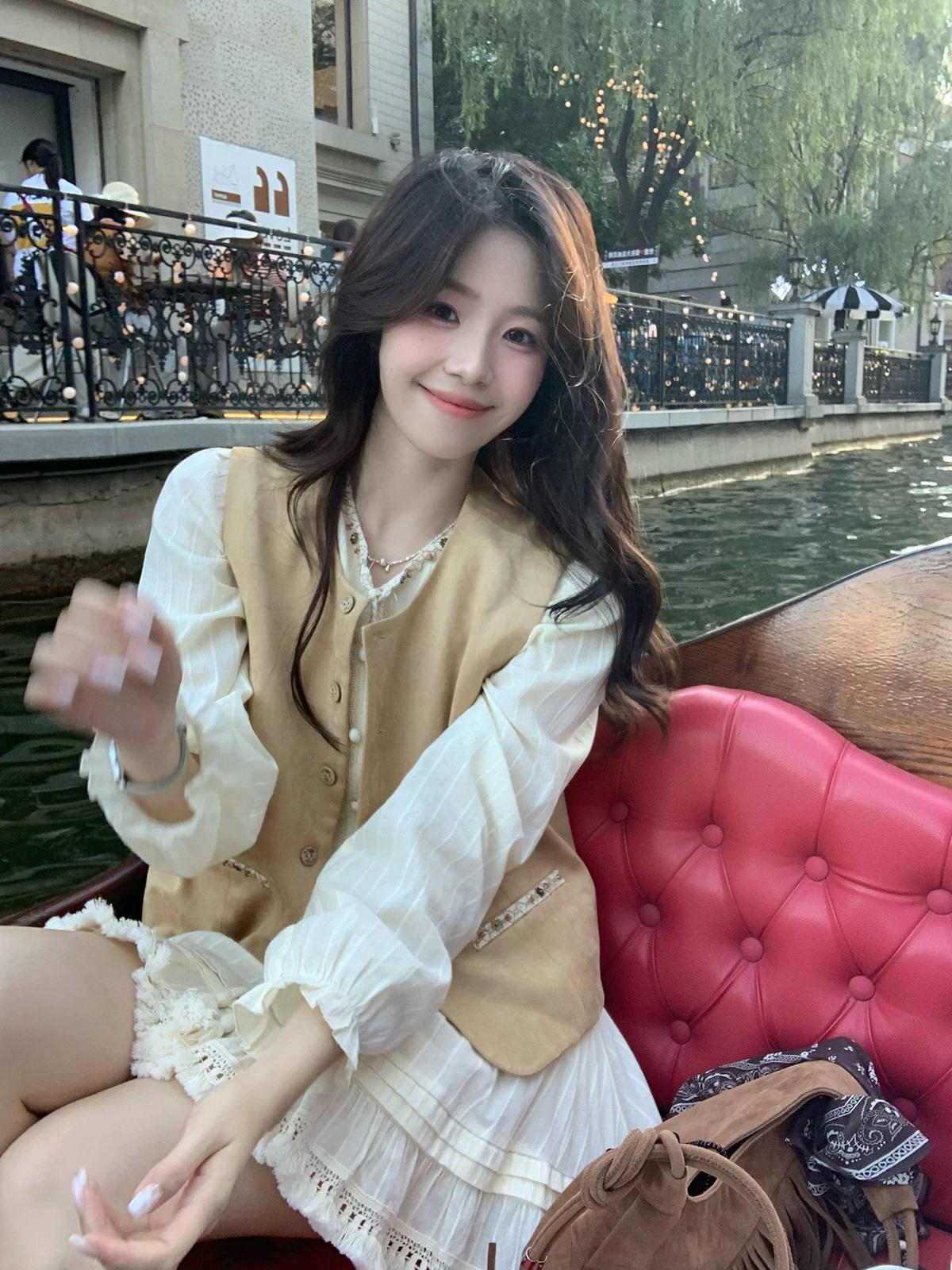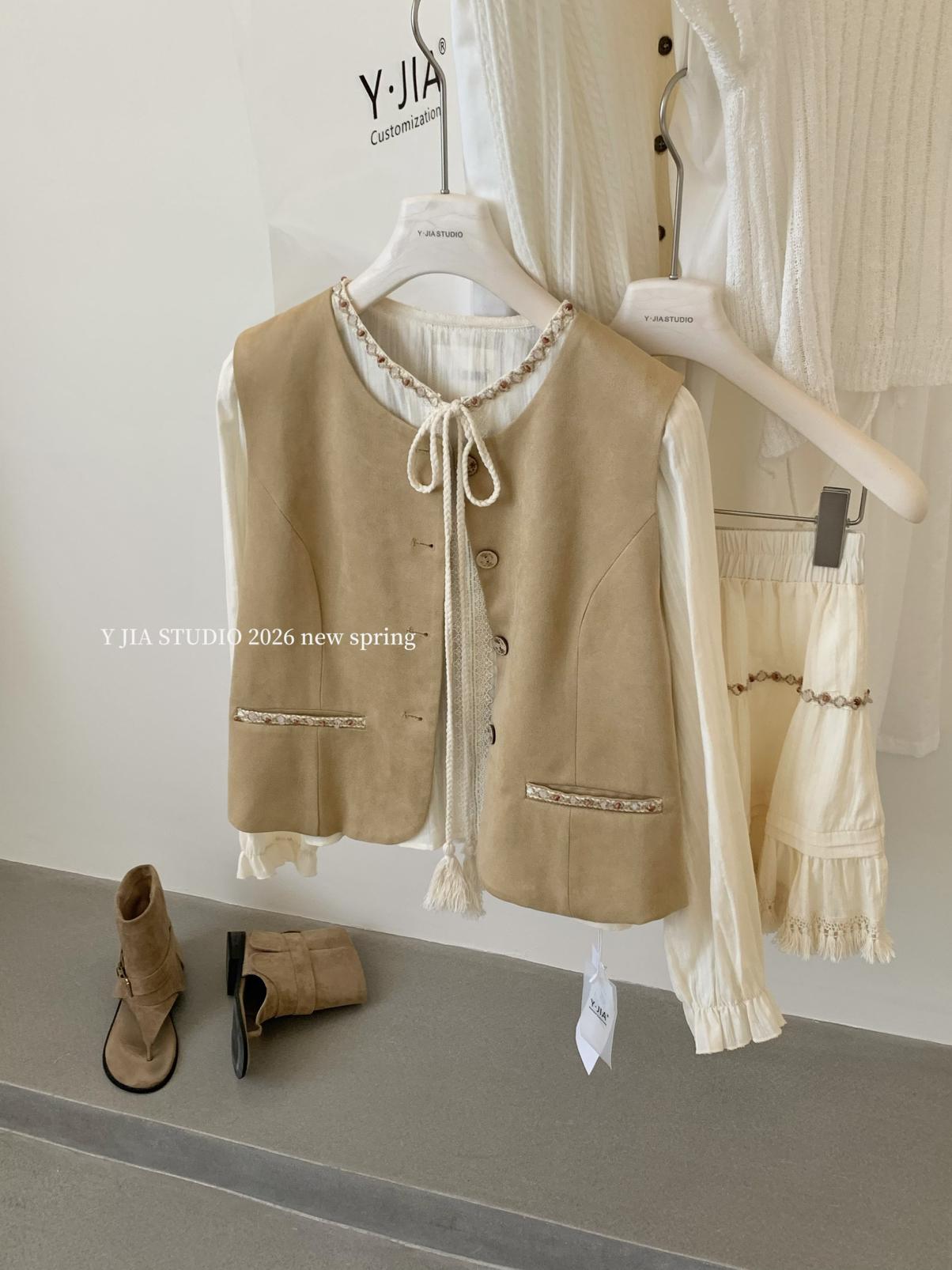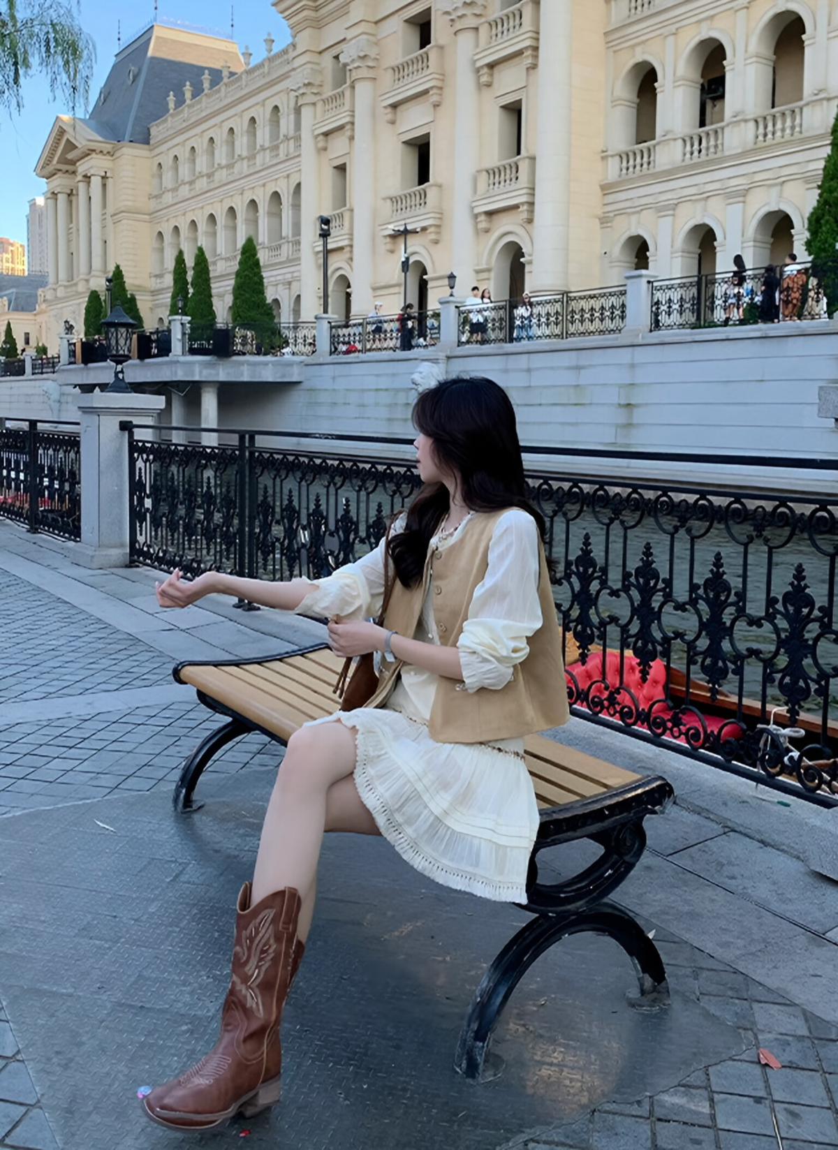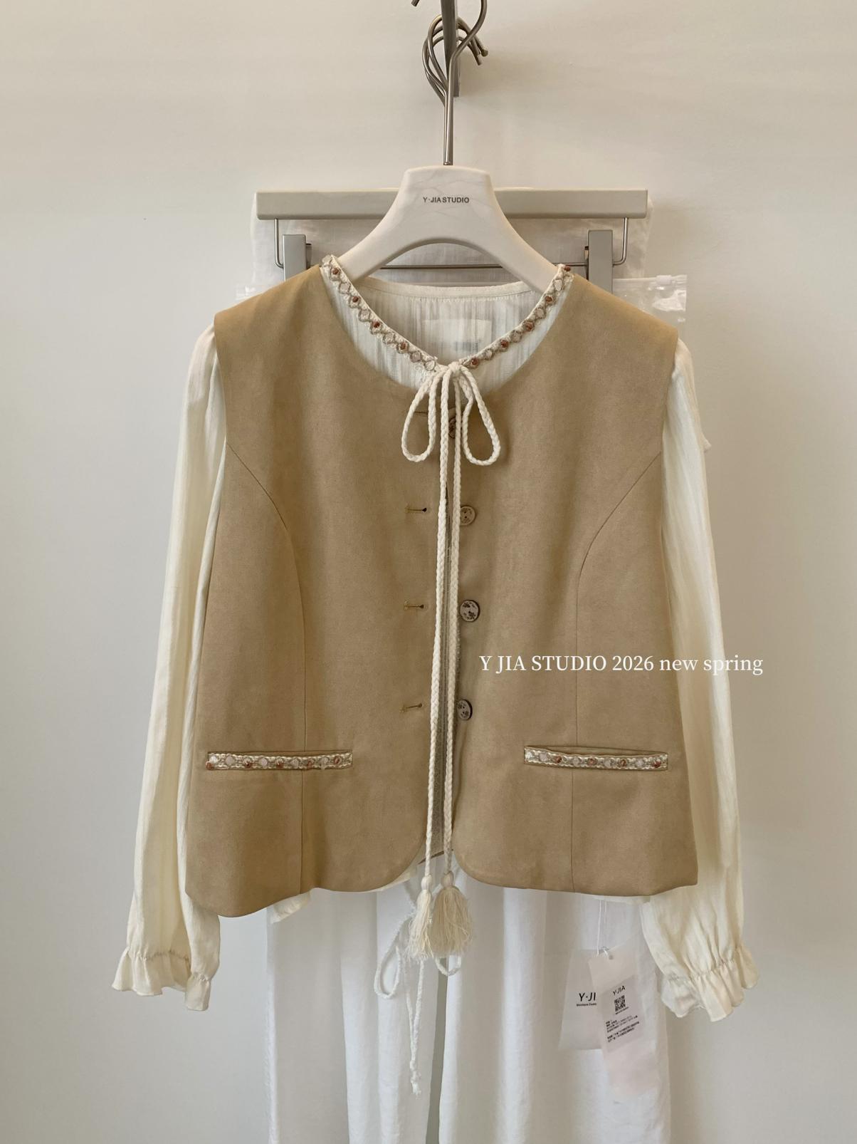 【C8721】百搭馬甲+重工珠片上衣+流蘇半裙3件套套裝(不含腰帶)