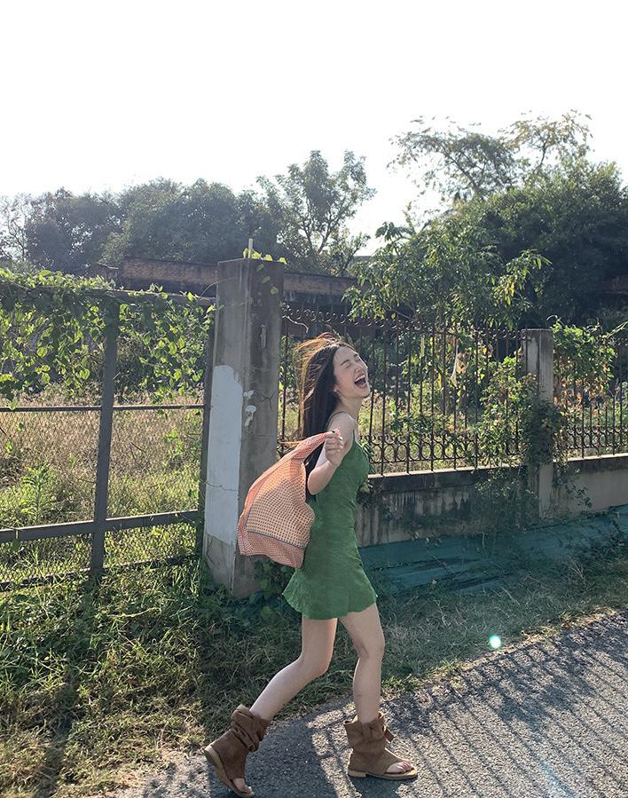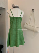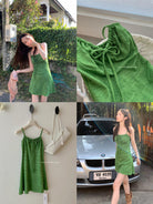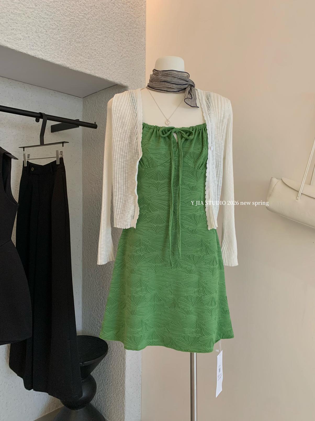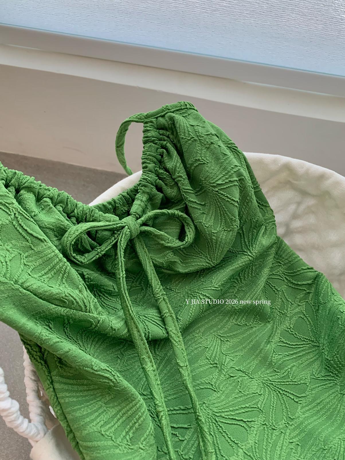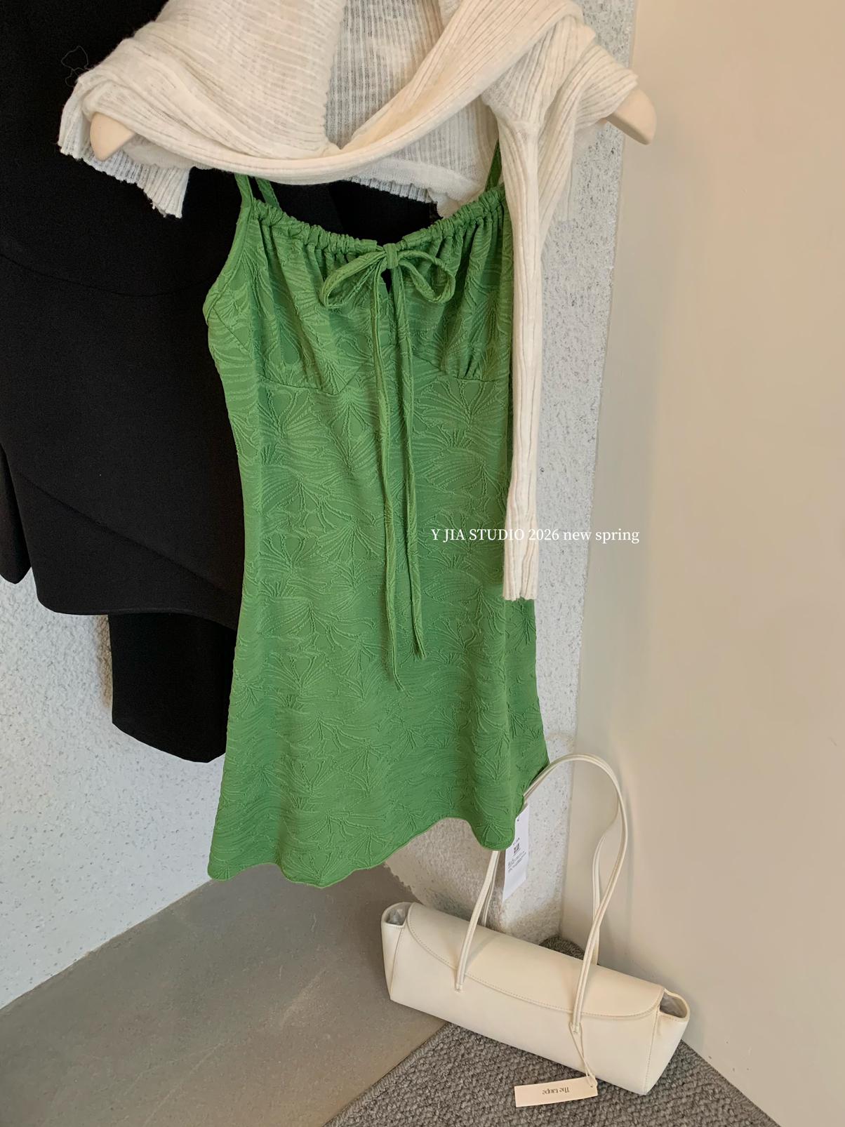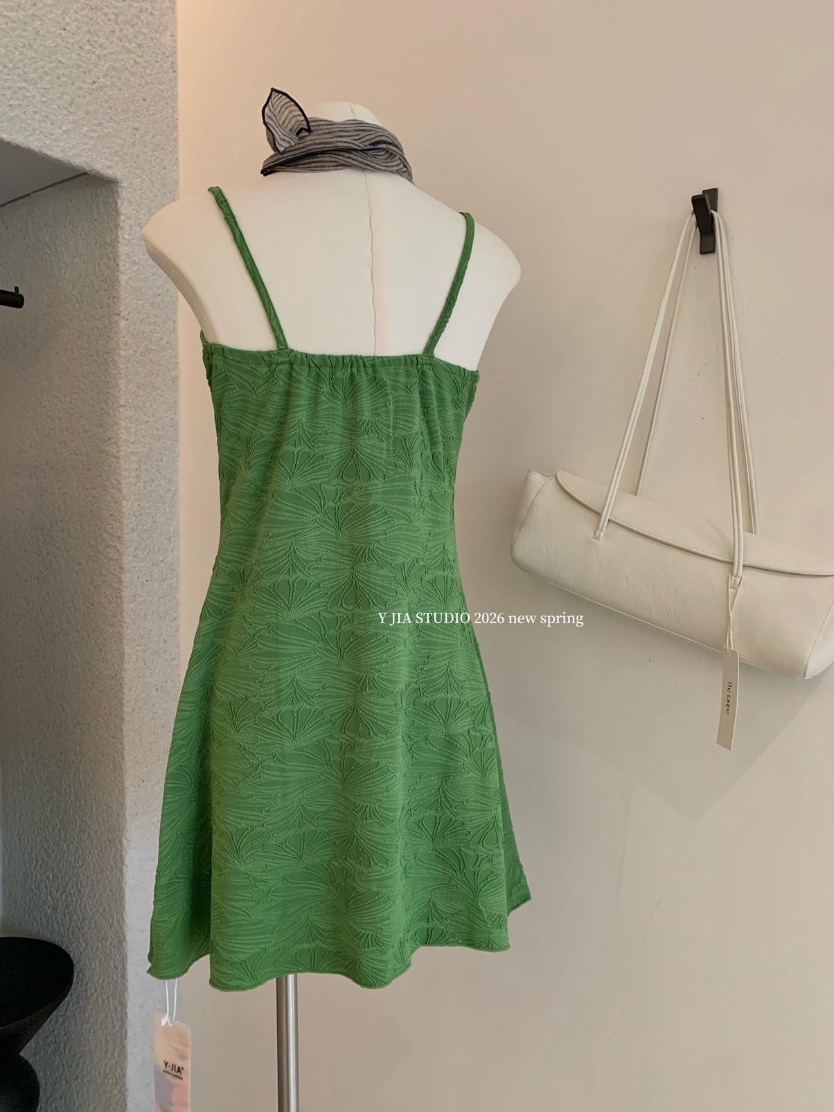 3. 【C8835】度假風抽繩繫帶方領提花吊帶連衣裙