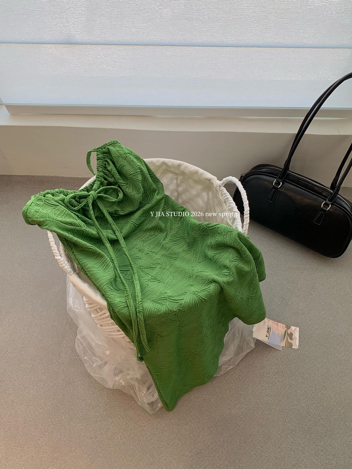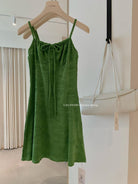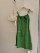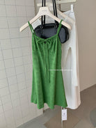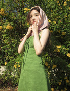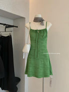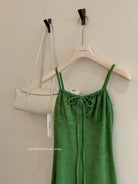 【C8835】度假風抽繩繫帶方領提花吊帶連衣裙