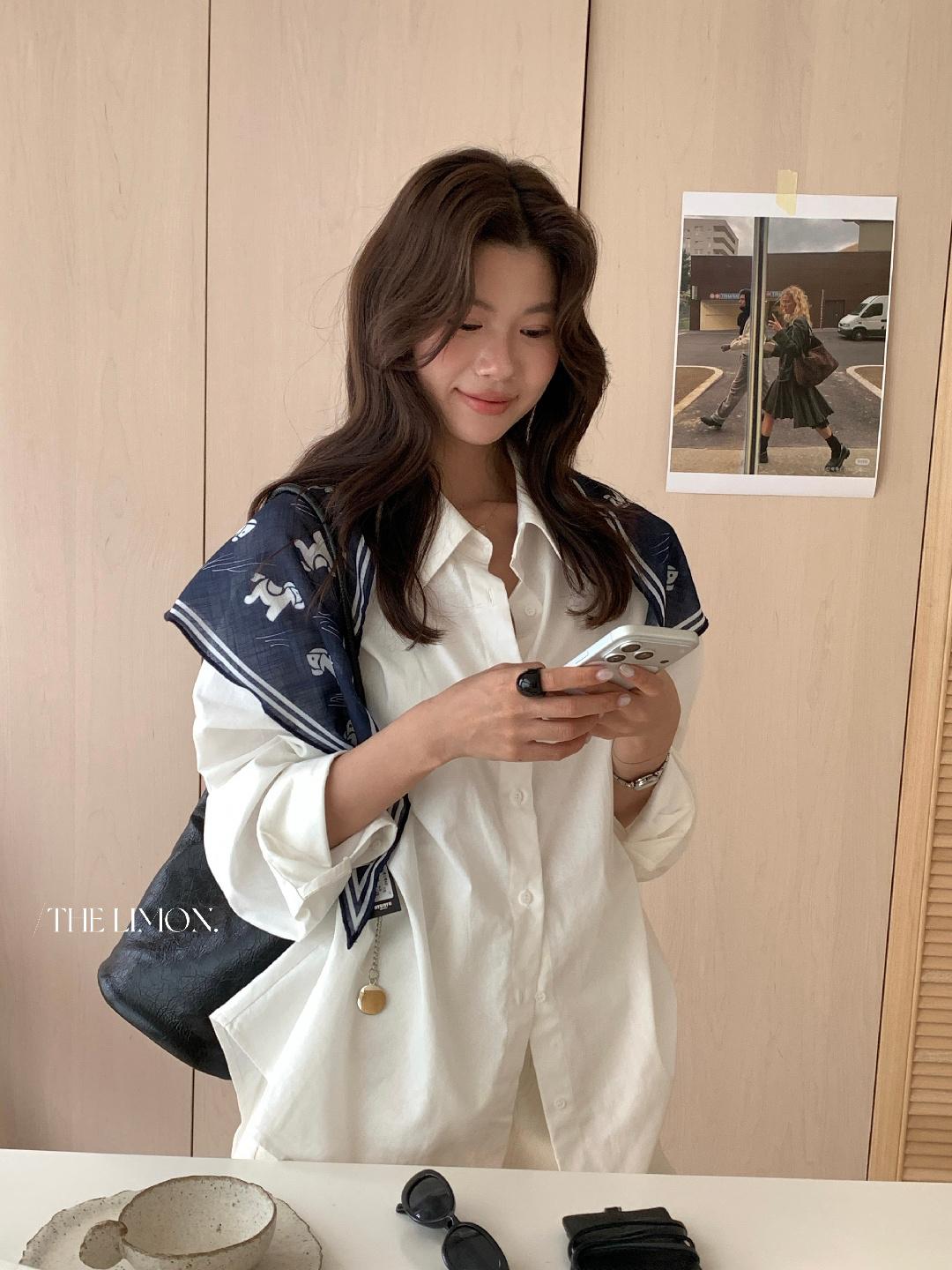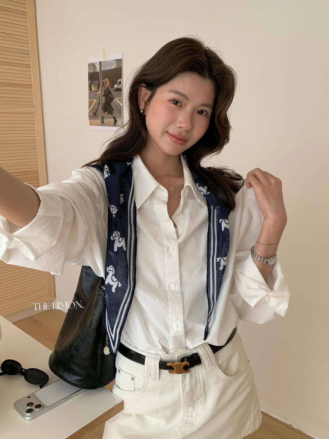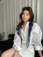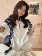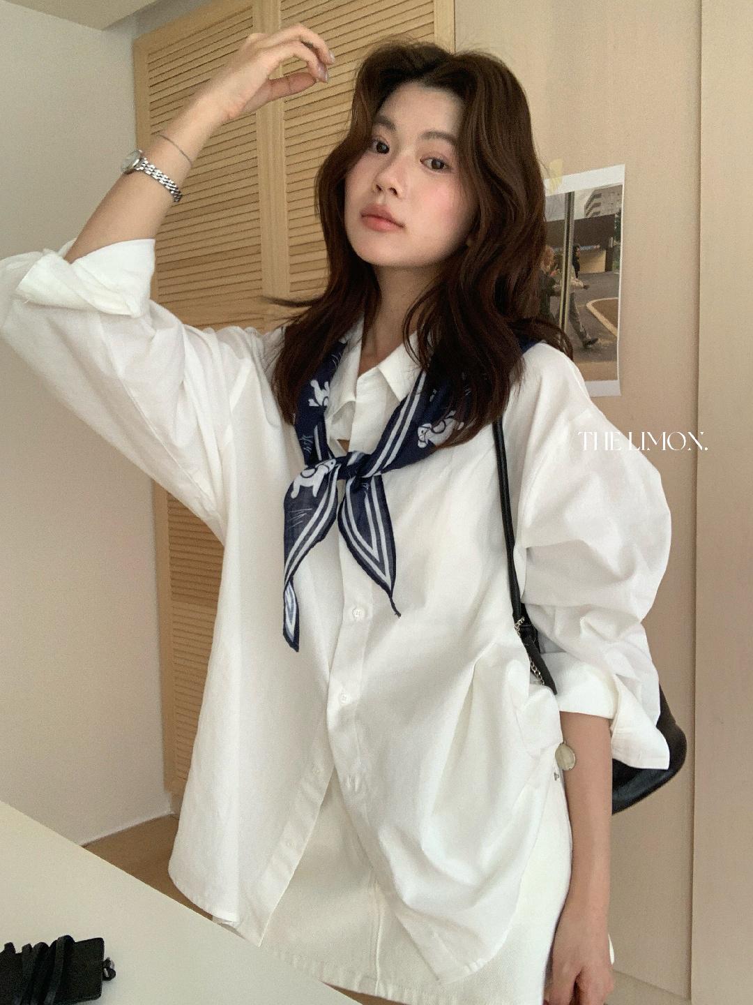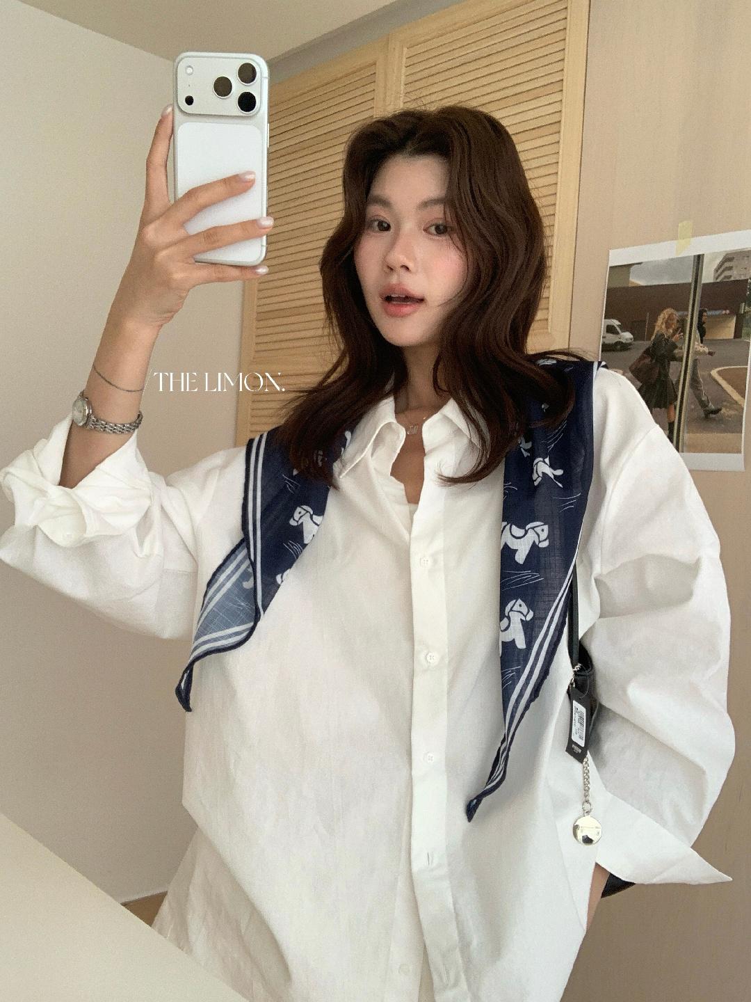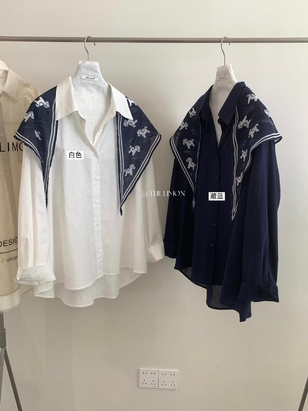 【C8847】小馬絲巾苧麻寬鬆慵懶襯衫(配披肩)(不配腰帶)