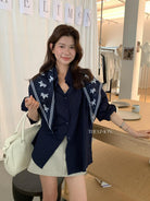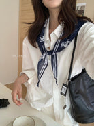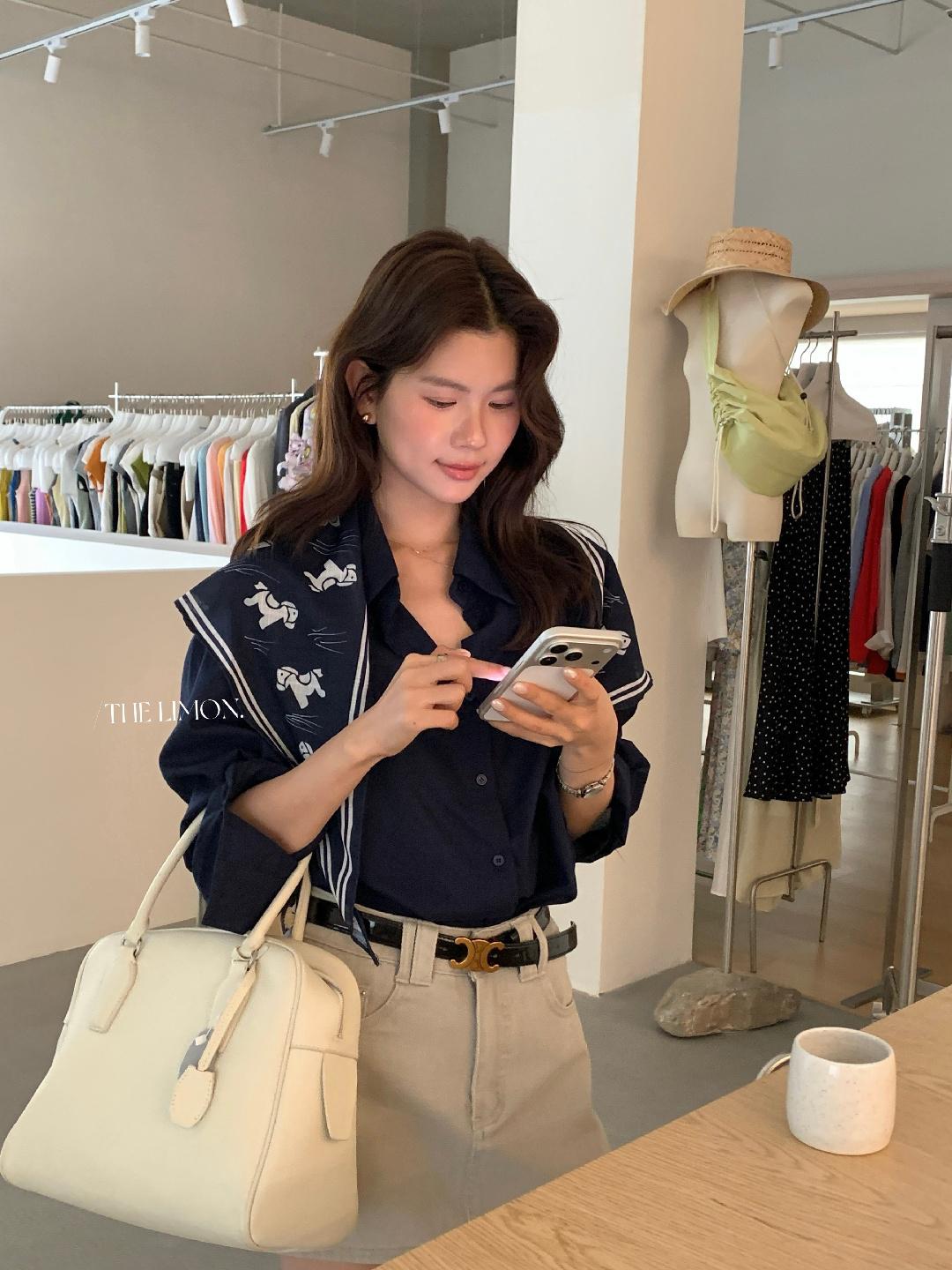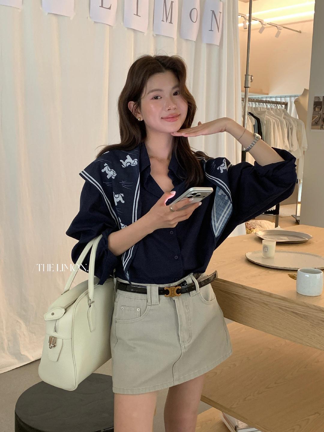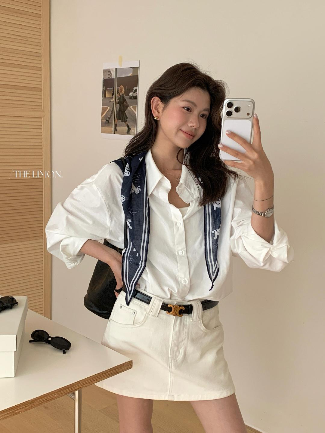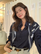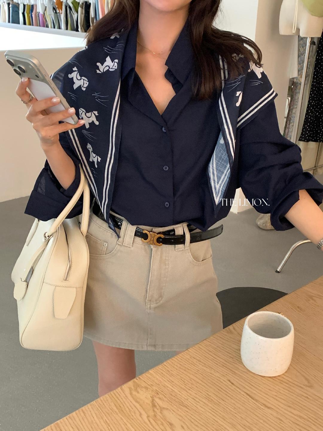 【C8847】小馬絲巾苧麻寬鬆慵懶襯衫(配披肩)(不配腰帶)