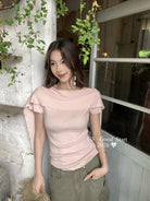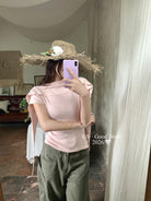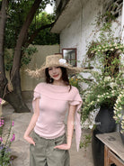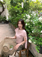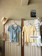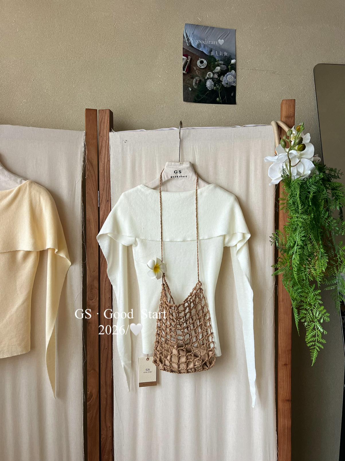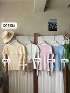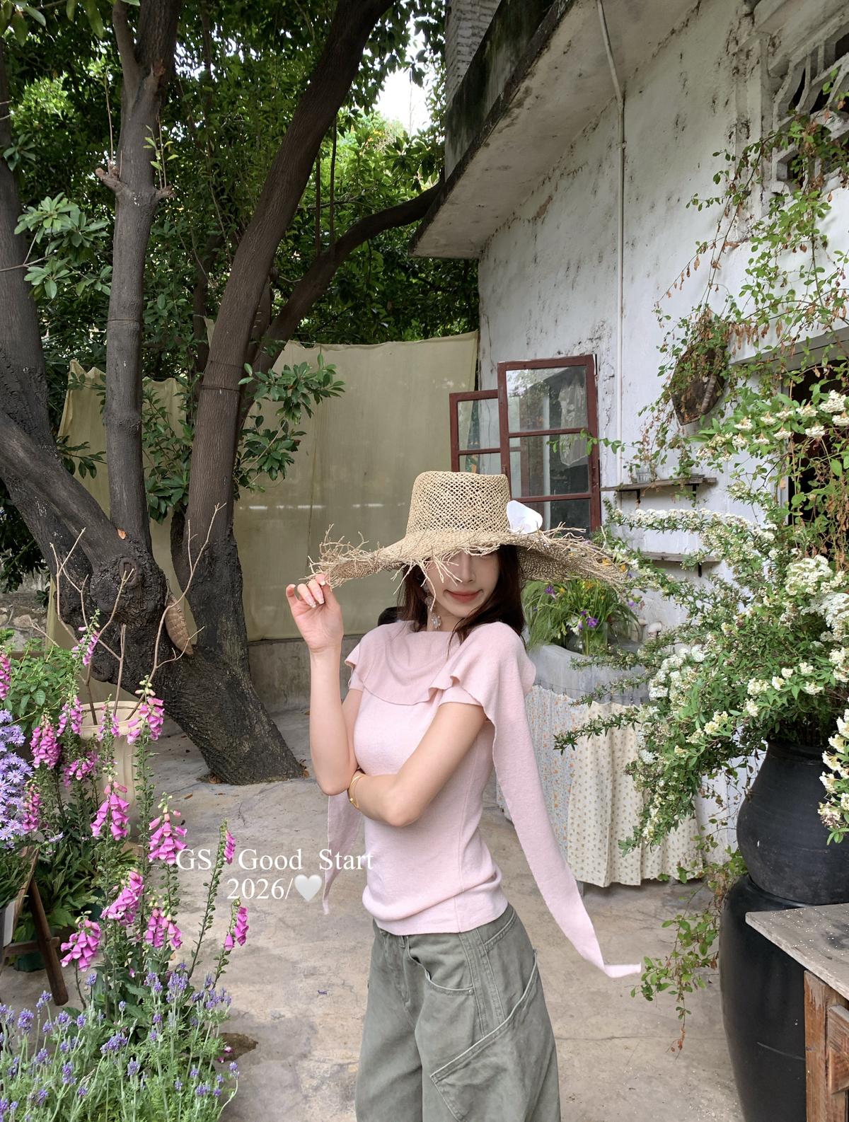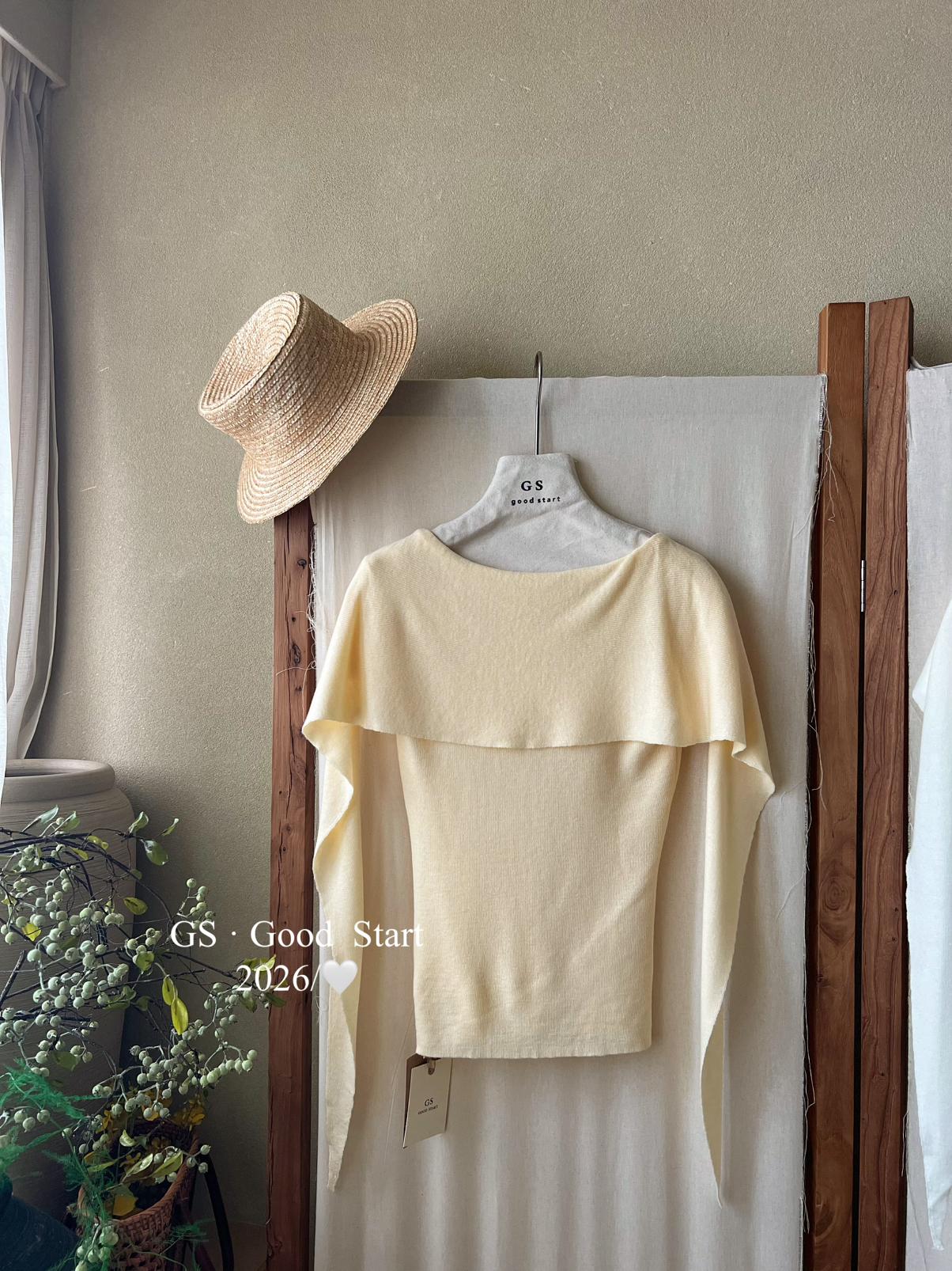 3. 【C8850】碼住!正反兩穿*hen顯好身材_夏氣質飄帶設計感修身短袖針織小衫(配可拆卸披肩)(含6%羊毛)