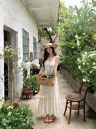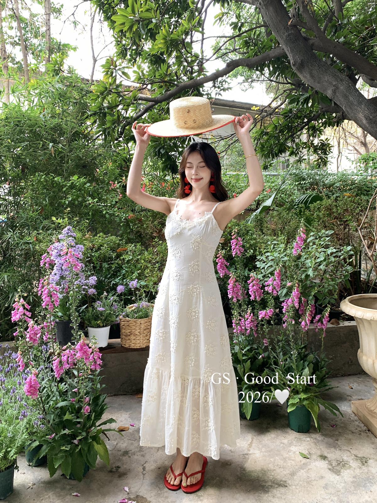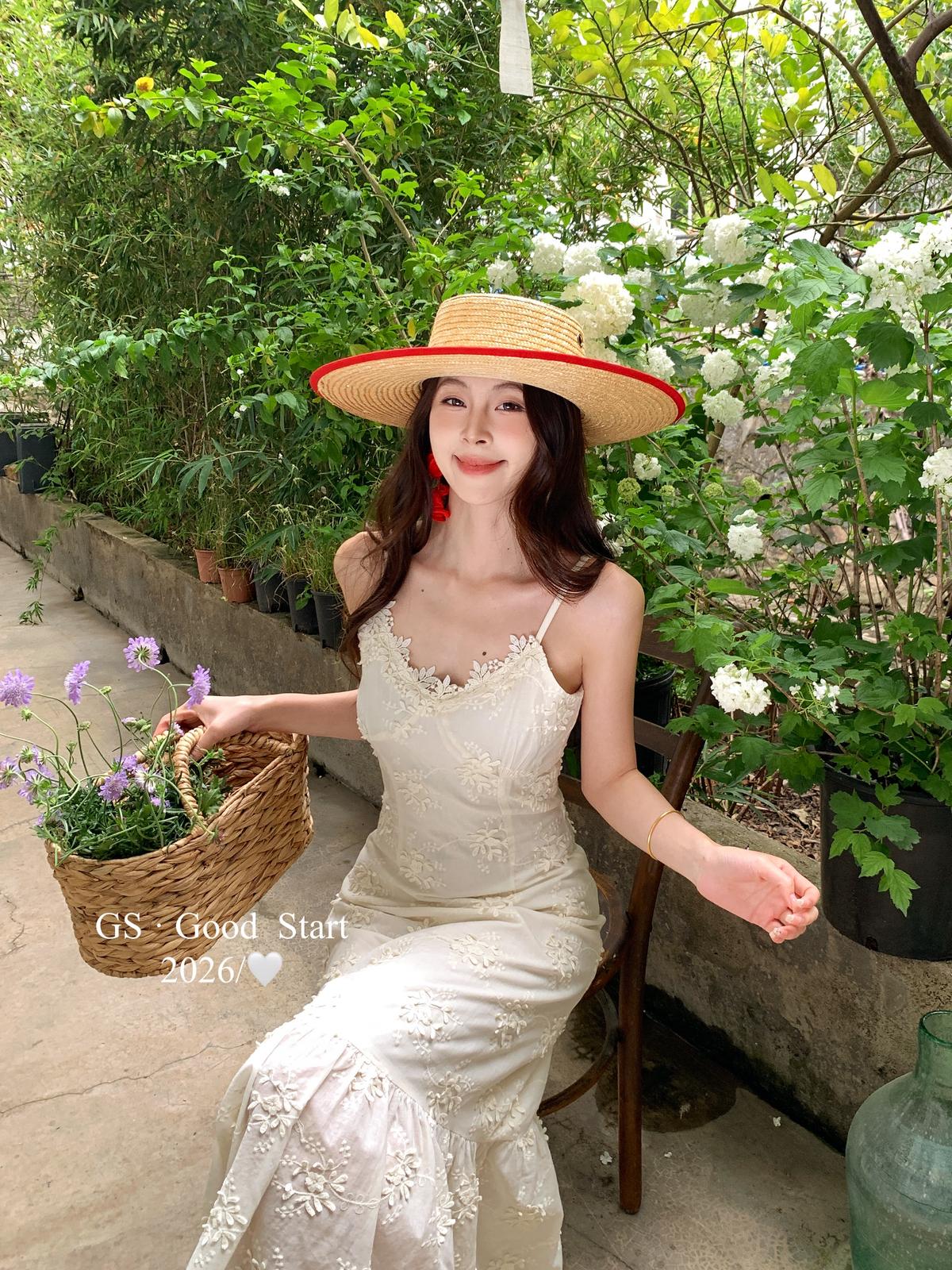【C8852】斬男更斬女!重工鉤花*精緻迷人~夏季法式浪漫復古刺繡花朵吊帶連衣裙