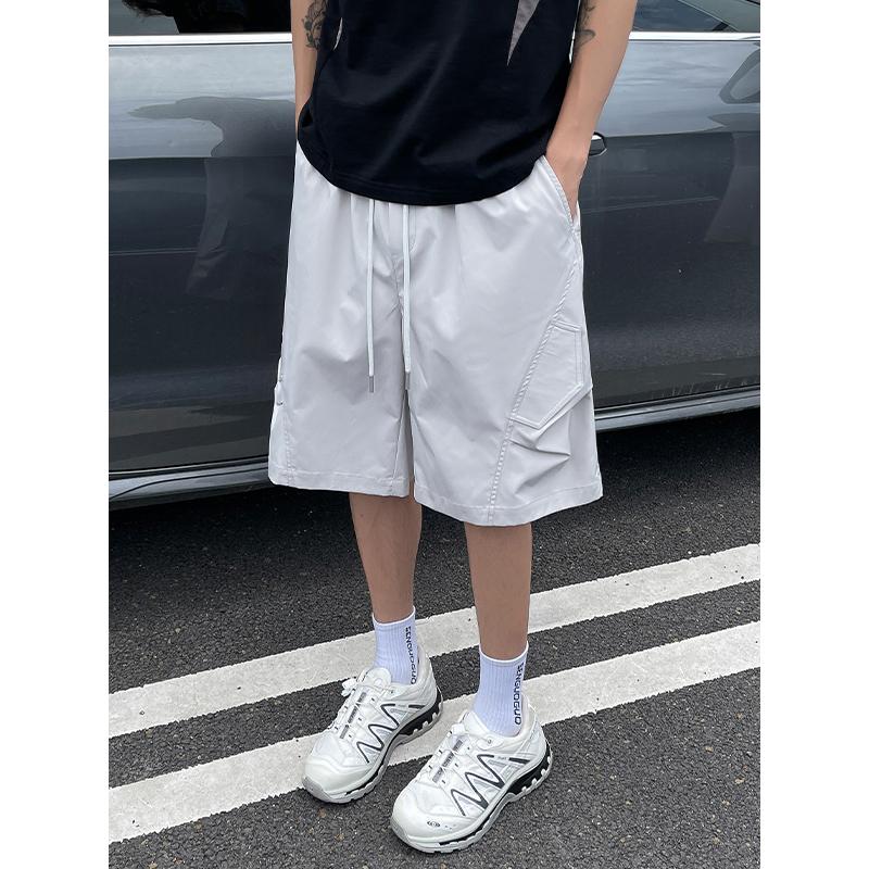 【YS2870】潮流百搭寬鬆收褶速幹純色直筒闊腿休閒短褲