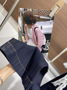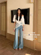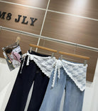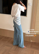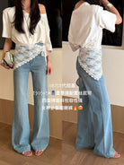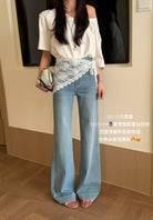 【C8878】夏季經典百搭款主推爆款四面彈氣質筒喇褲牛仔褲(配蕾絲)(搭配定製蕾絲屁簾)