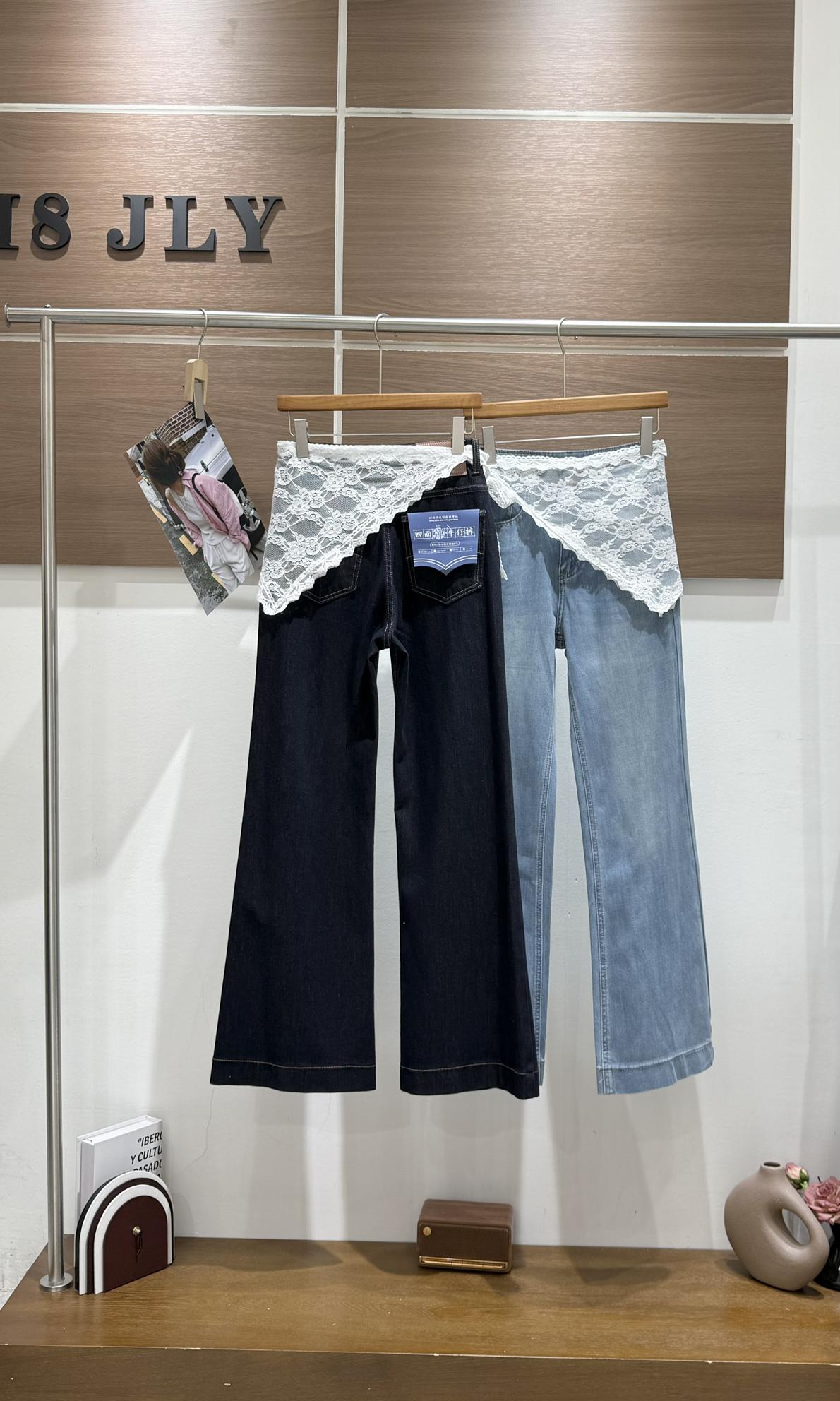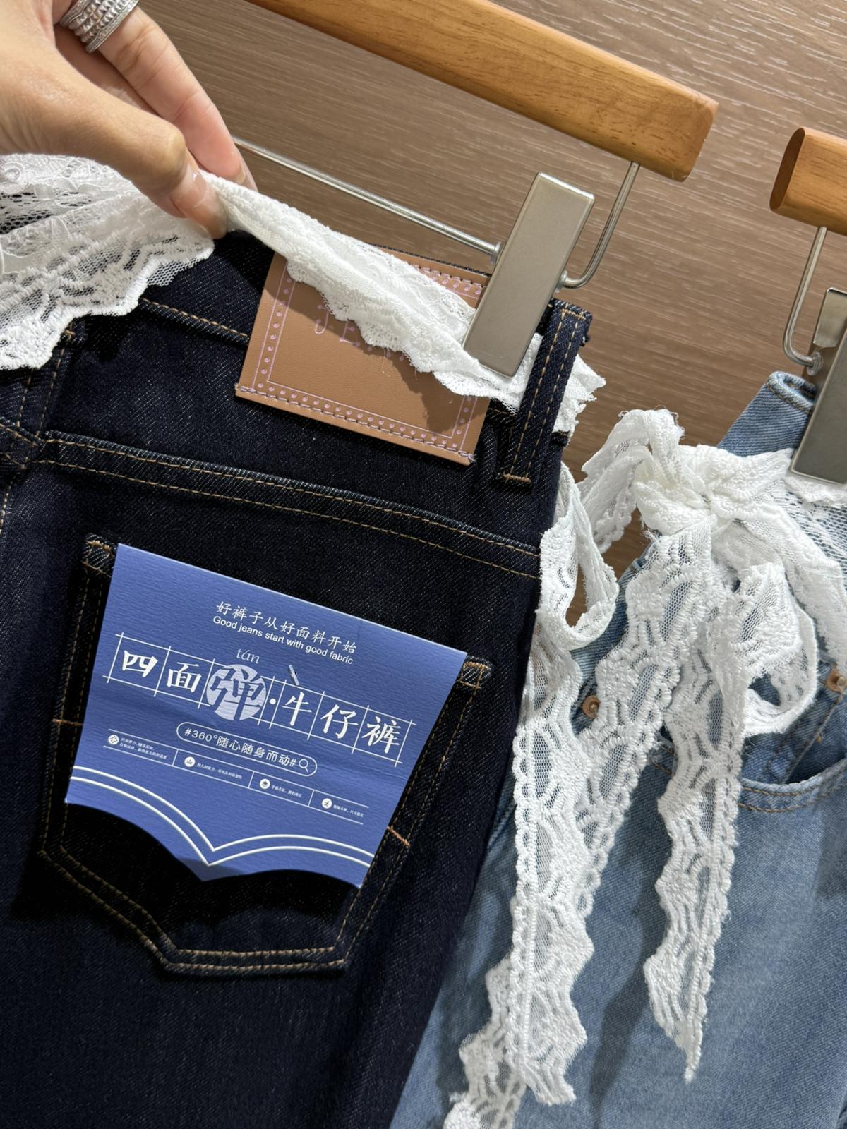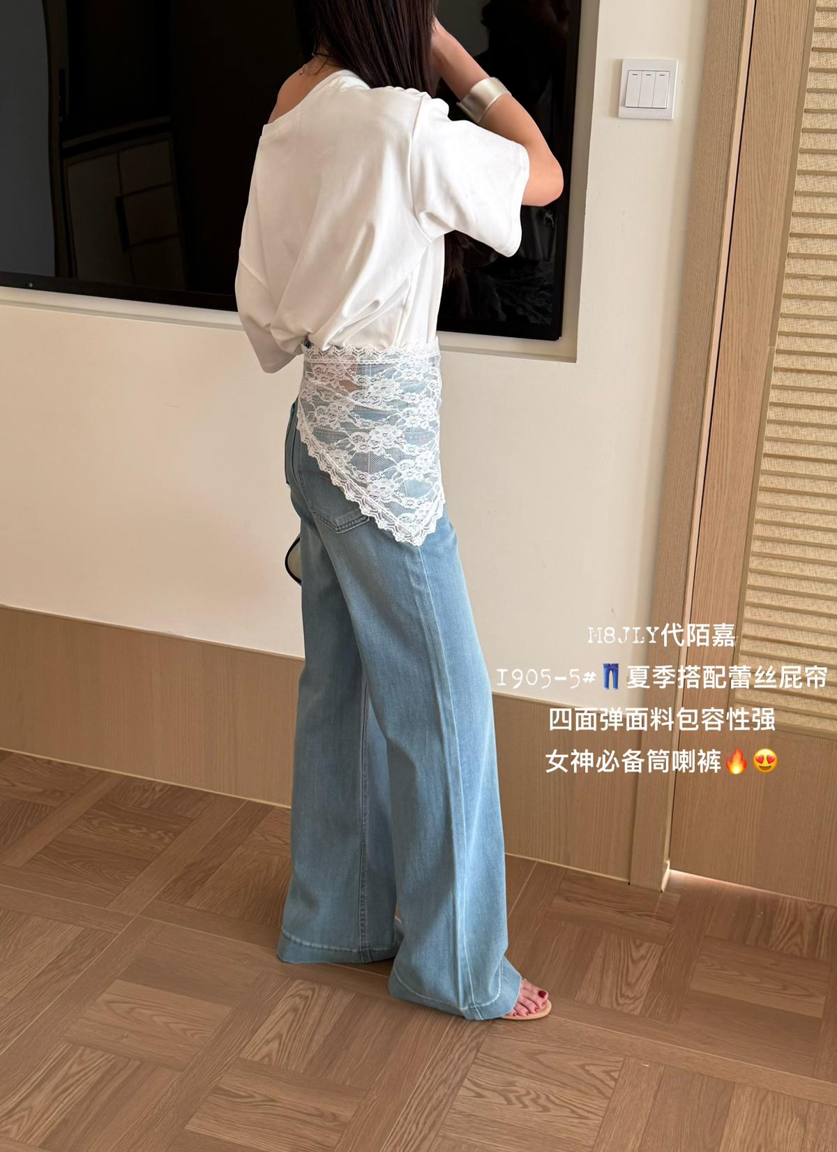 3. 【C8878】夏季經典百搭款主推爆款四面彈氣質筒喇褲牛仔褲(配蕾絲)(搭配定製蕾絲屁簾)