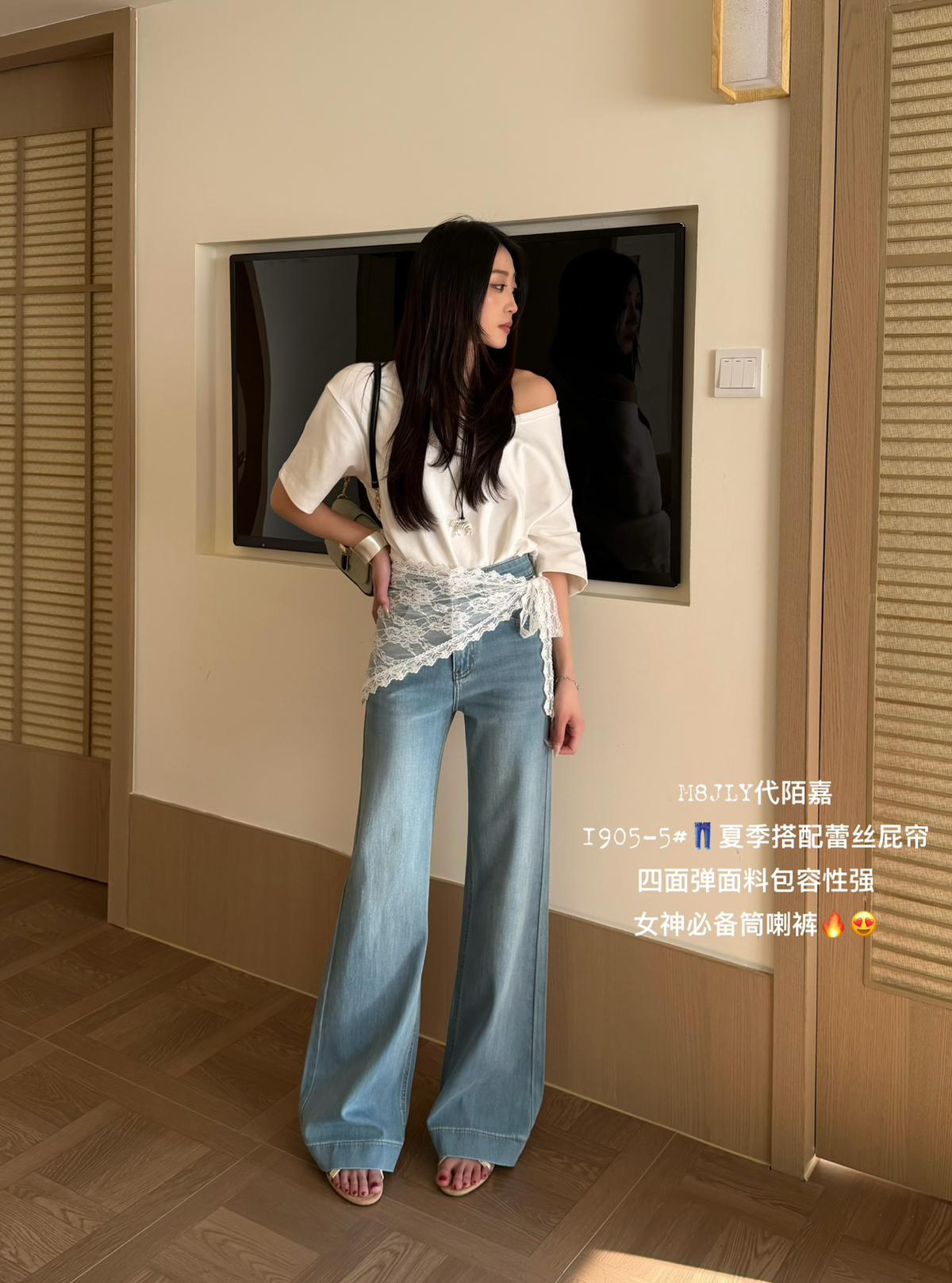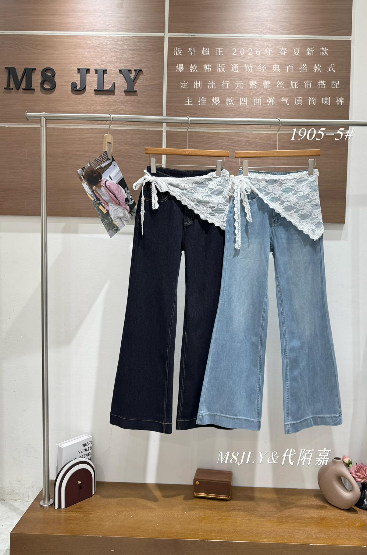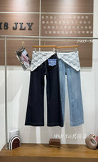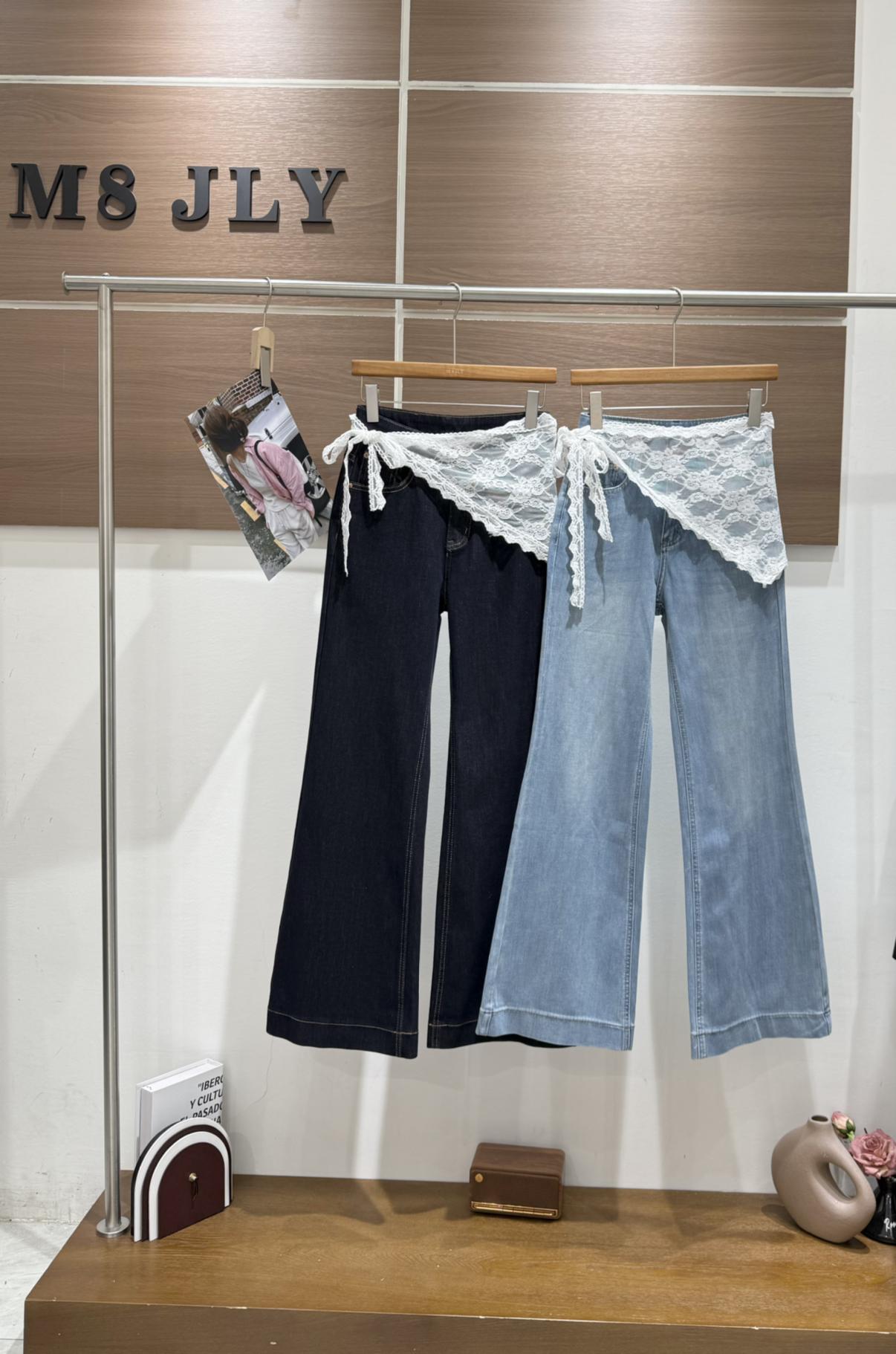 3. 【C8878】夏季經典百搭款主推爆款四面彈氣質筒喇褲牛仔褲(配蕾絲)(搭配定製蕾絲屁簾)