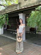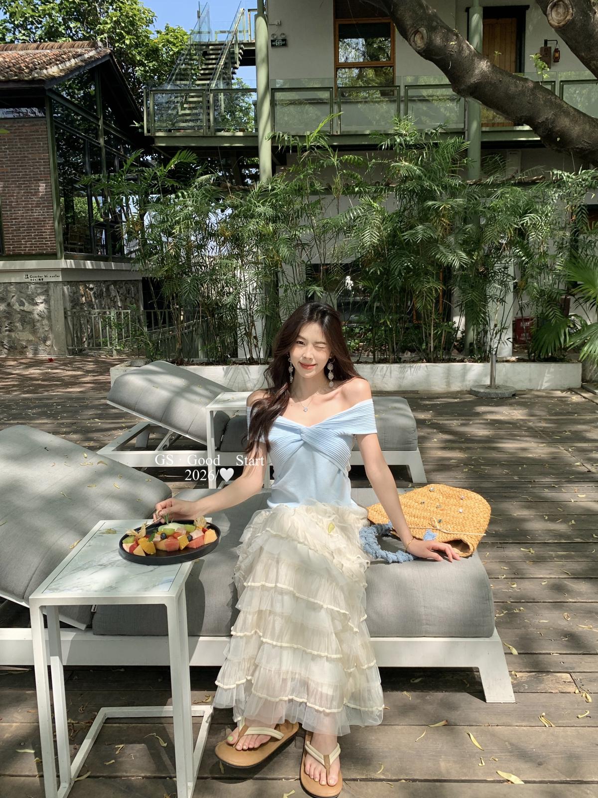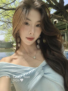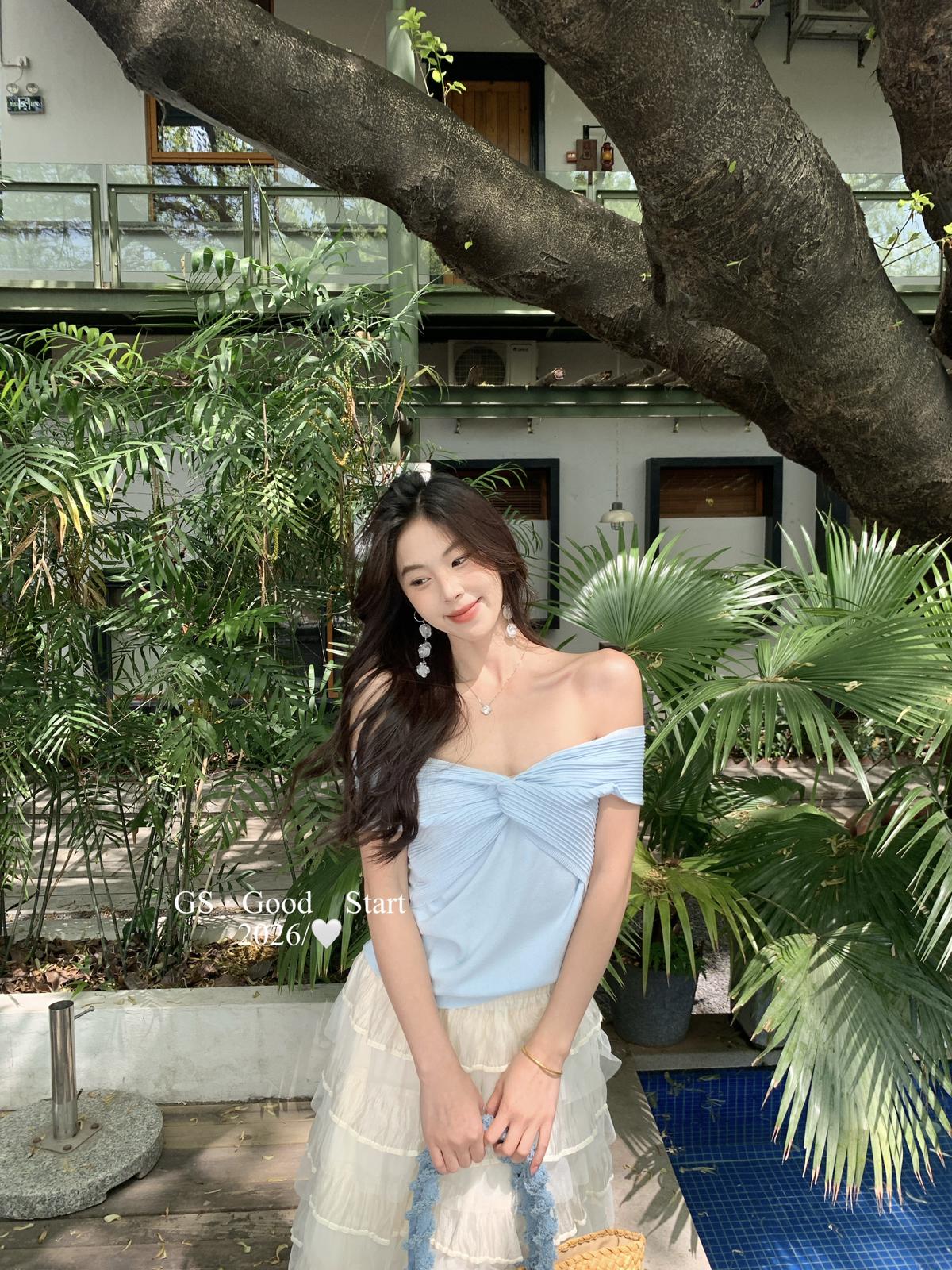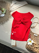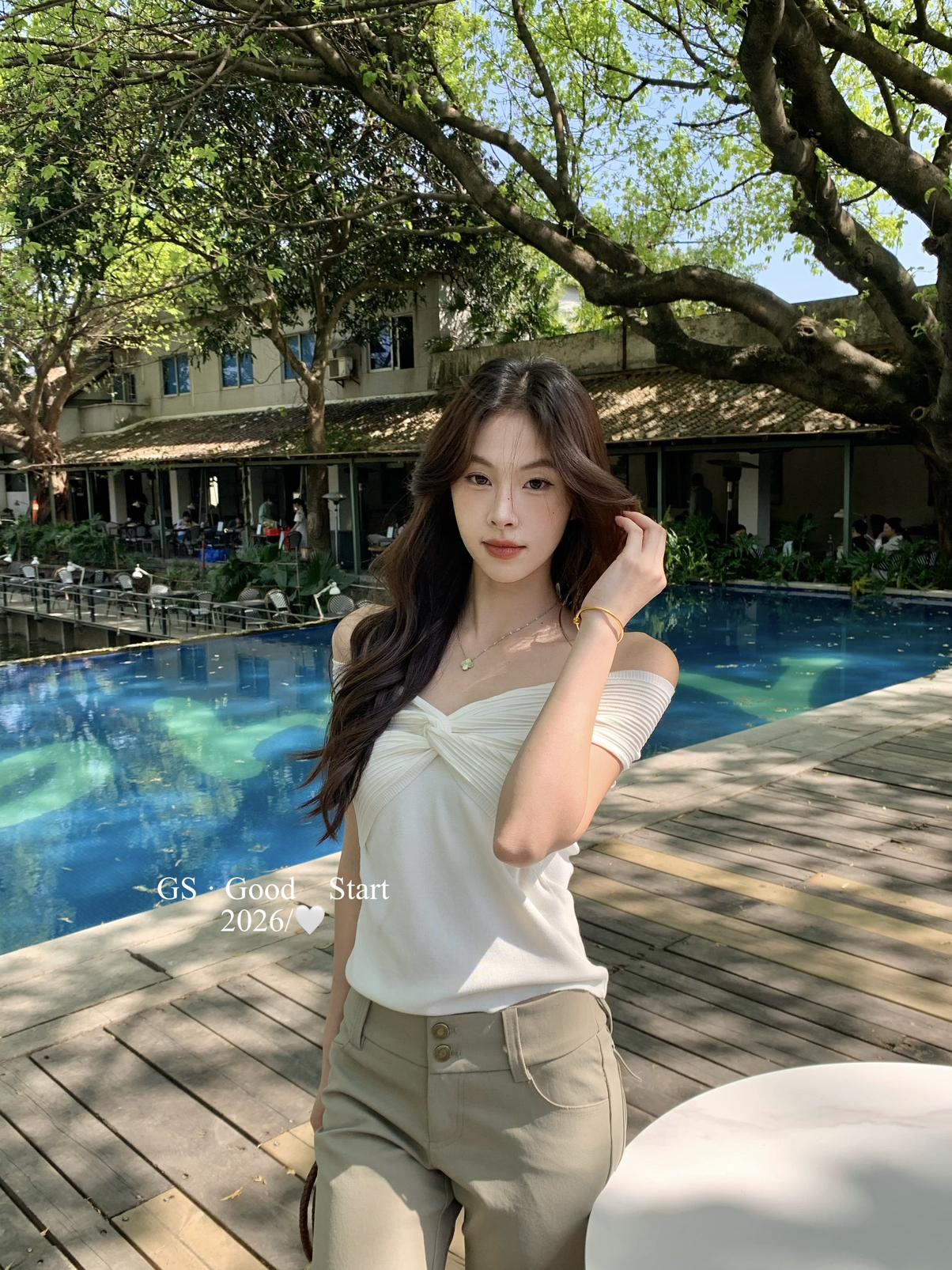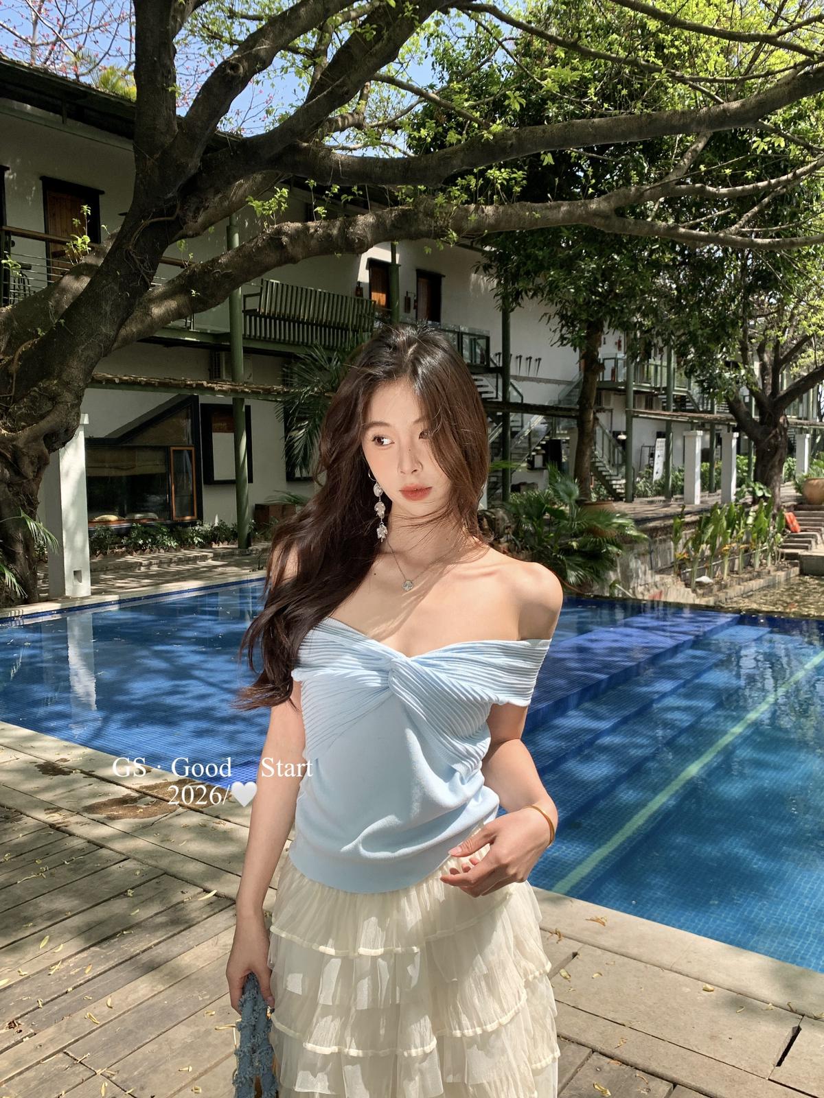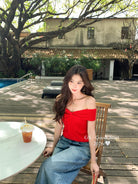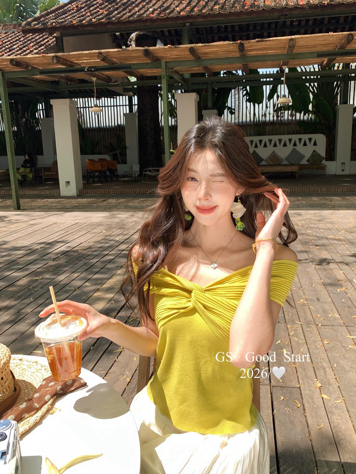 【C8879】紙片人歐尼*純純欲動~補單王!夏季氣質溫柔紐結一字肩顯瘦針織小衫