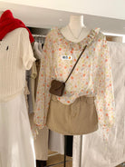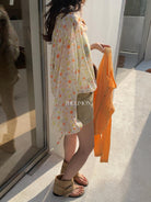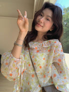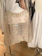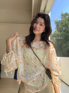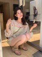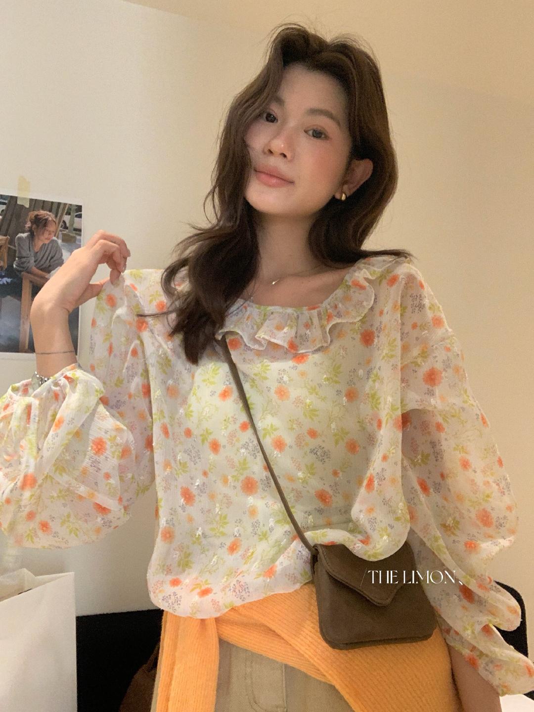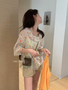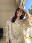 【C8891】韓版度假風荷葉邊碎花寬鬆小衫(只賣小衫)