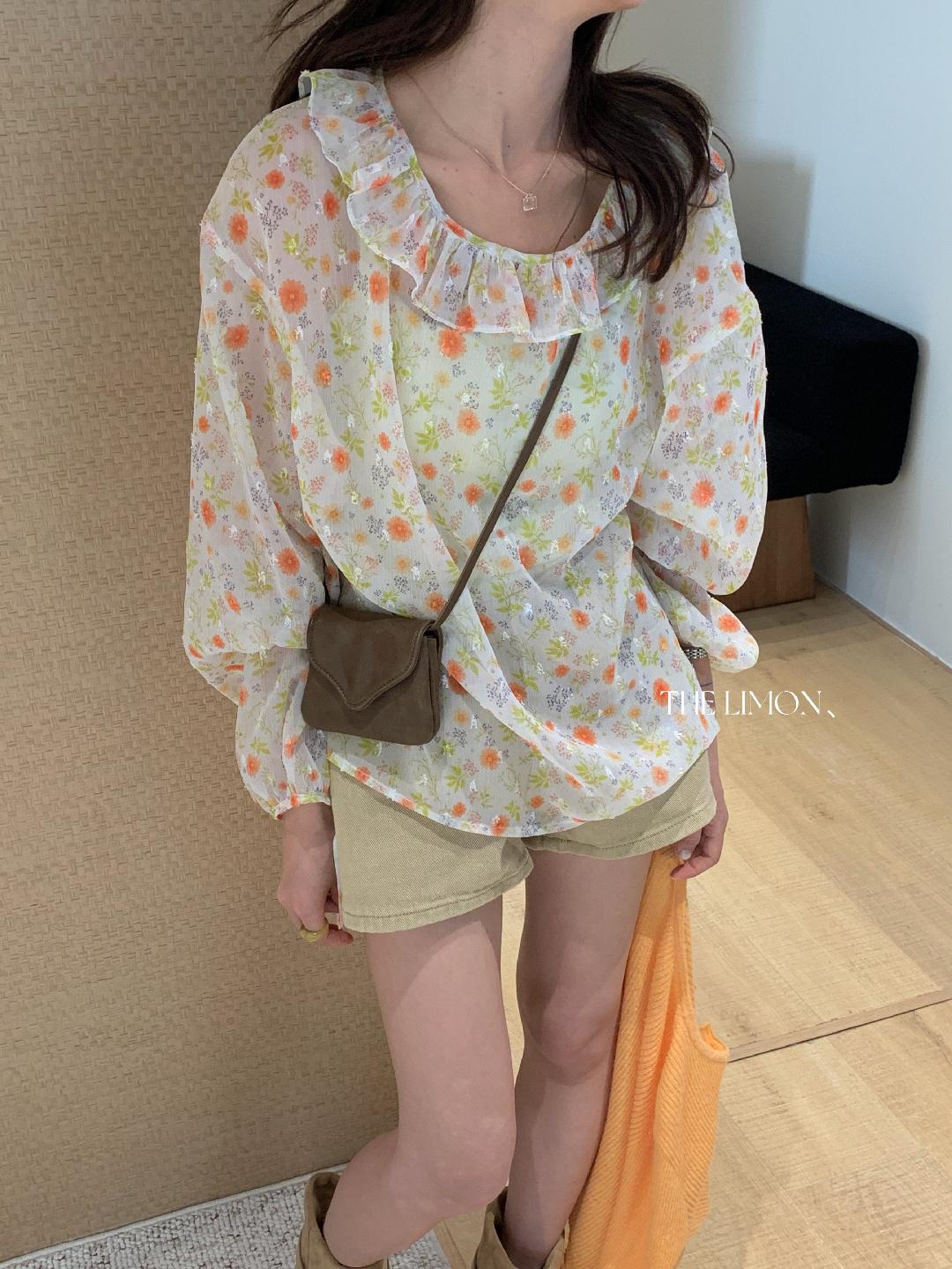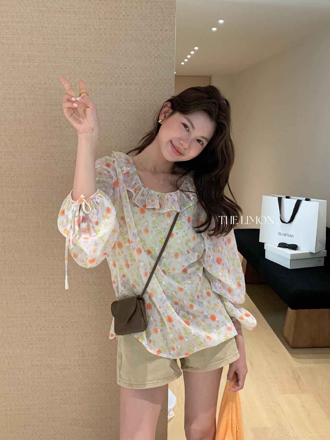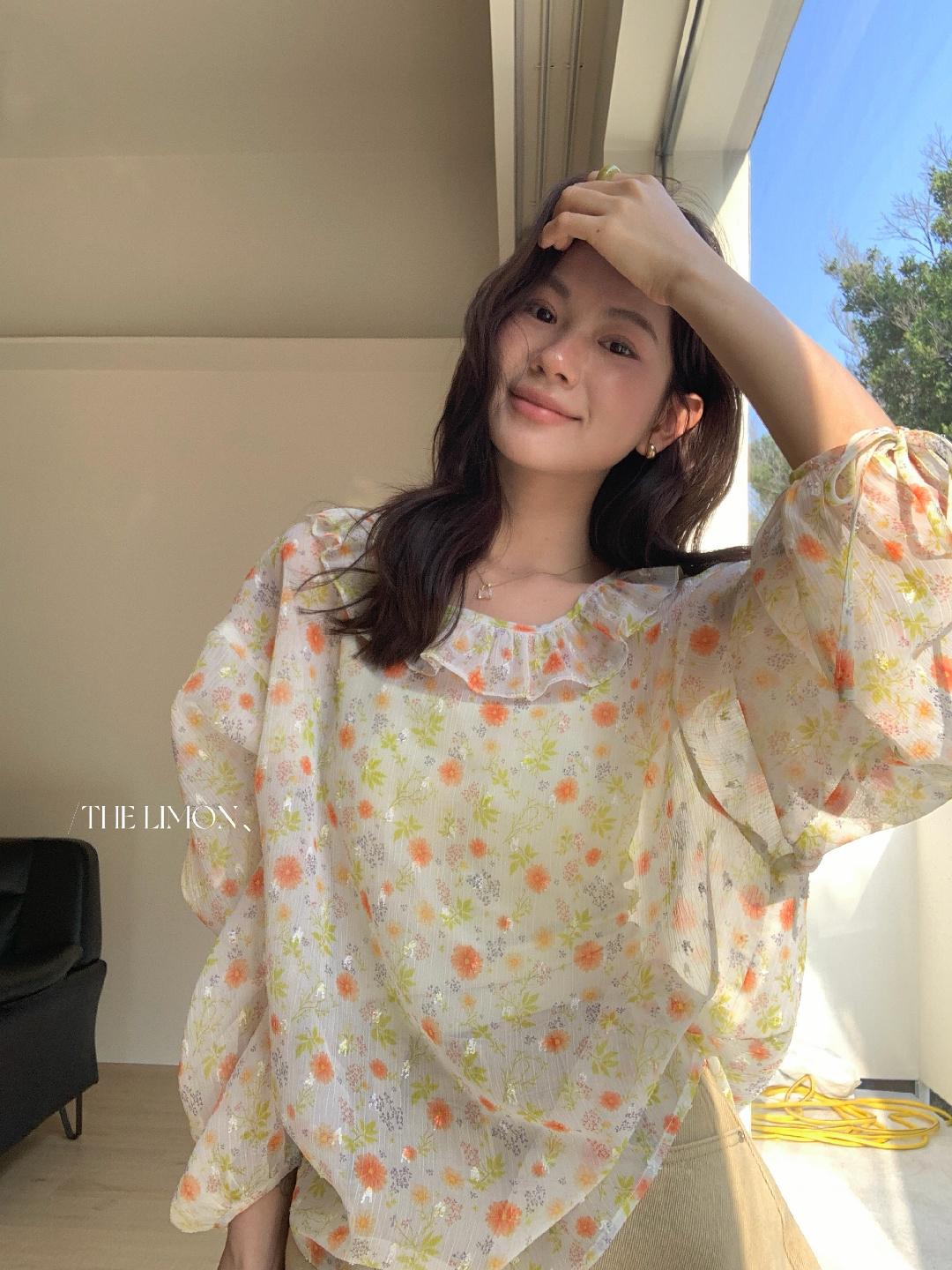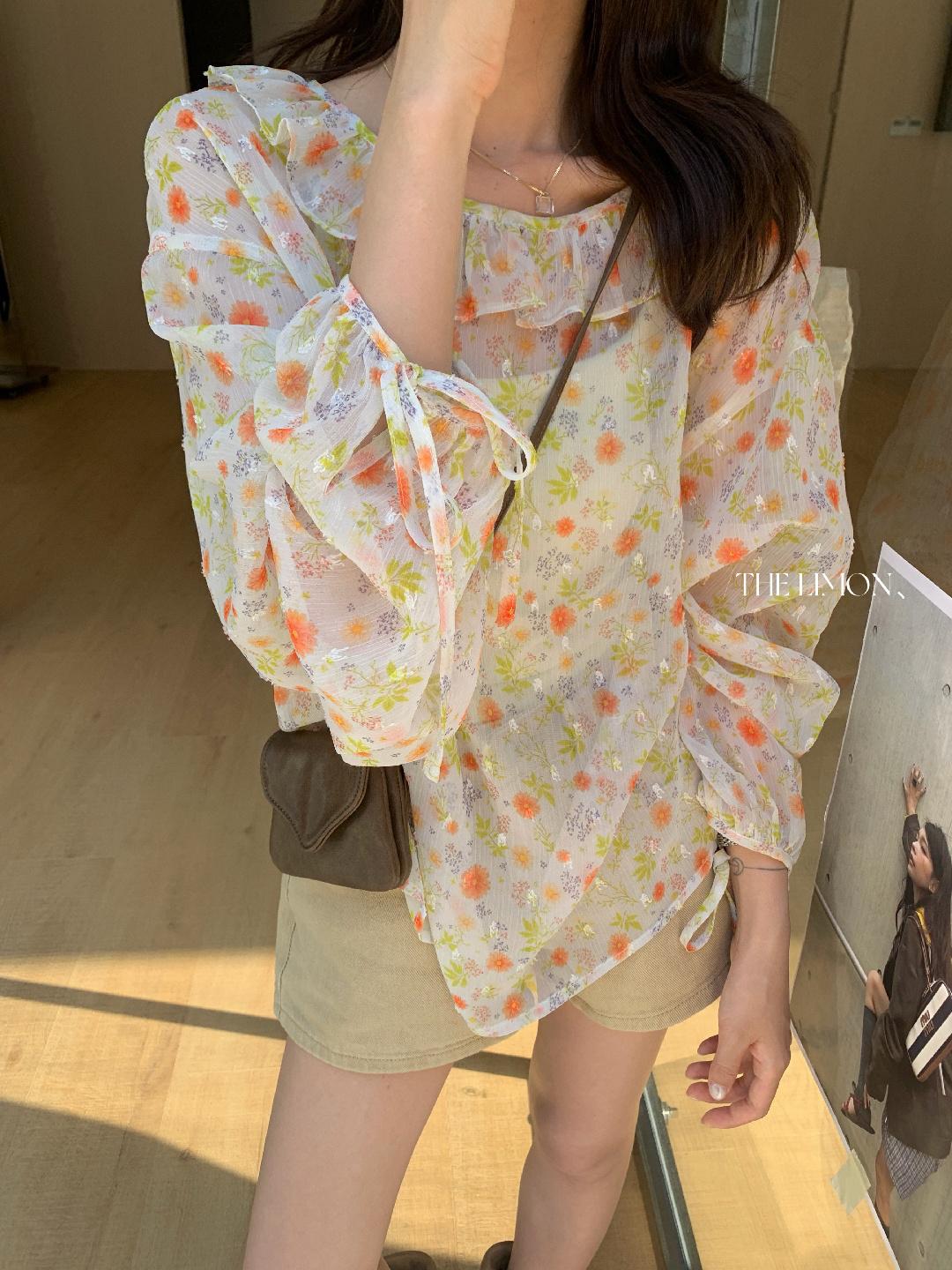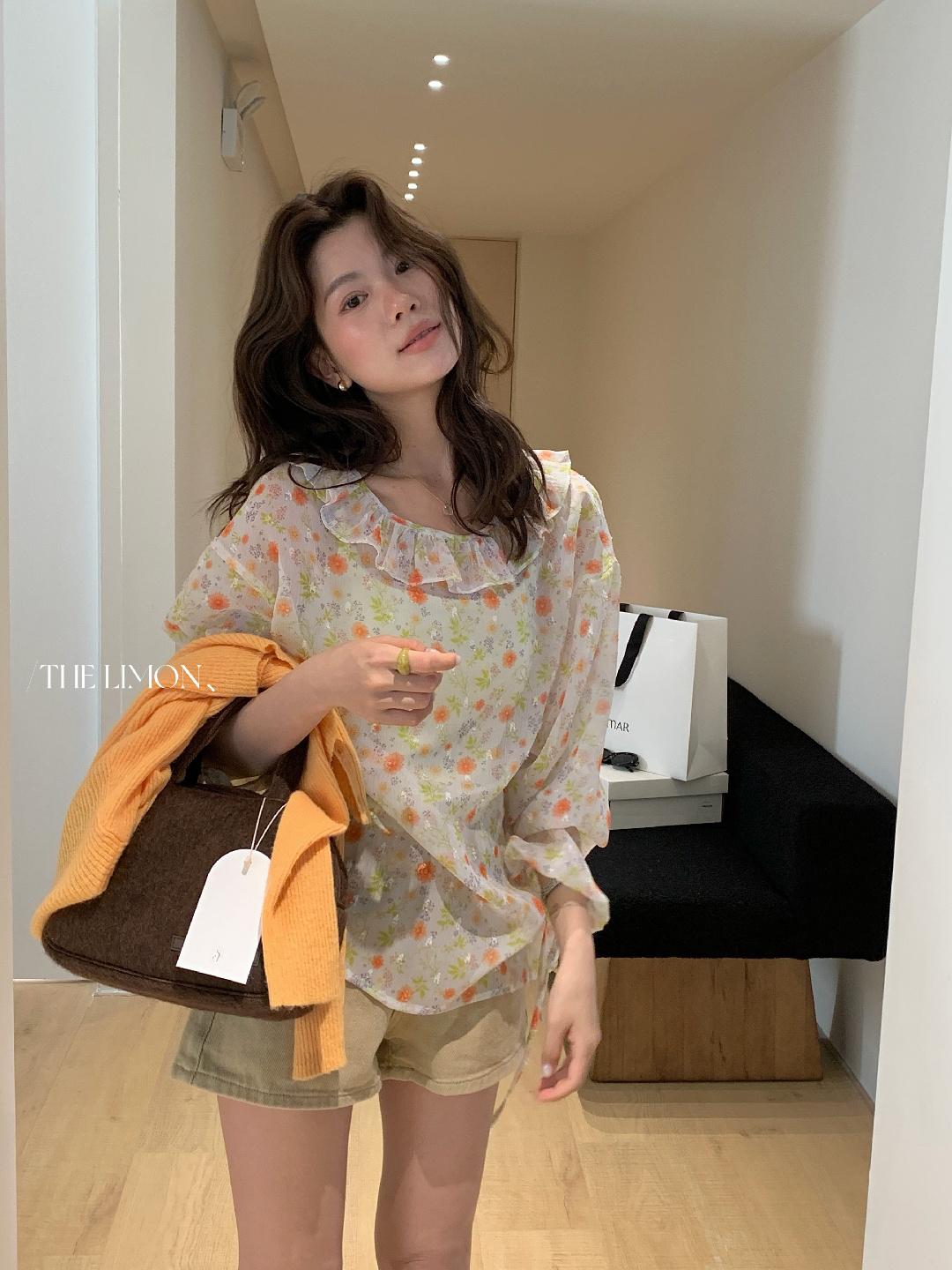 3. 【C8891】韓版度假風荷葉邊碎花寬鬆小衫(只賣小衫)