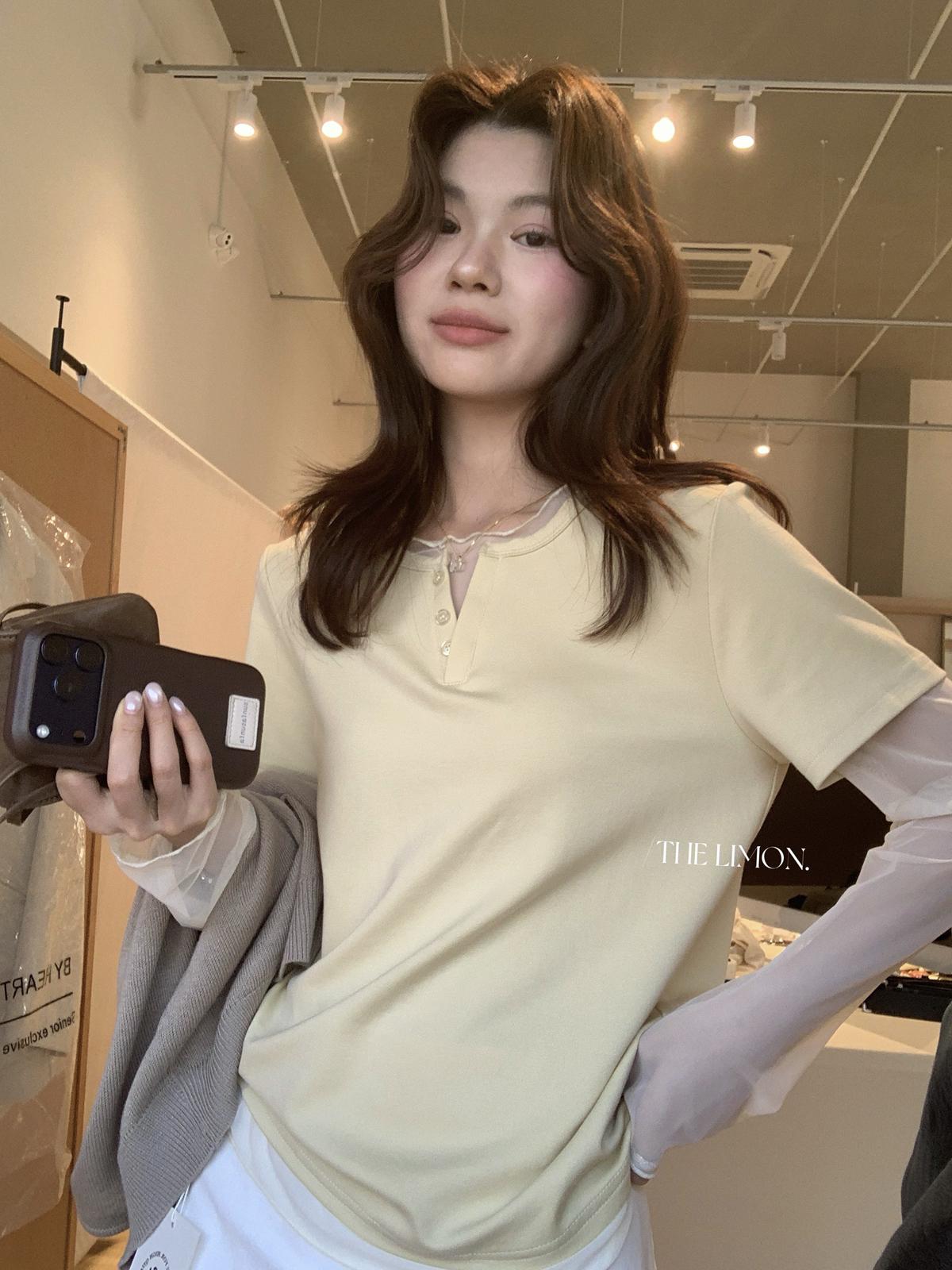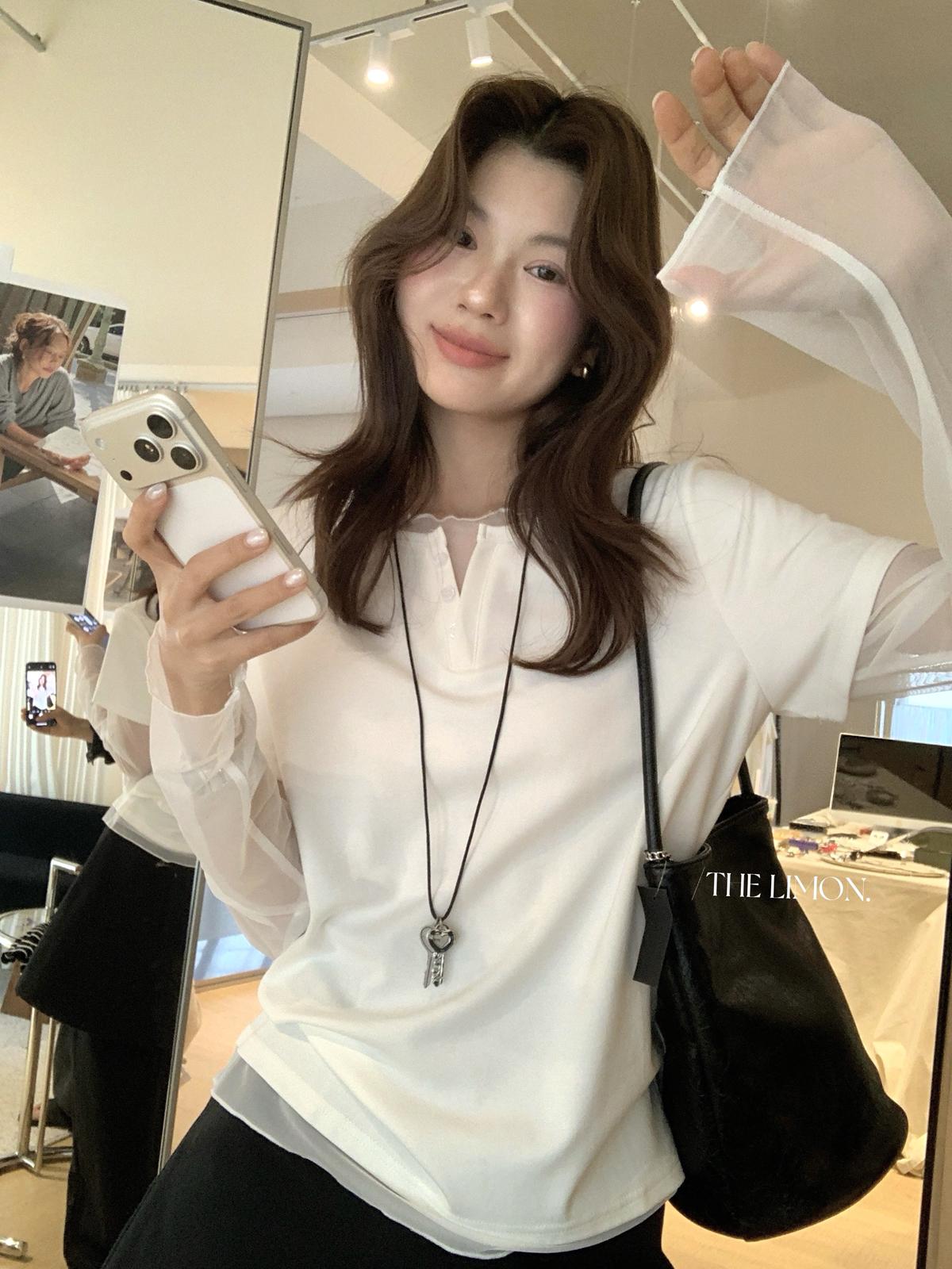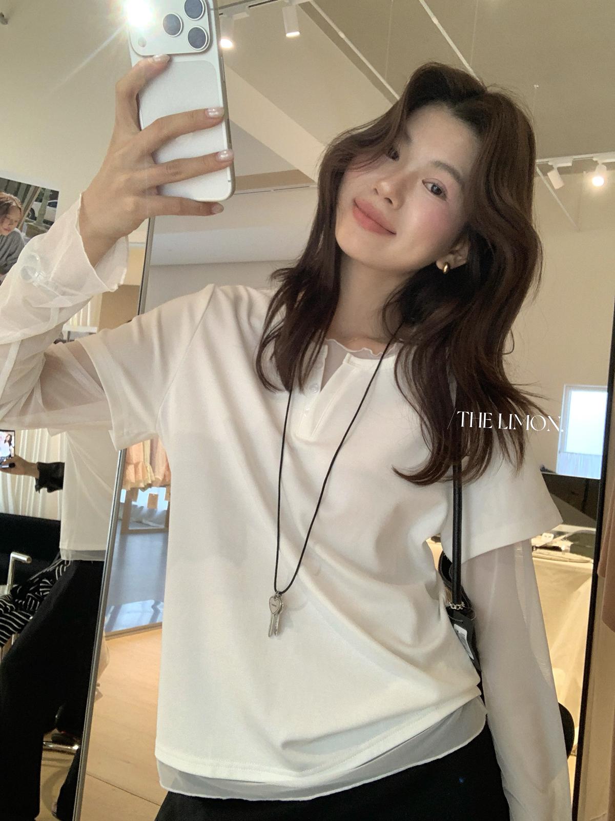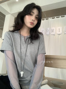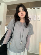 【C8892】假兩件拼接網紗寬鬆T恤小衫(不含掛件/掛包)