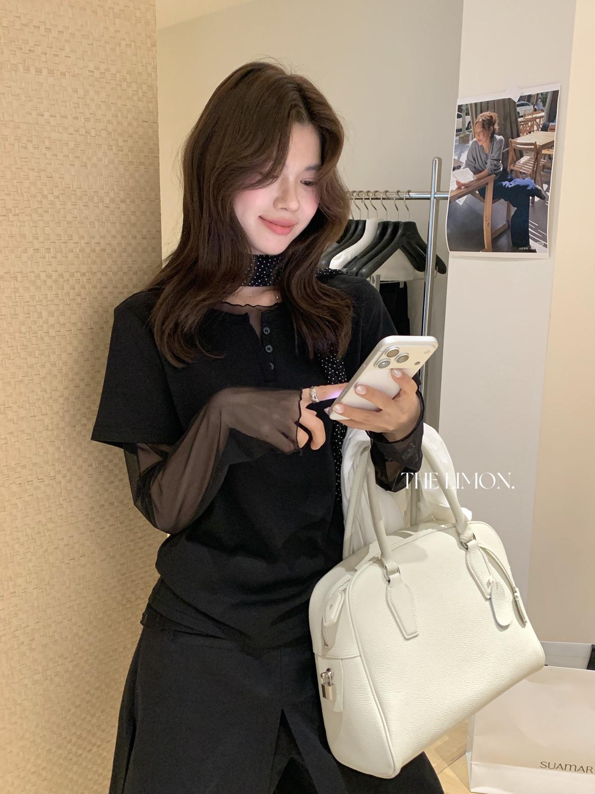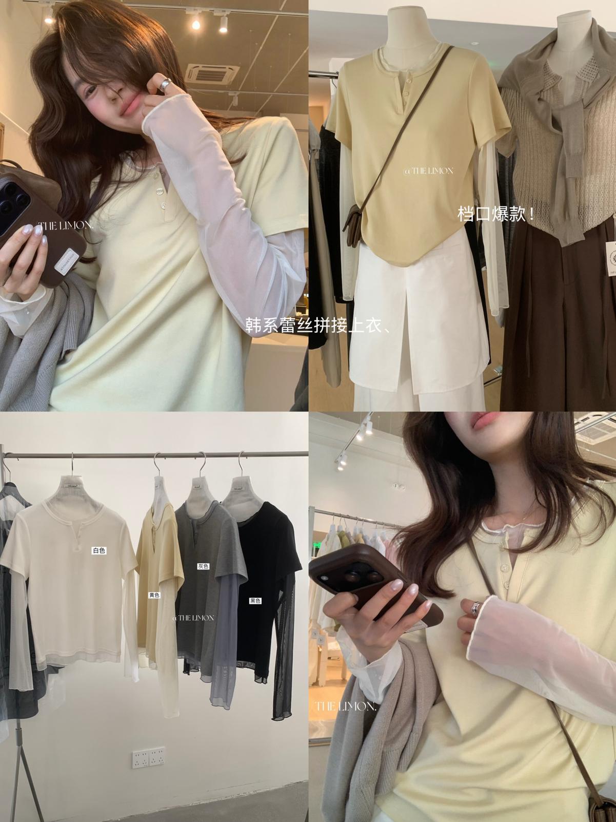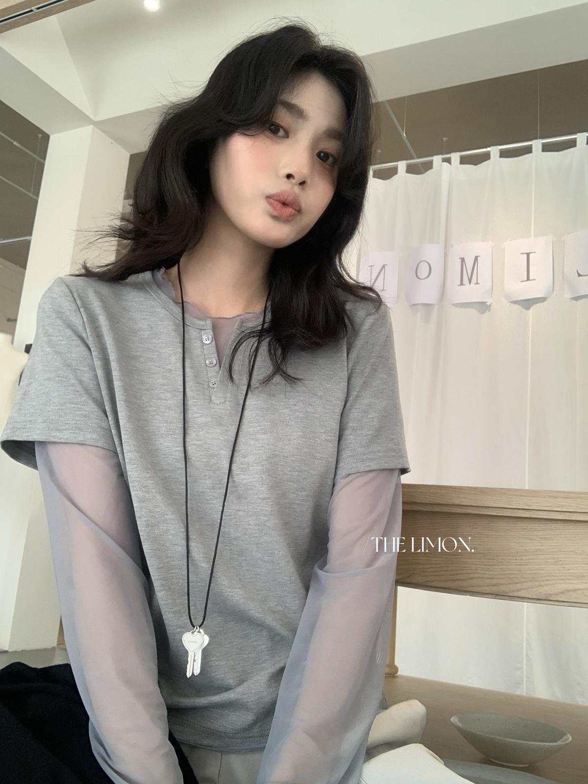 3. 【C8892】假兩件拼接網紗寬鬆T恤小衫(不含掛件/掛包)